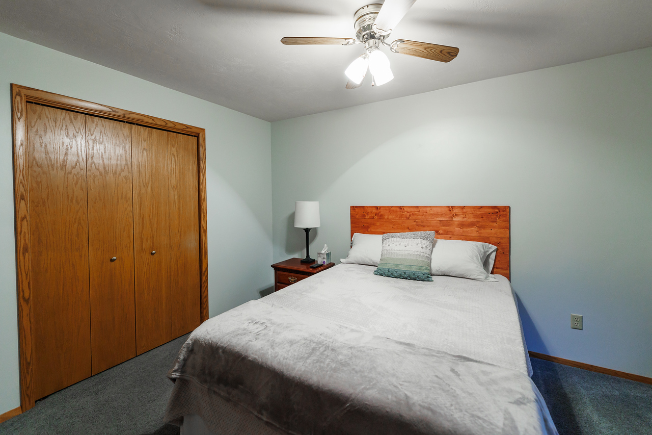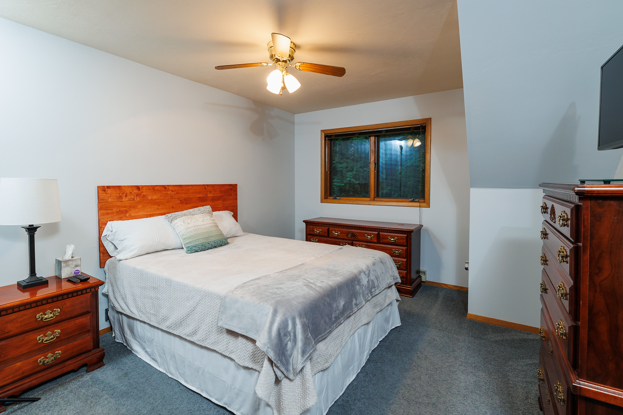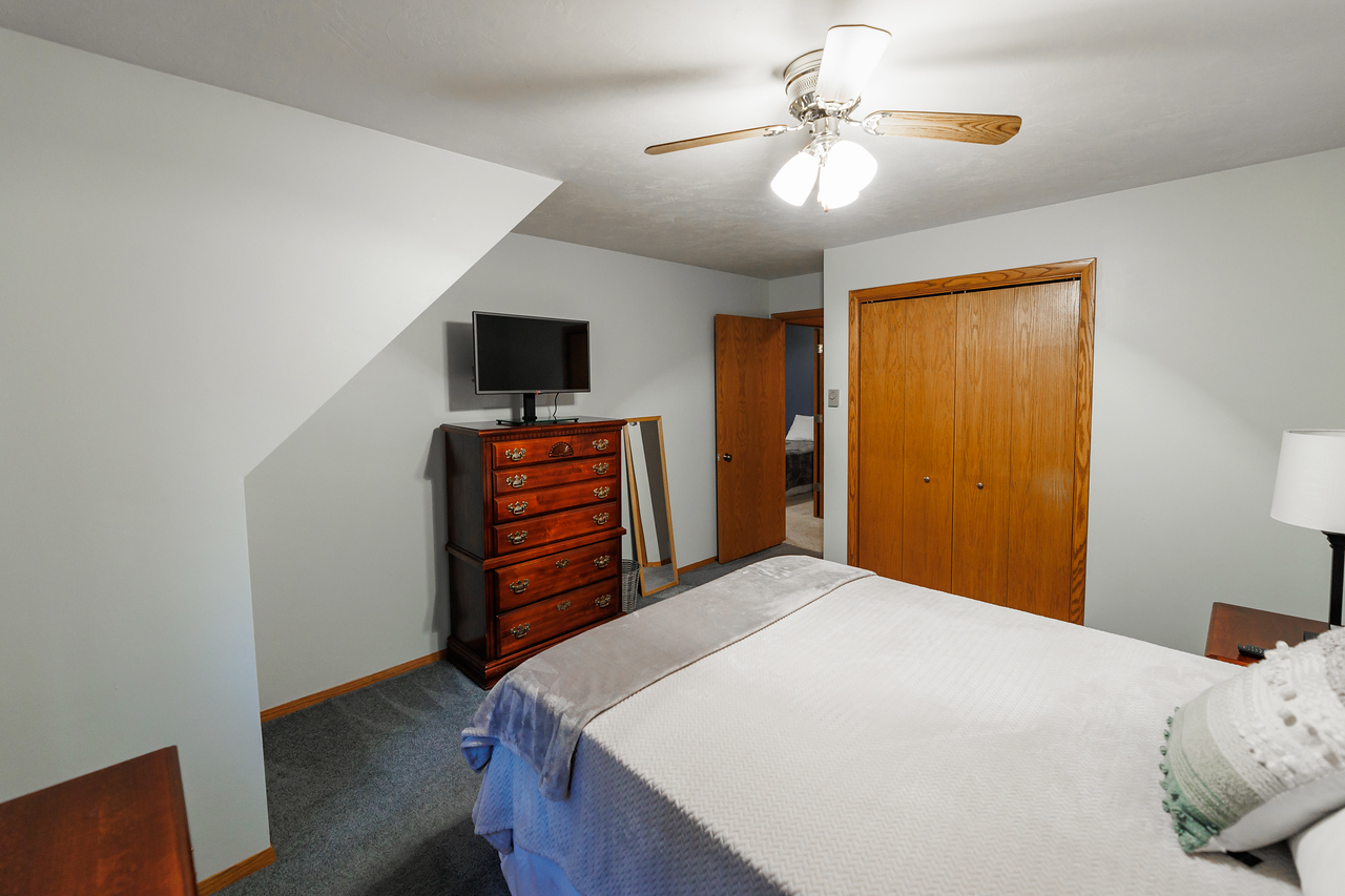 Bedroom 2 (second floor): Queen bed, Smart TV, ceiling fan