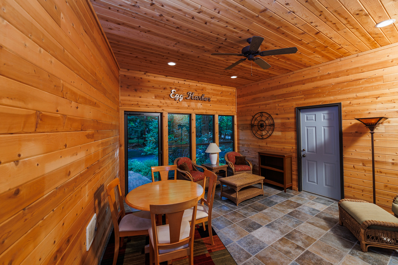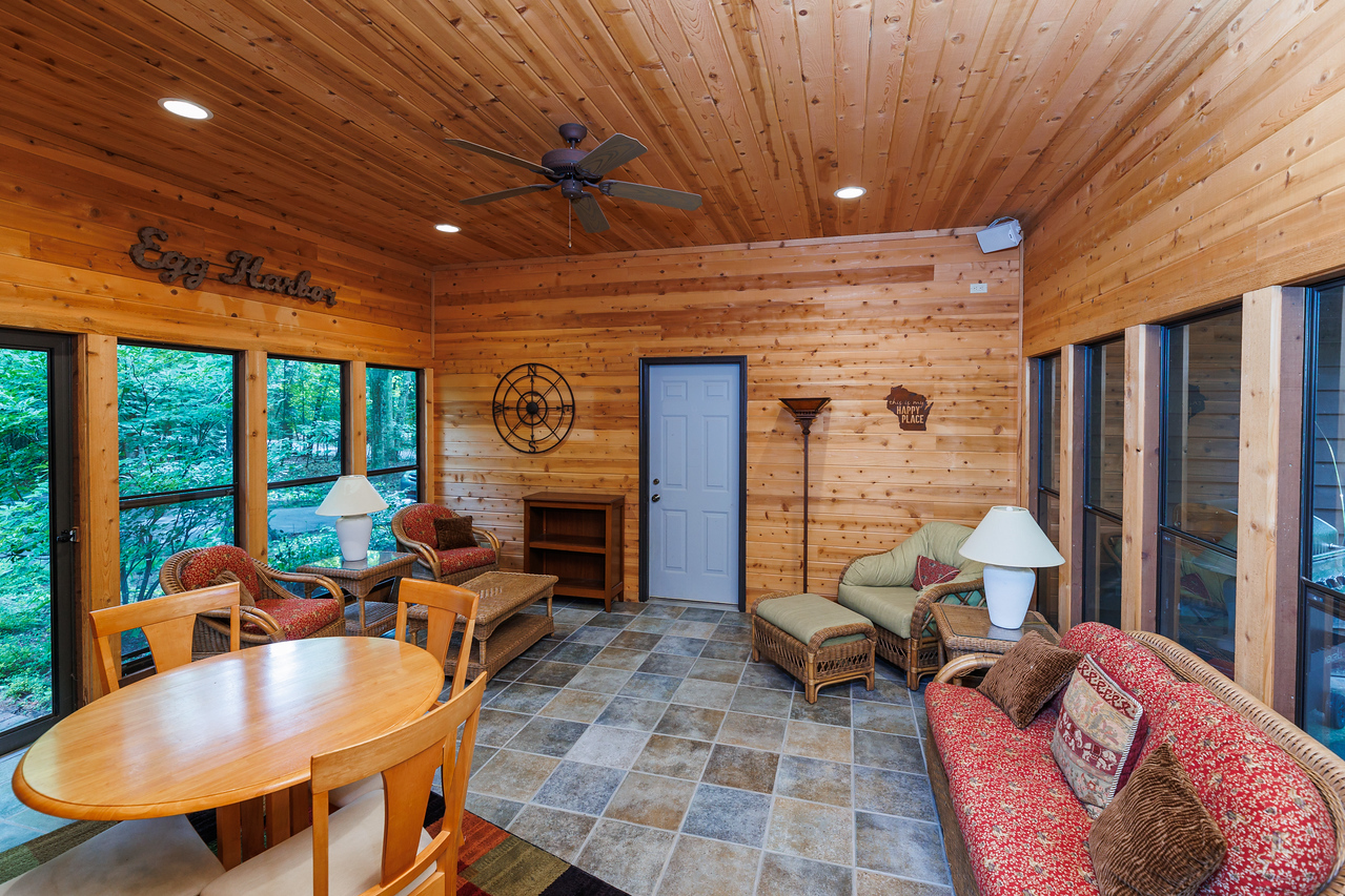 + Three seasons sunroom with additional eating area with a table and 4 chairs