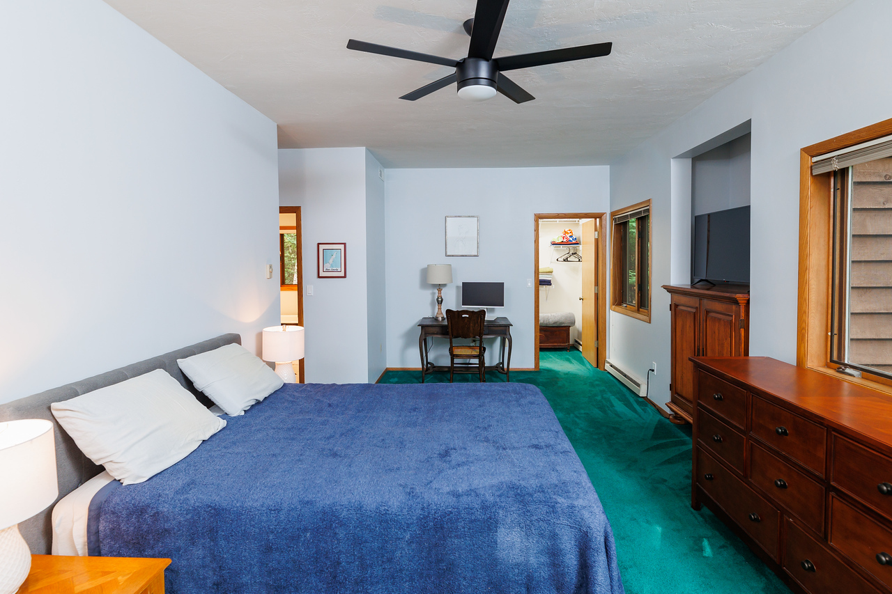 Bedroom 1 (first floor): Queen bed, Smart TV, ceiling fan – ensuite bathroom