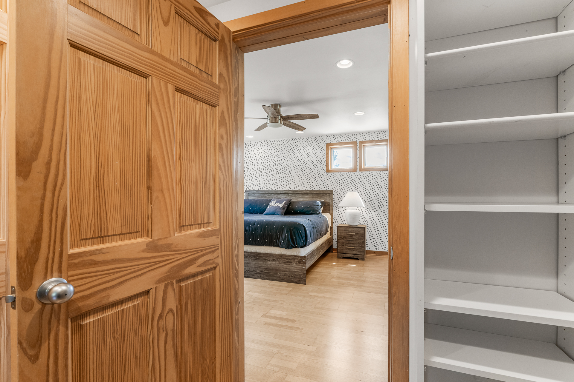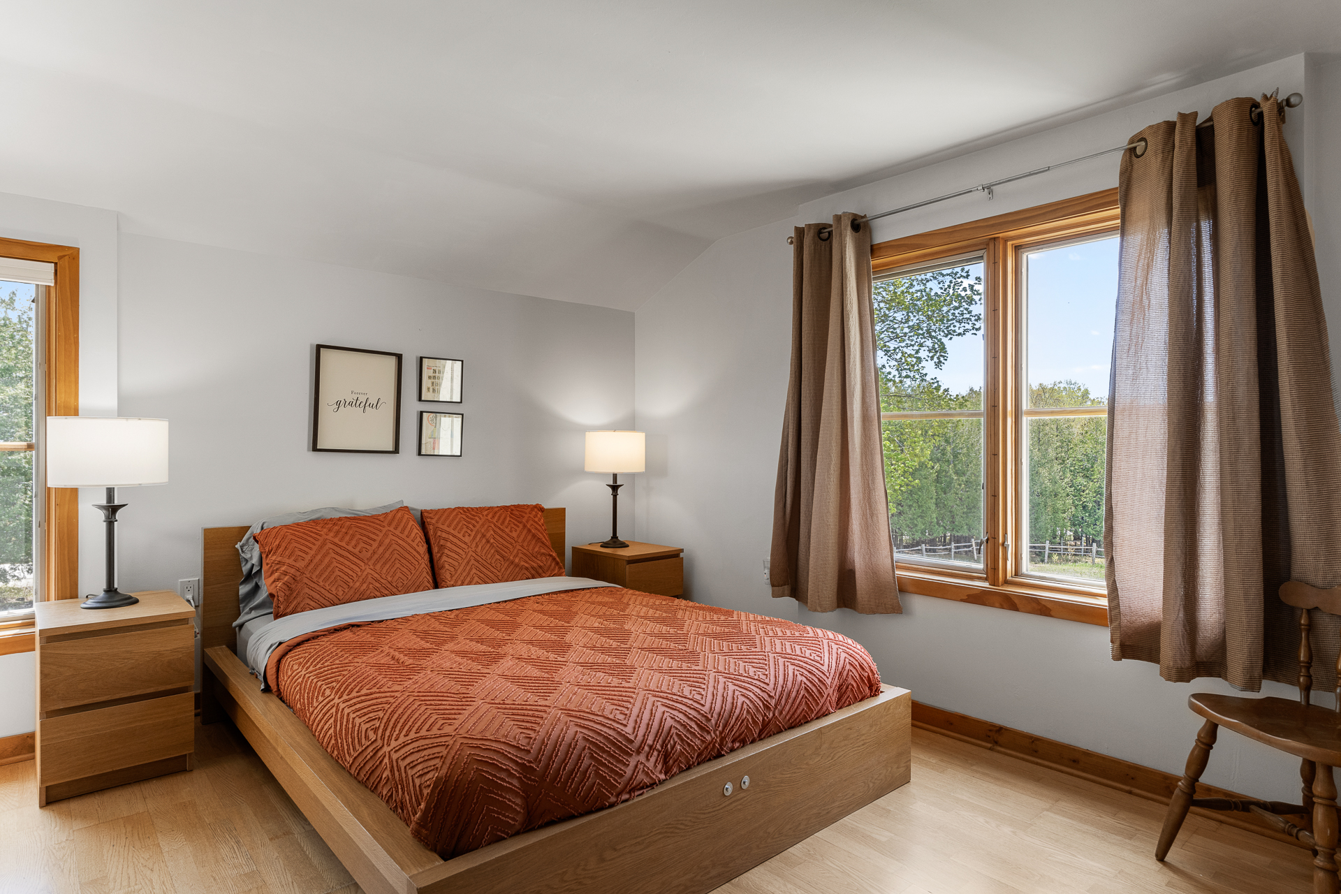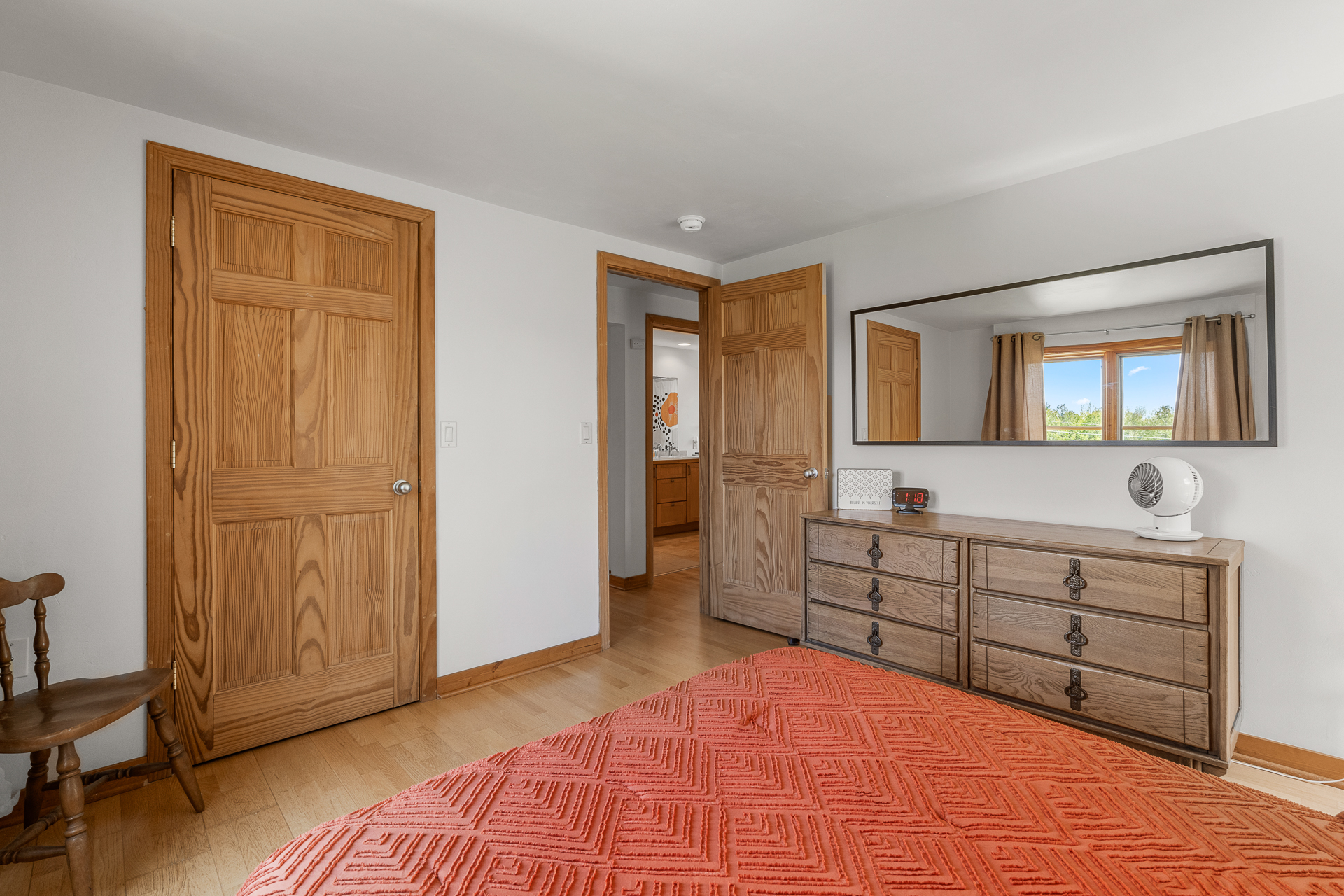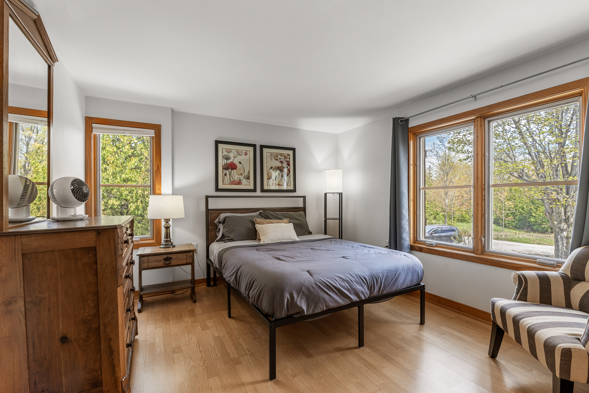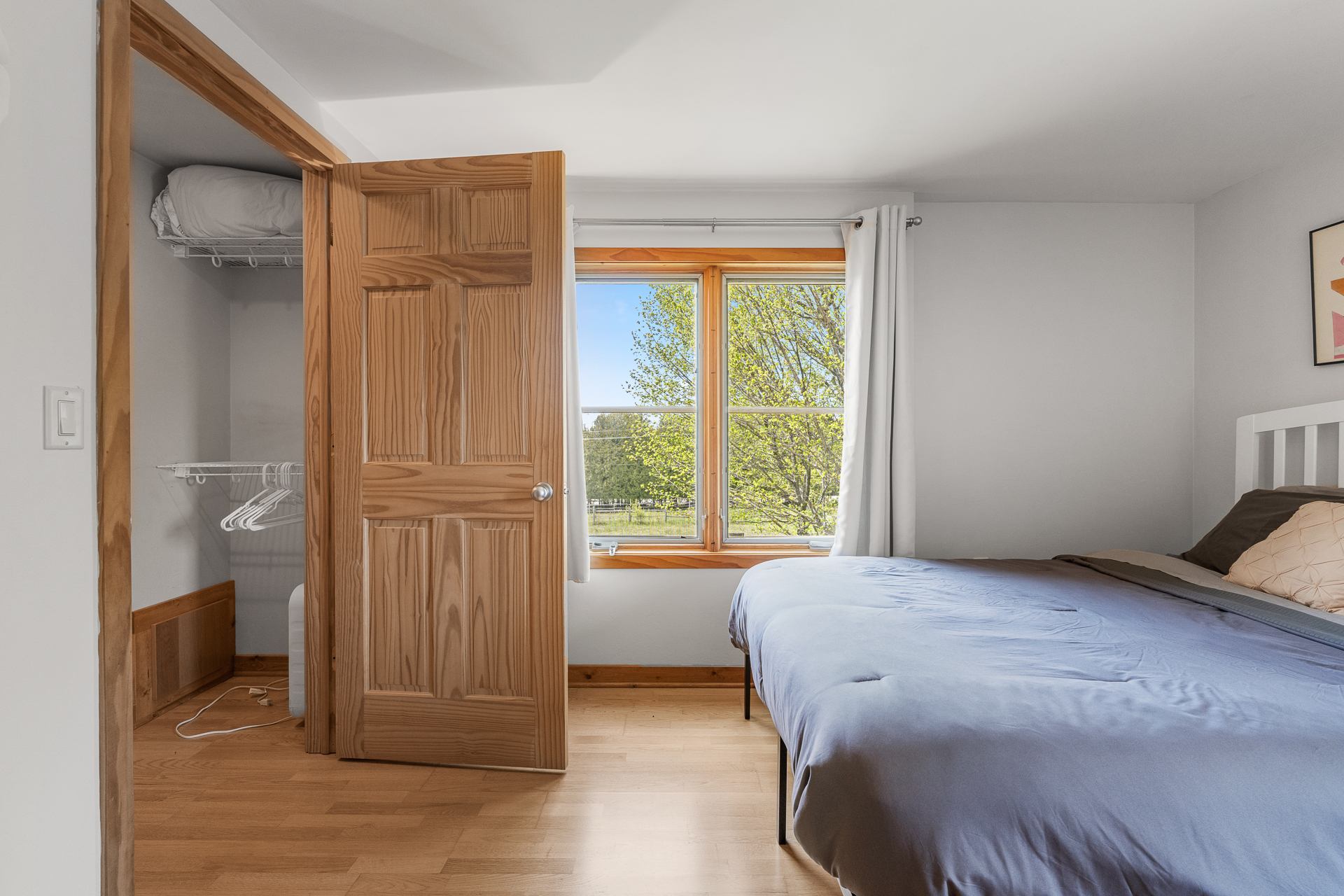 Bedroom 1: (Second level): Queen bed, Oscillating fan