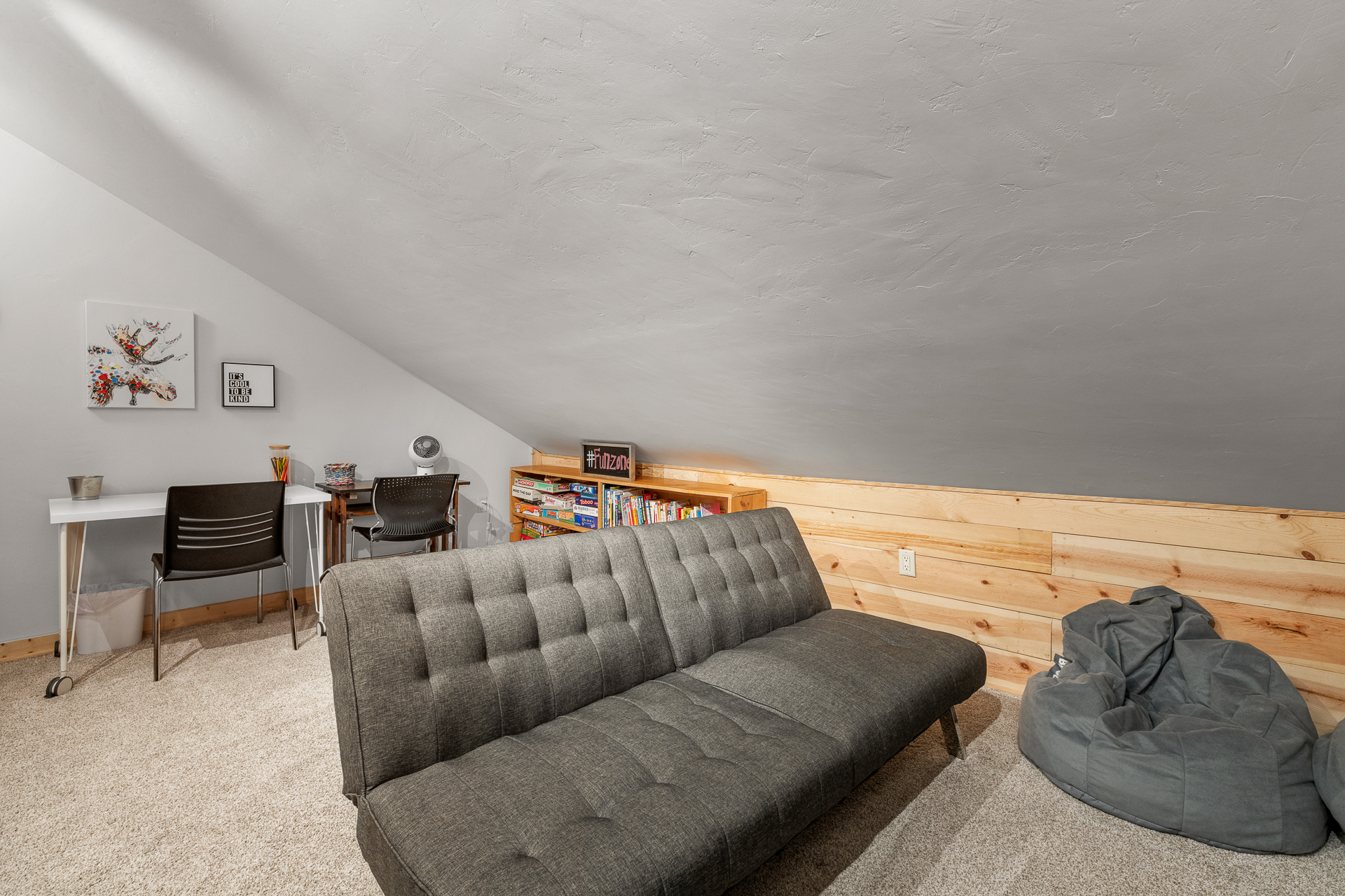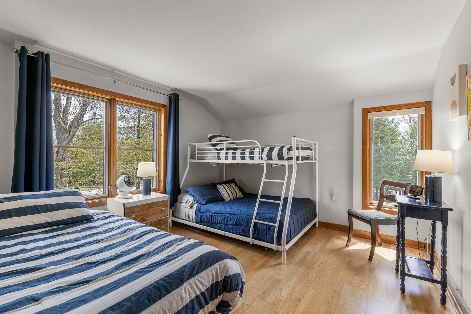 Bedroom 2: (Second level): Twin over Full bunk bed and twin bed, Oscillating fan,