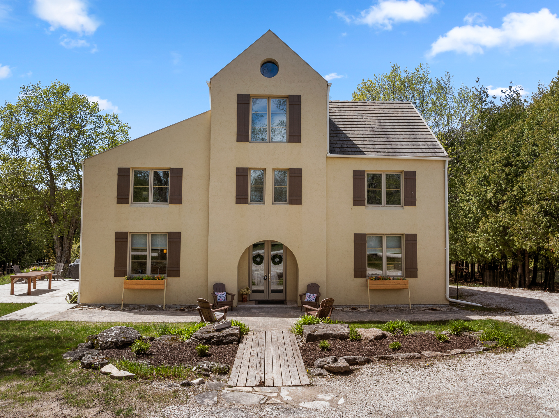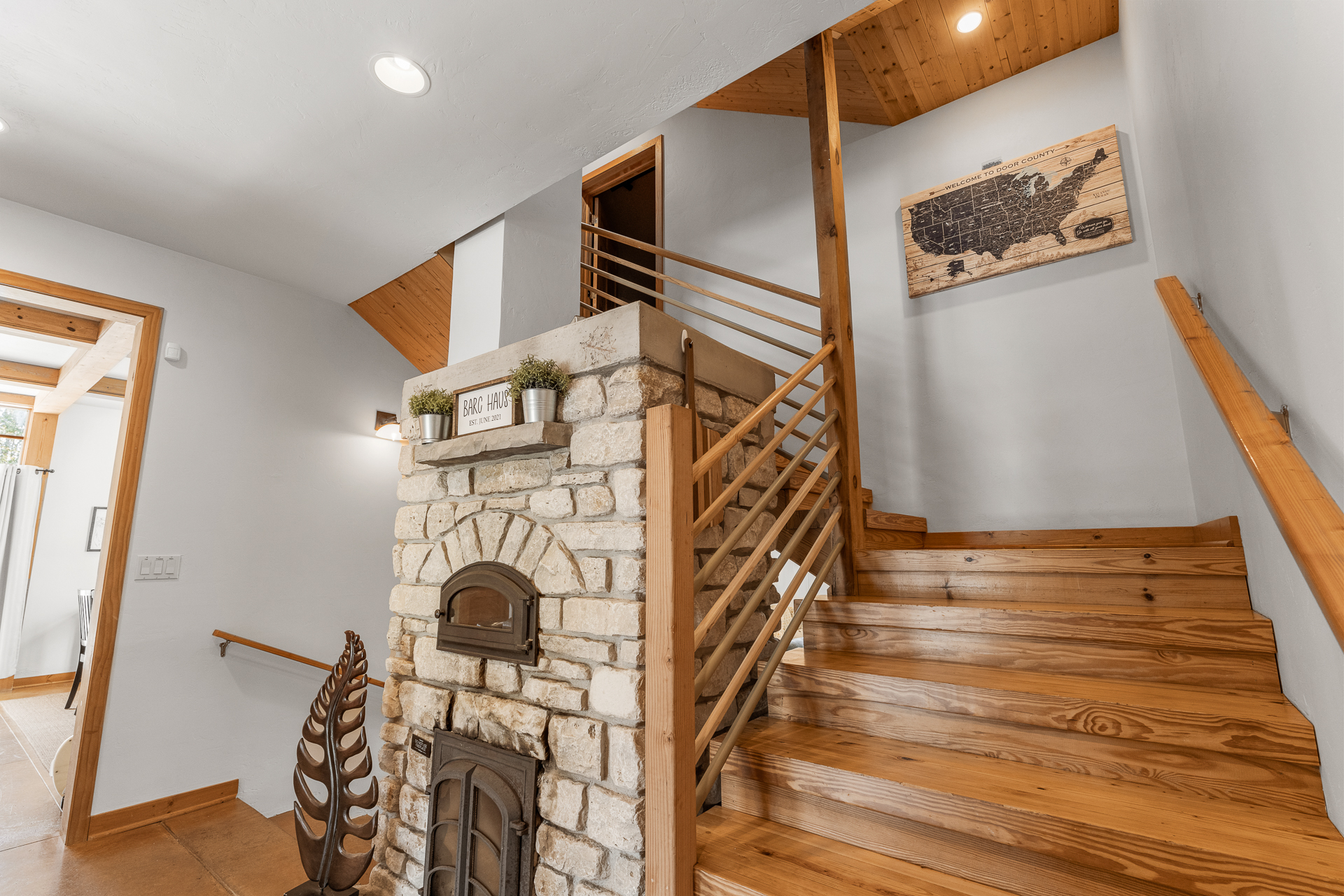 Welcome to B.A.R.C. Haus, hosted by Simple Life Rentals! If you're planning your next-Door Country getaway, look no further. This spacious architectural home is set on 3 quiet acres in the heart of Northern Door County, convenient to Sister Bay, Ephraim, Baileys Harbor, and Fish Creek. Close to shopping, restaurants, and bars. For the outdoor explorer, you are close to beaches, lakes and hiking trails. The property is mostly a large meadow surrounded by cedar trees for privacy from passing cars. Enjoy the backyard playing yard games or sitting around the large bonfire pit.