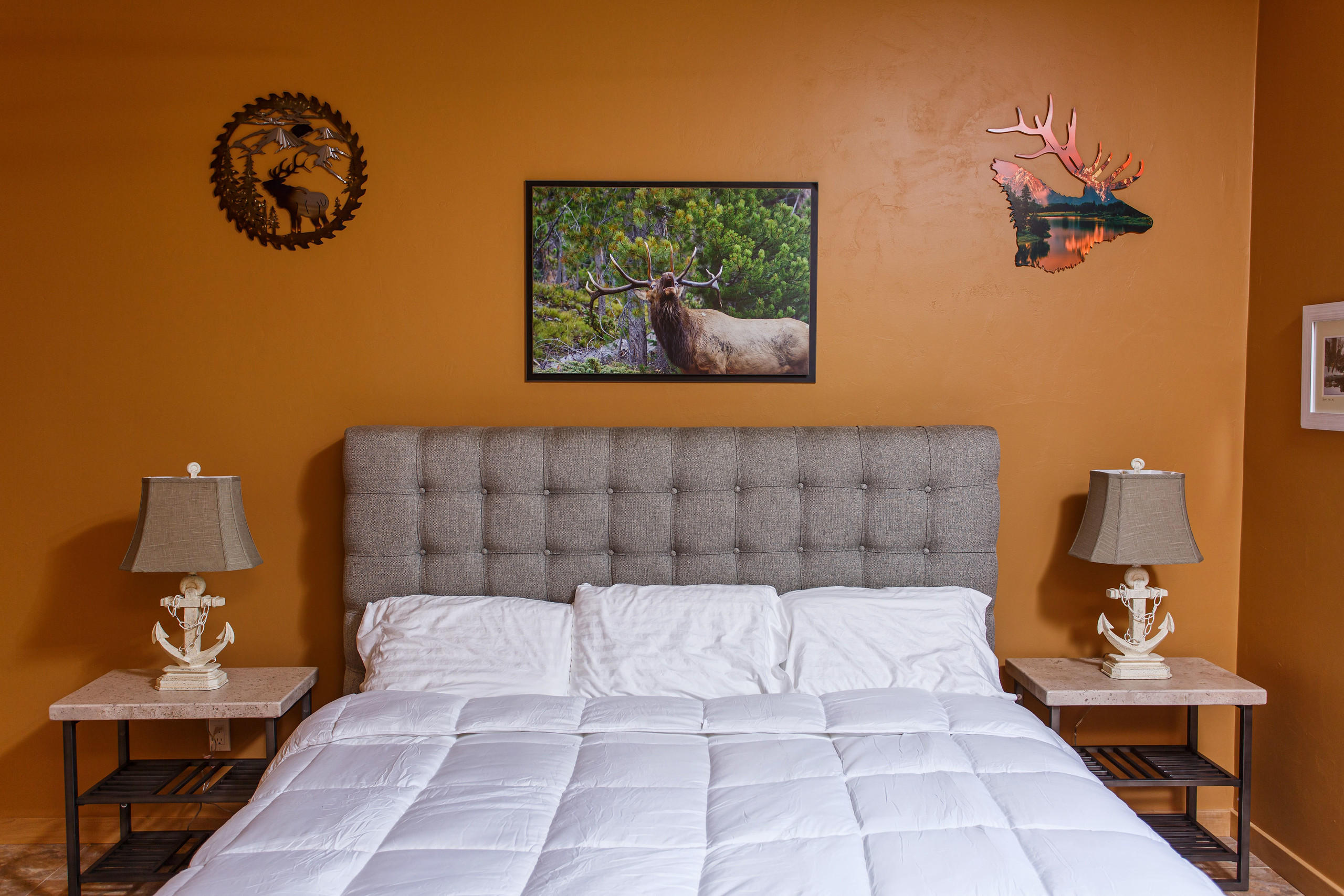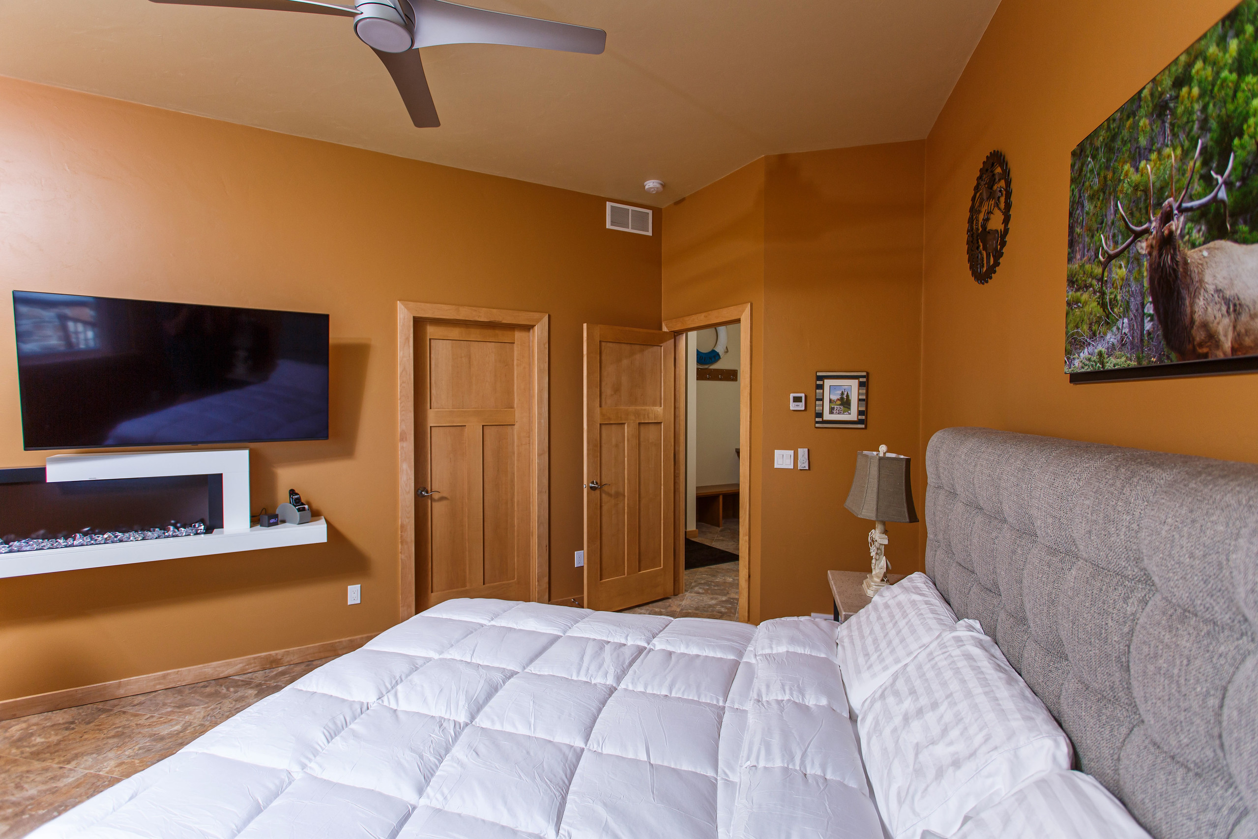 Bedroom 1 (main level): King size bed, ensuite bathroom