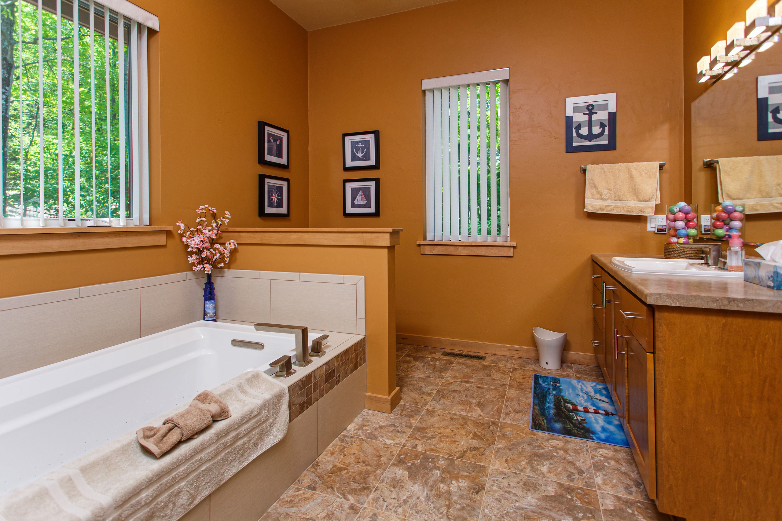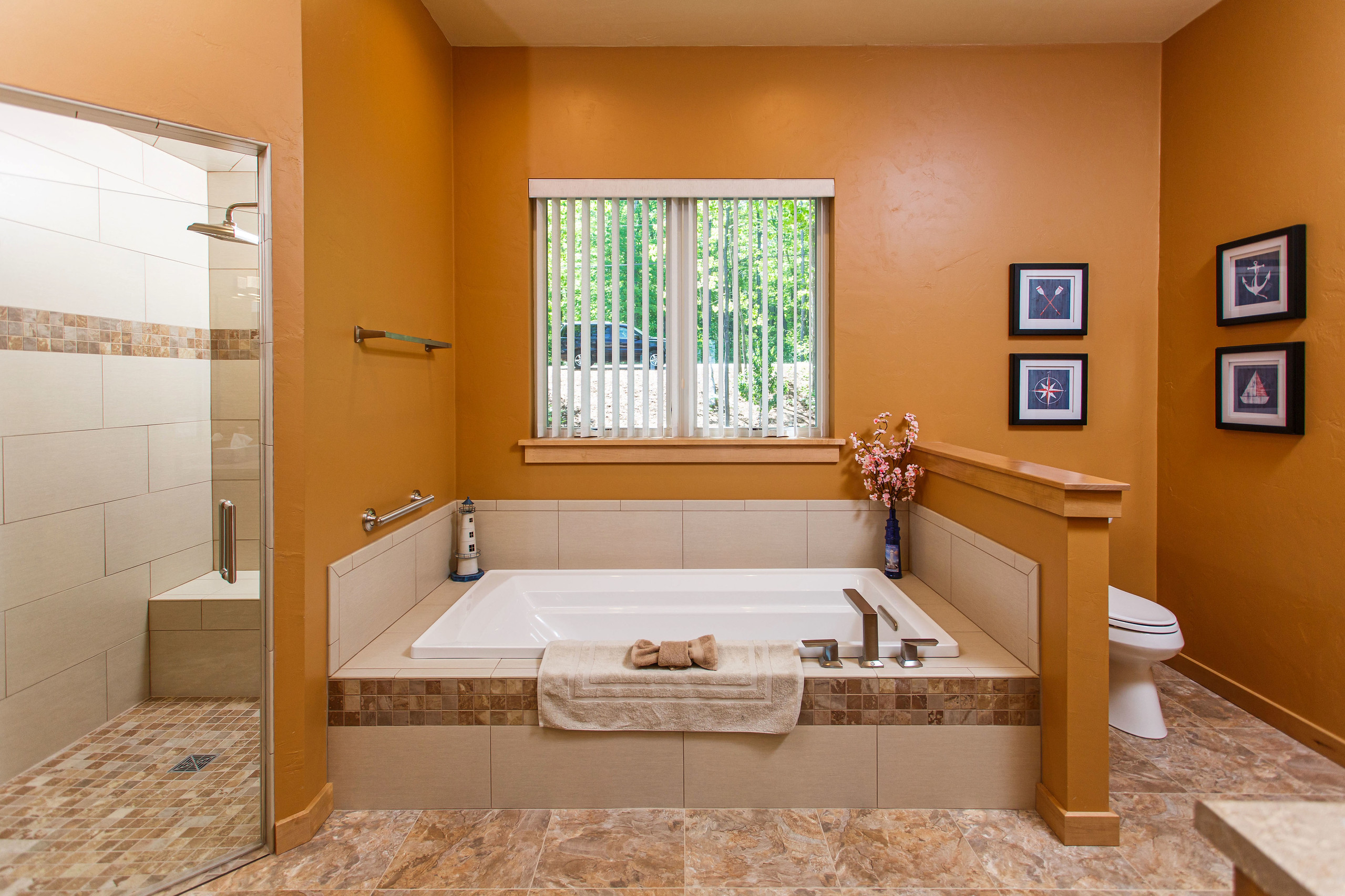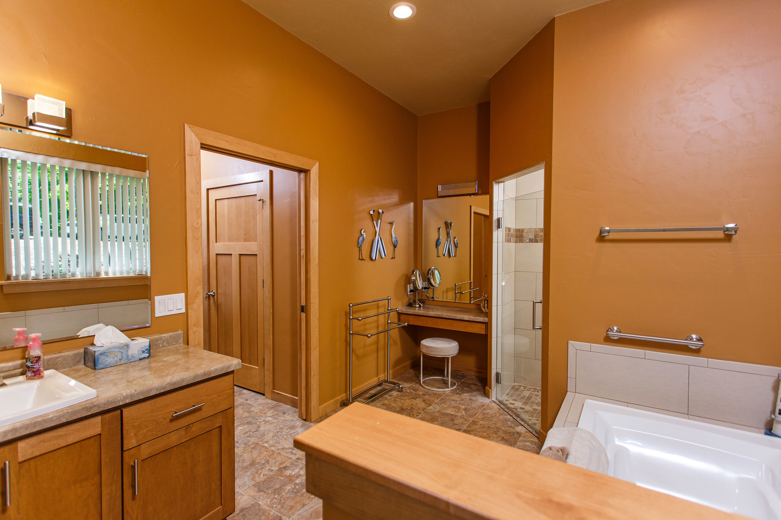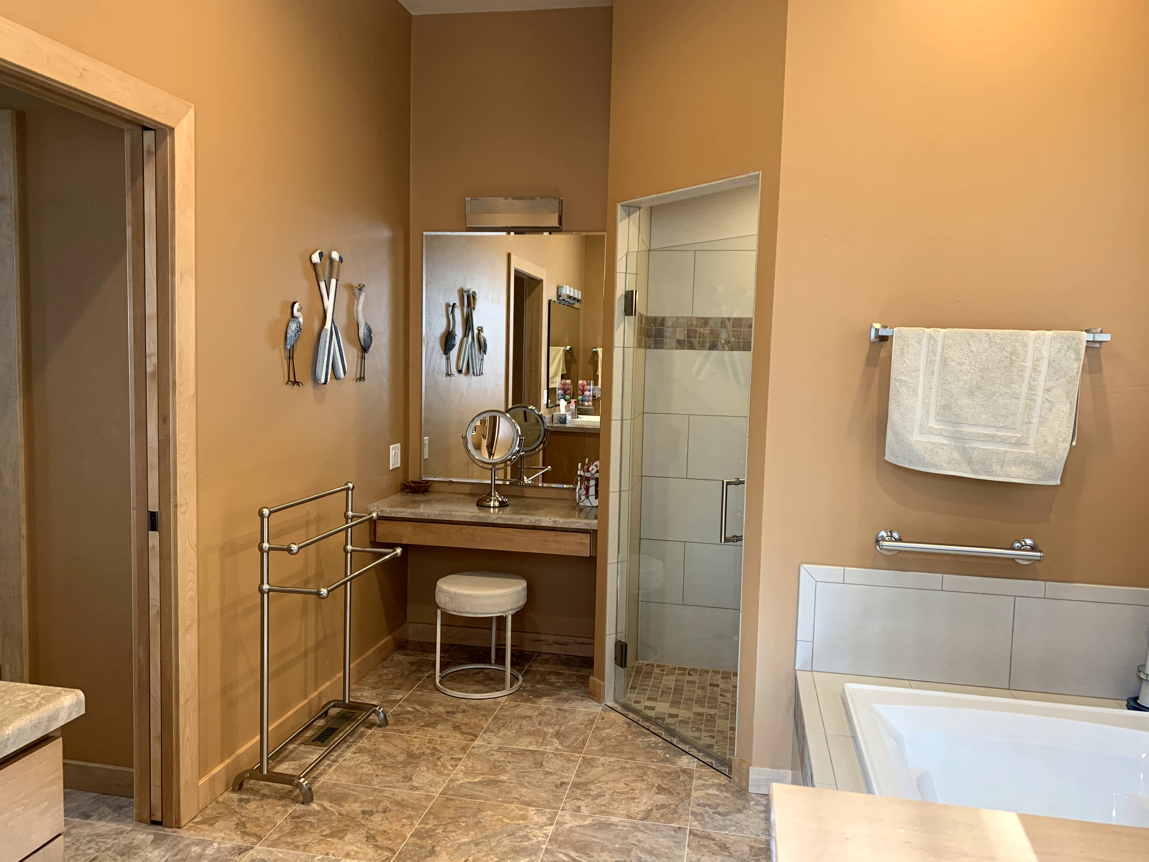 Bathroom 1 (main level): ensuite- walk-in shower and jacuzzi tub
