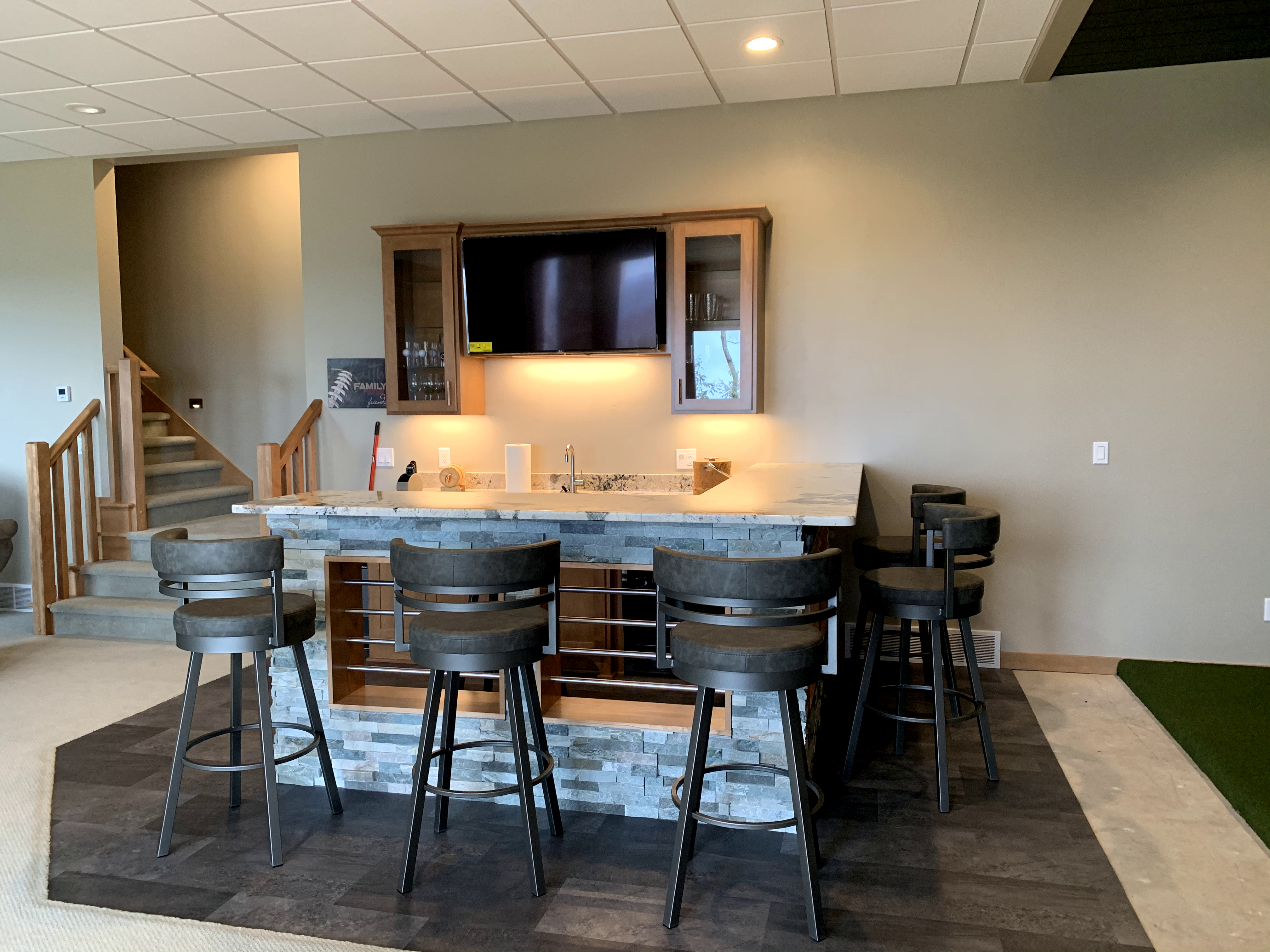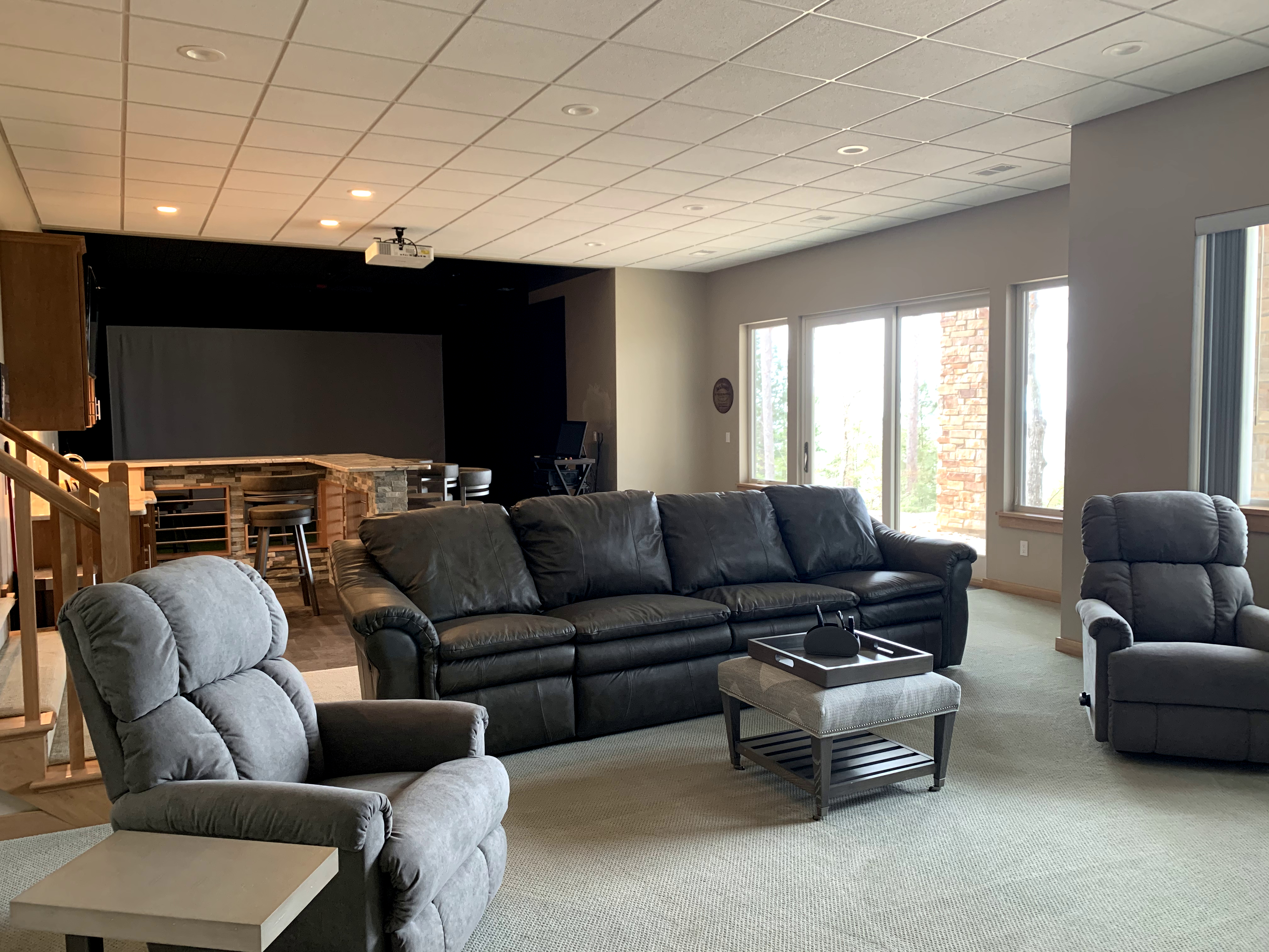Great views, thoughtful touches like golf clubs for the simulator, a pantry stocked with basic cooking needs, all brand new appliances, and a space big enough for 2 families to enjoy together make this an amazing retreat to get away from it all. The simulator space became a make-shift stage for karaoke and kids talent shows while the adults enjoyed conversation around the fire table. An overall great location to relax with friends and family.Chris - Posted: 8/6/2020