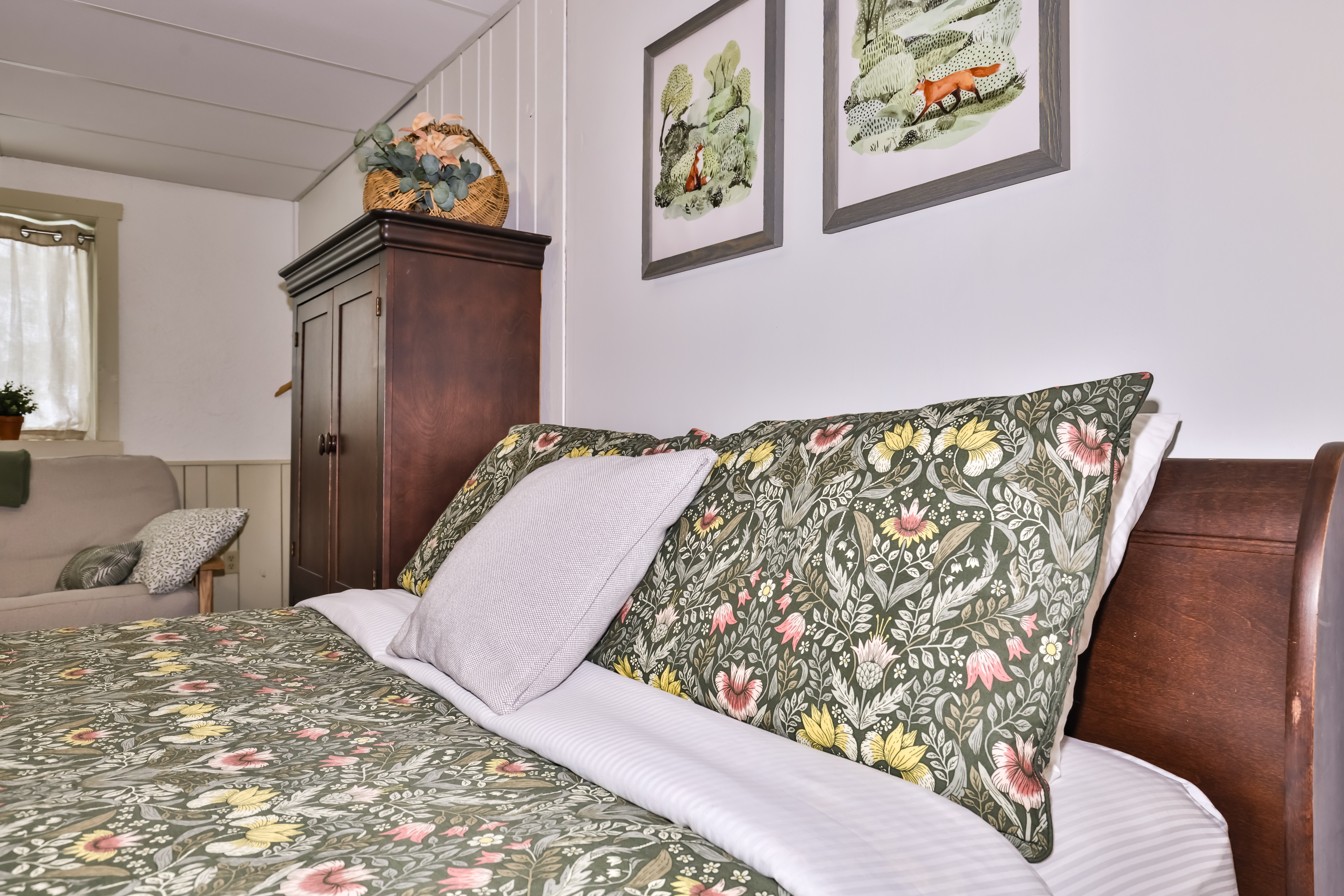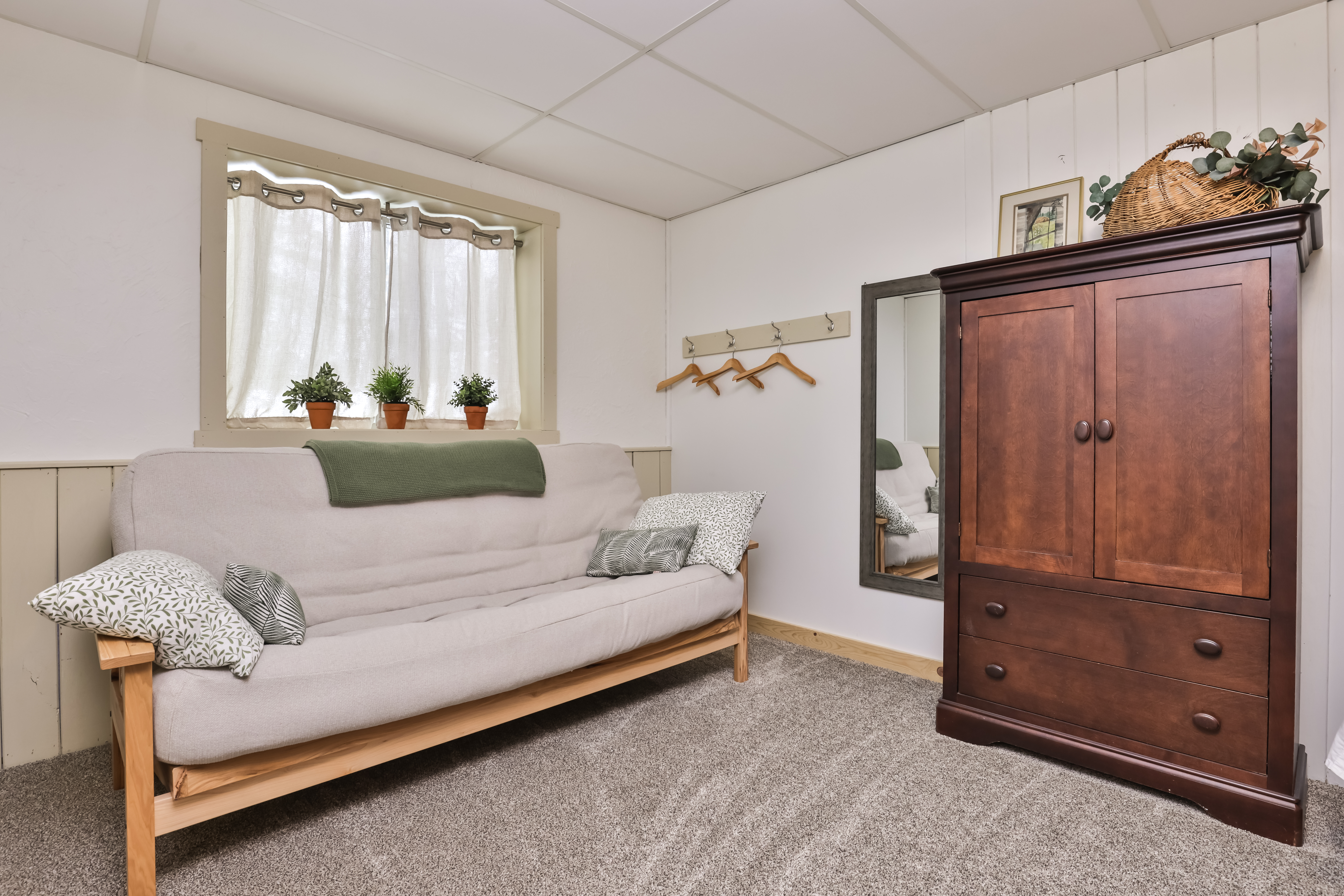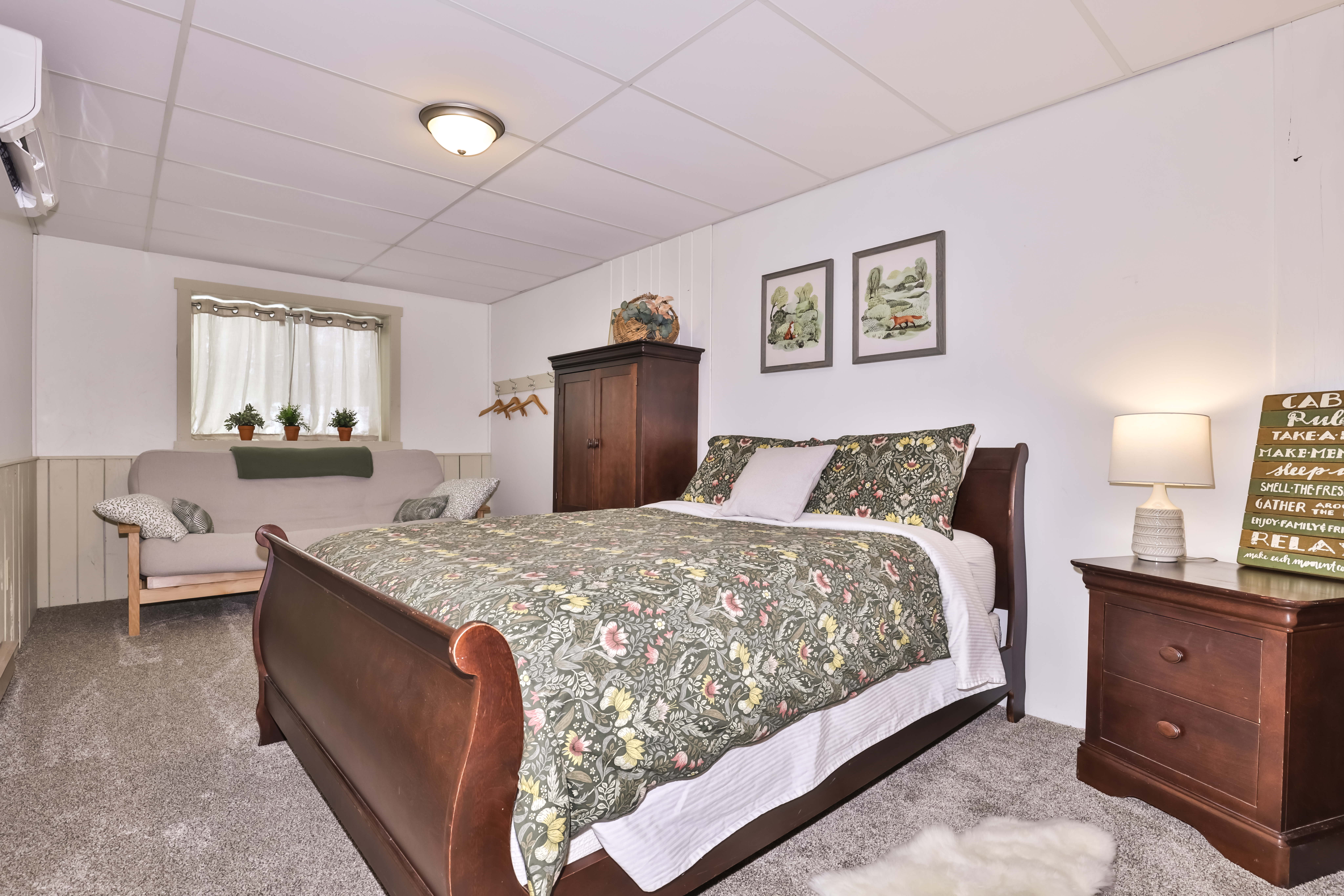 Bedroom 2 (ground/ lower level): Queen size bed and futon
