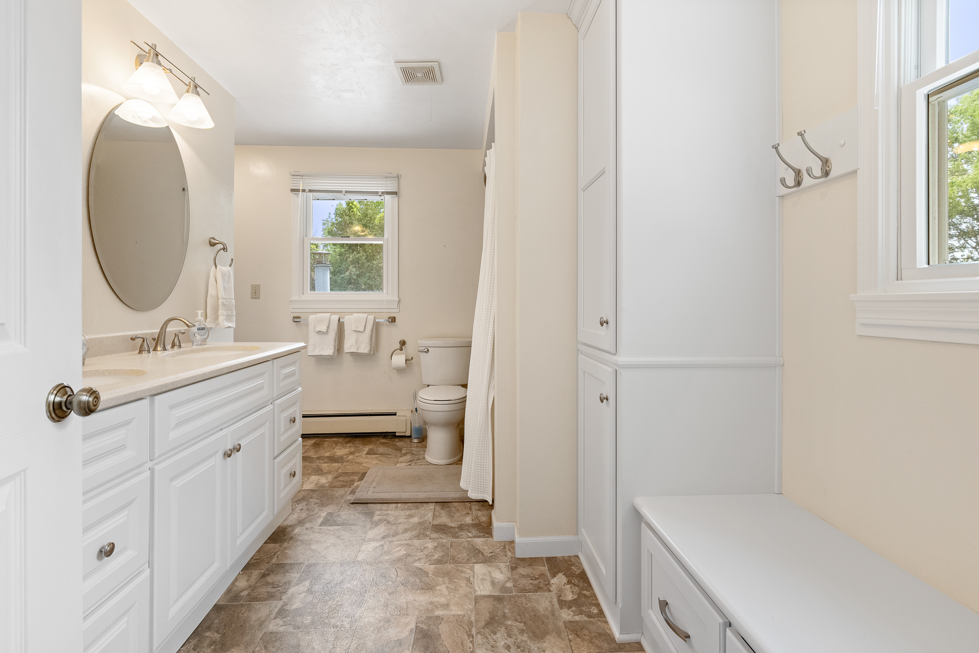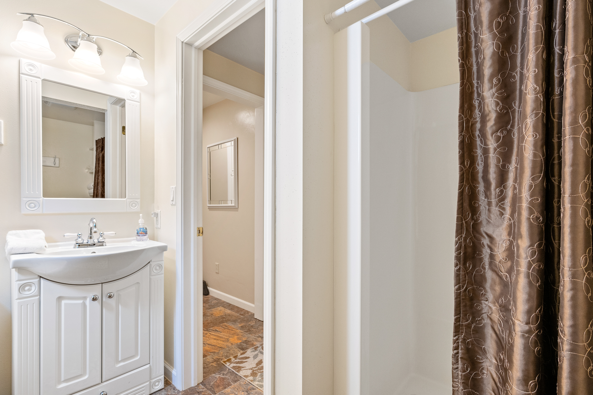 Bathroom 1: Upper level, shower tub combo, double vanity