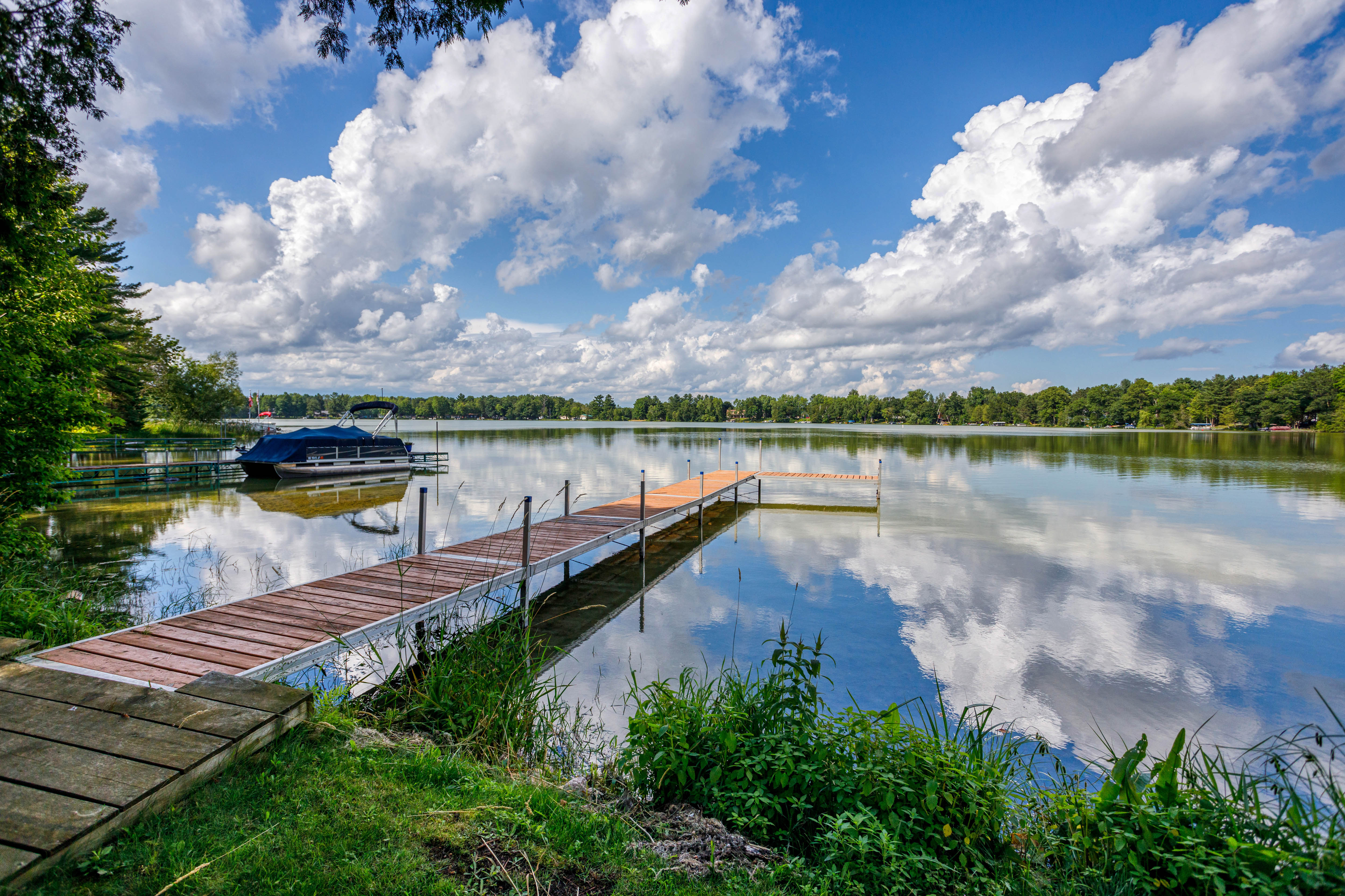 The Lake has quiet 'no wake' times in the early morning and late afternoon ideal for fishing and relaxation. Feel free to bring your boat and leave it at the dock. The water around the dock is shallow (about 2 feet) so a pontoon will work best.