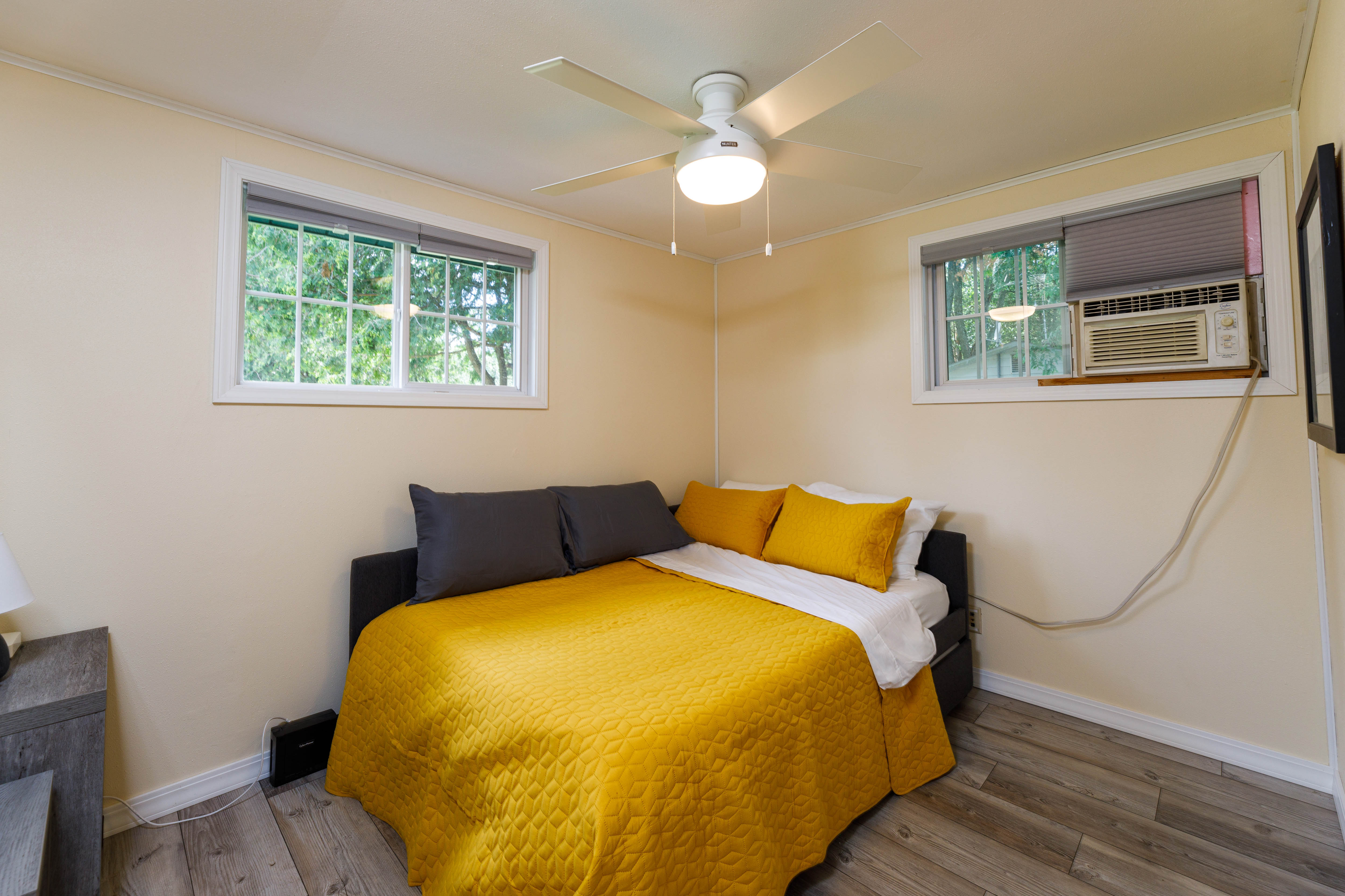Bedroom 2 (main level): One full size day bed with twin trundle, ceiling fan, hangers, extra pillows and blankets