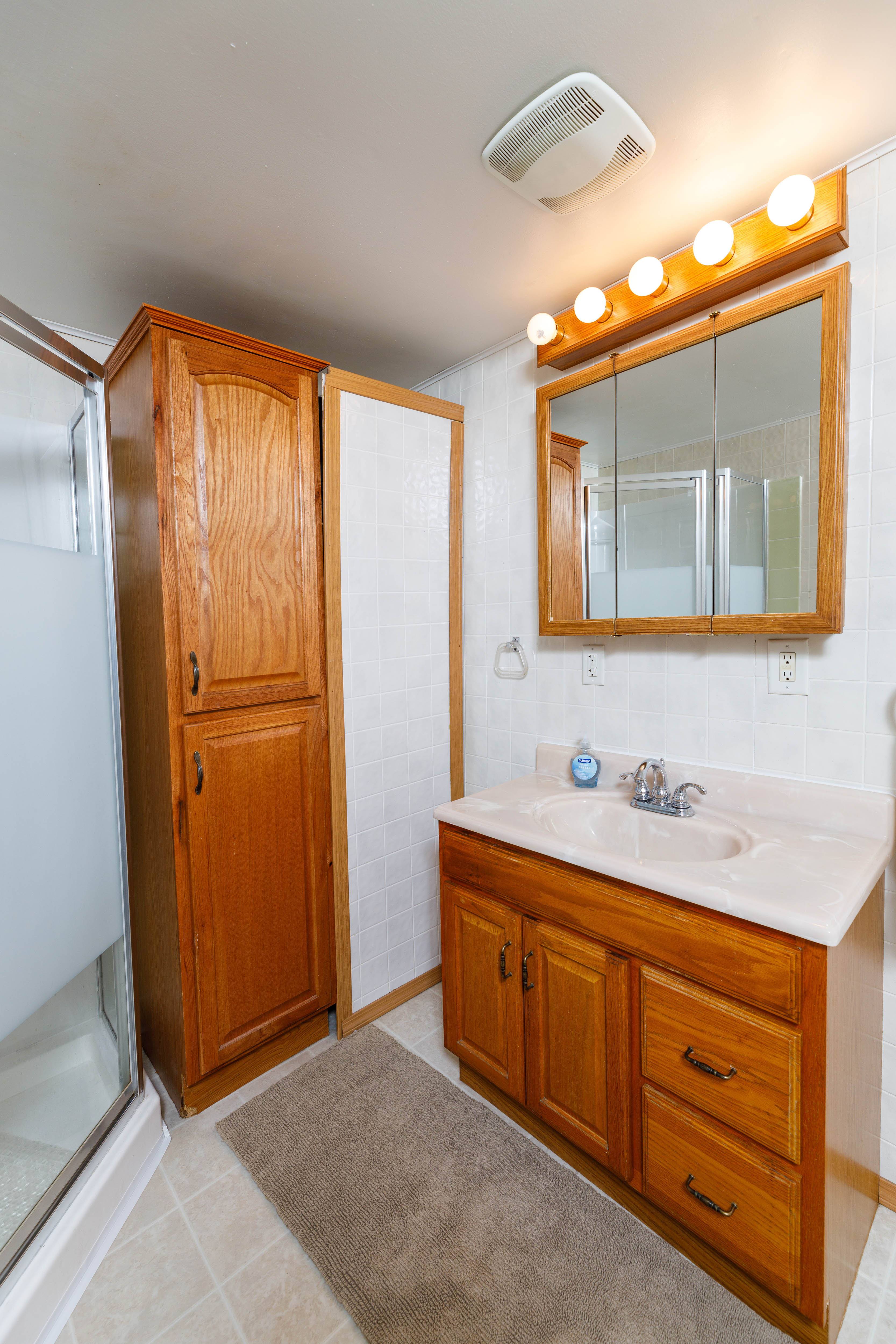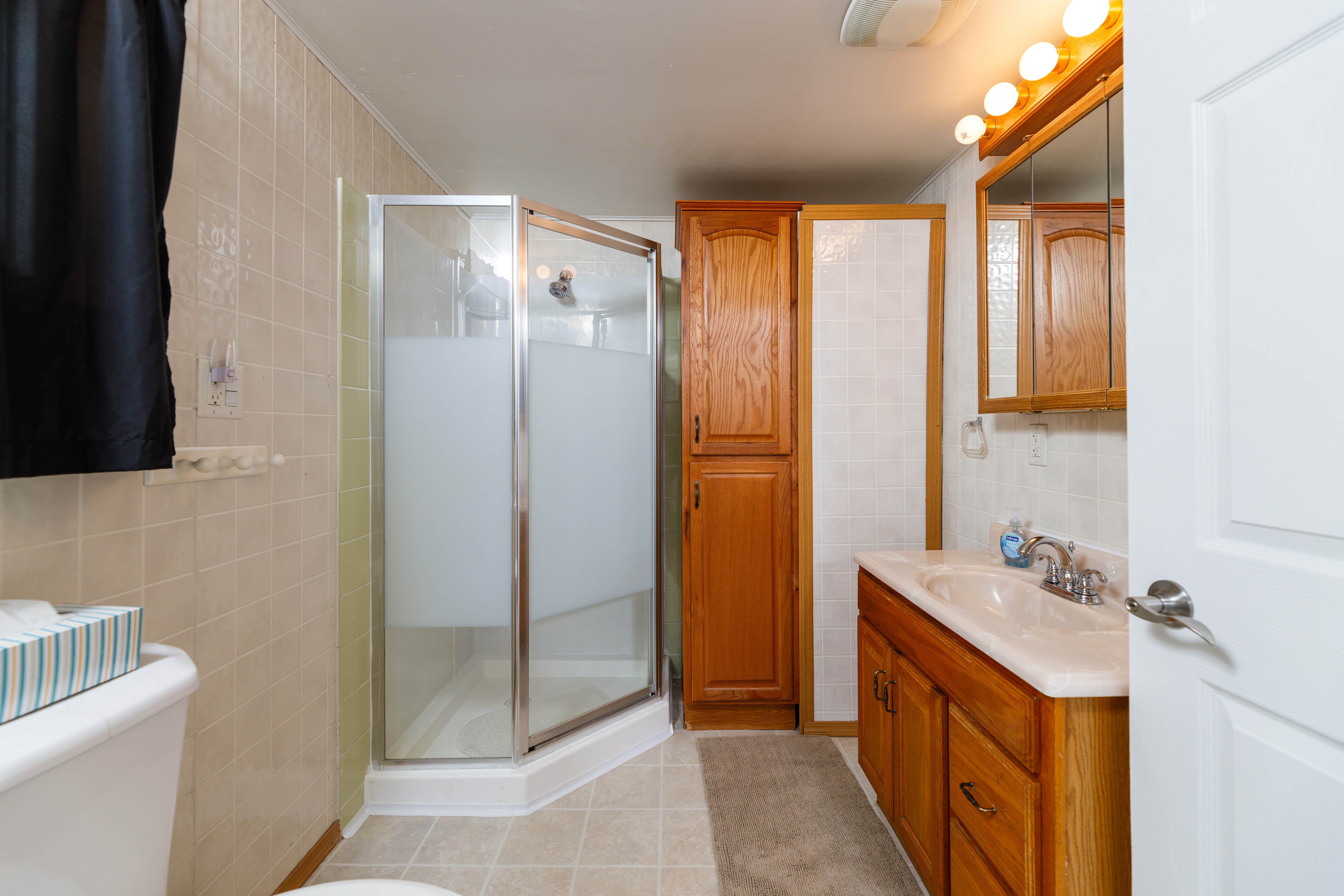 Bathroom 2 (Main level): Full bathroom with walk-in shower