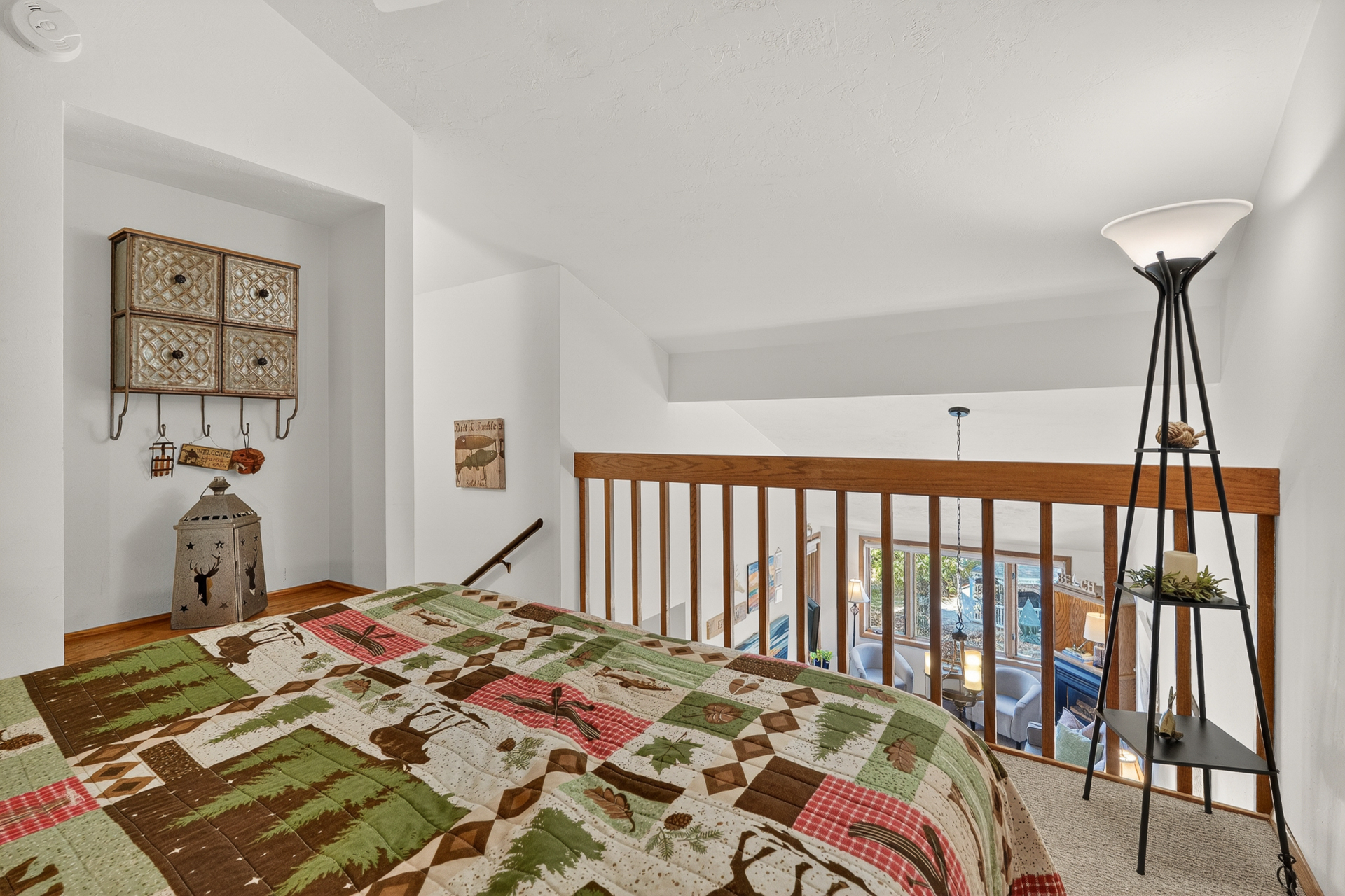Bedroom 2/ open loft (upper level): Queen size bed, TV, ceiling fan