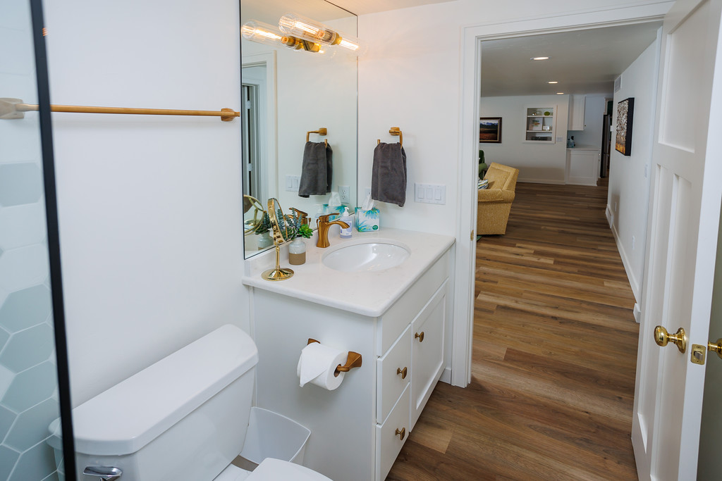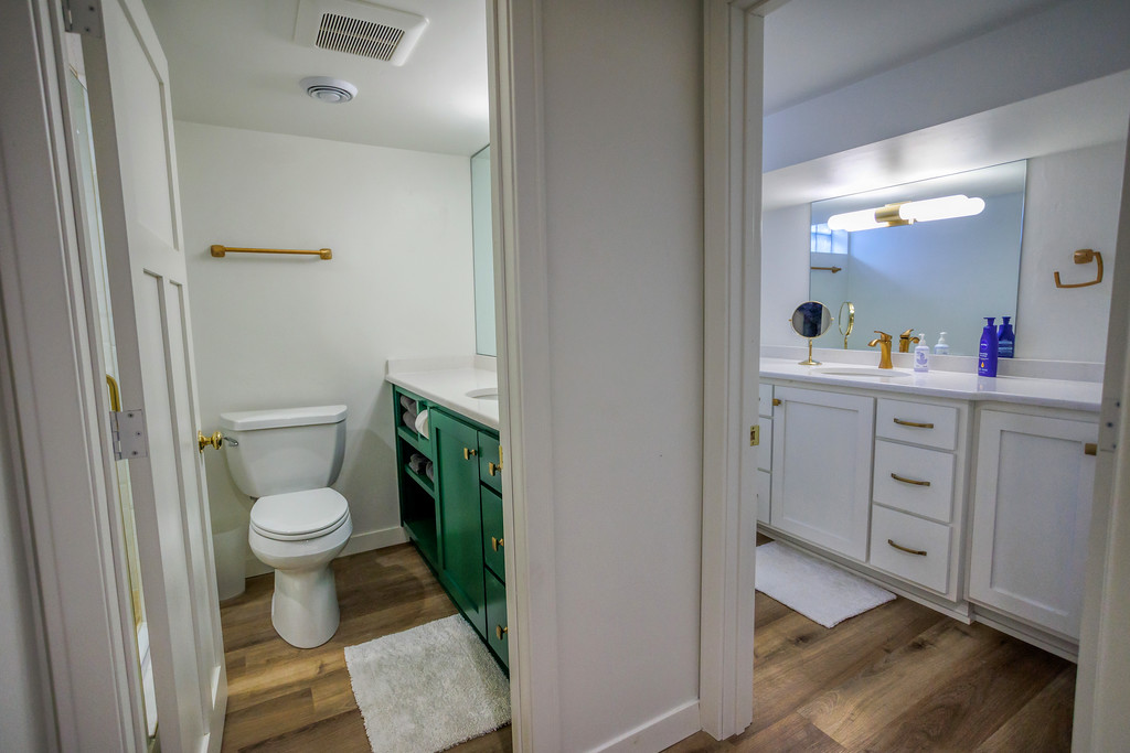 Bathroom 4 (lower level) includes a sink and toilet
