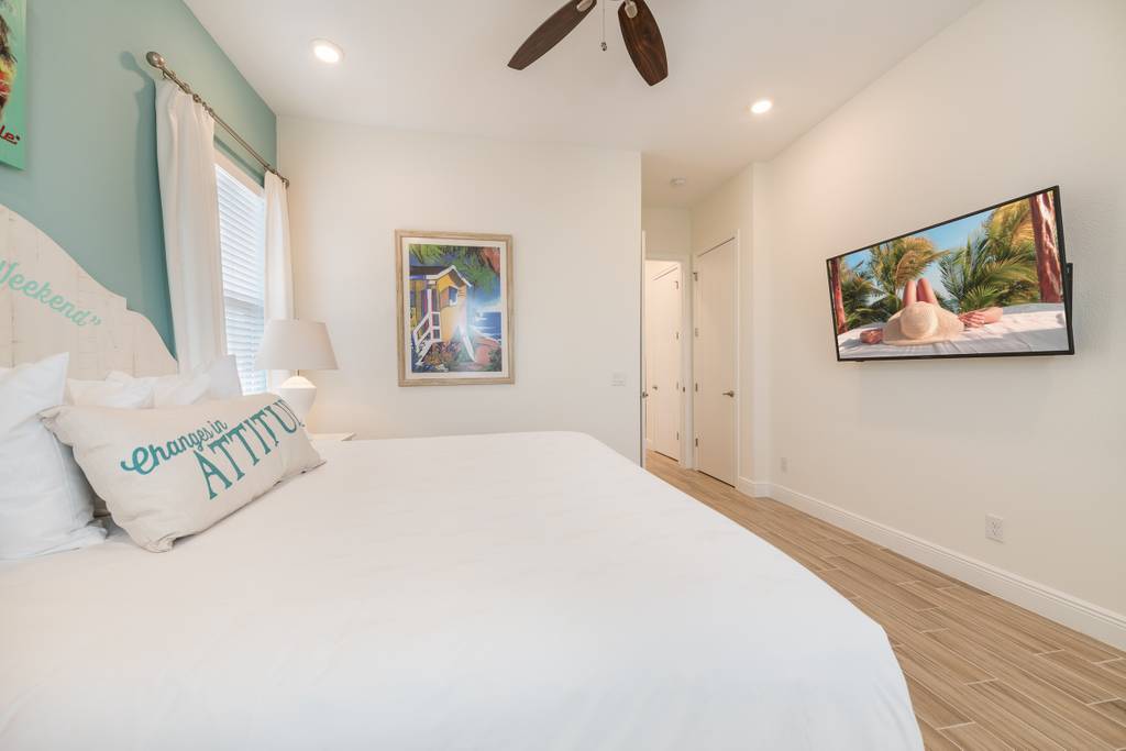 Bedroom 1 (main level): King size bed, Smart TV, ceiling fan