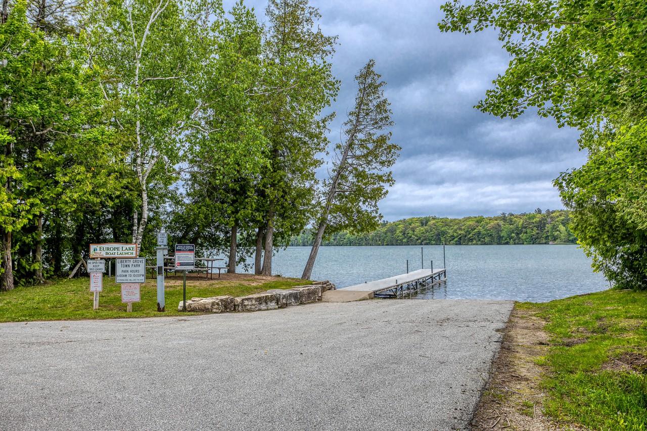 Less than 100 yards to the Town of Liberty Grove public Europe Lake boat launch (this is a shallow launch for smaller boats or non-motorized watercraft)
