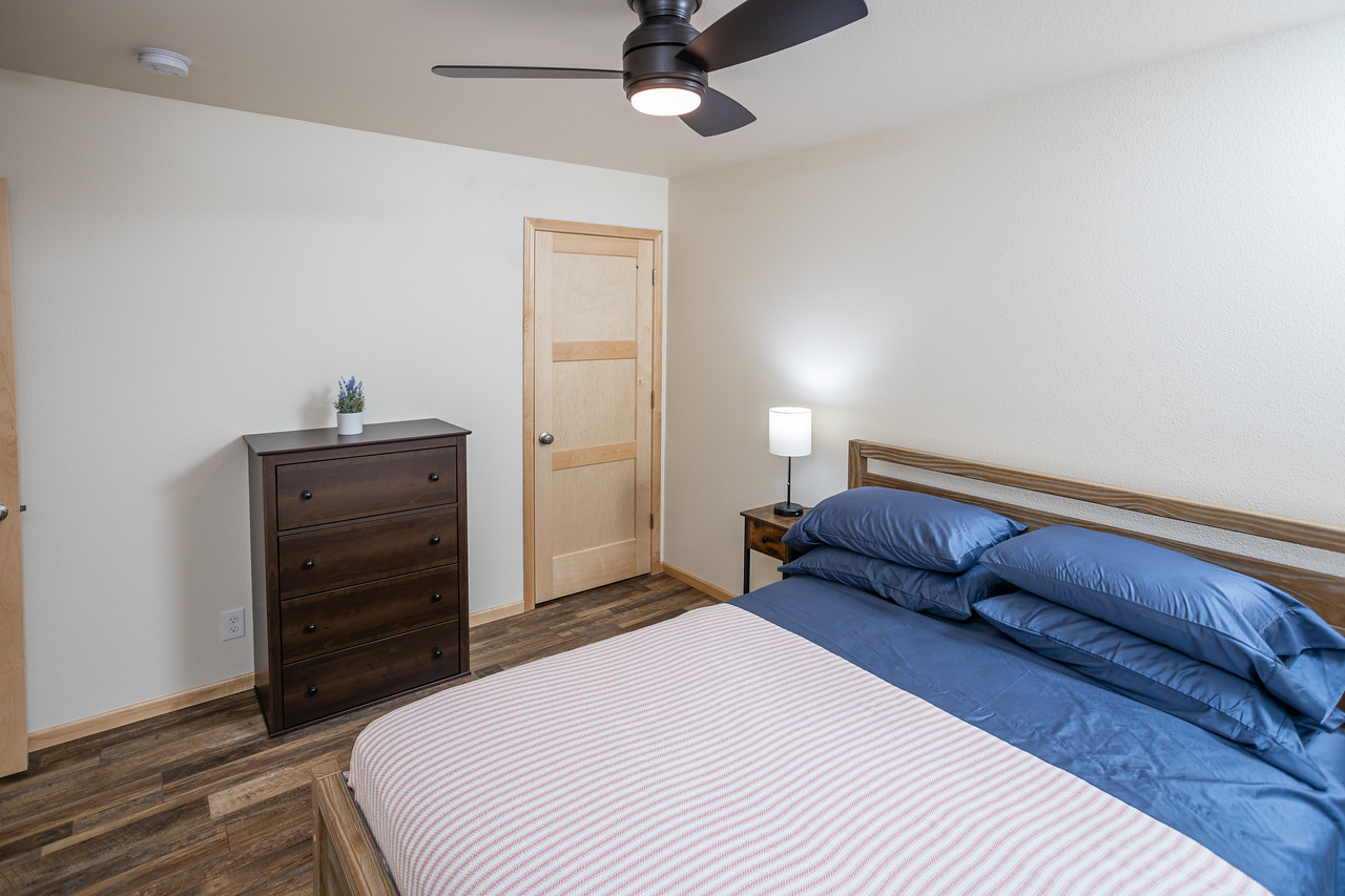 Bedroom #2: main level, Queen size bed, ceiling fan