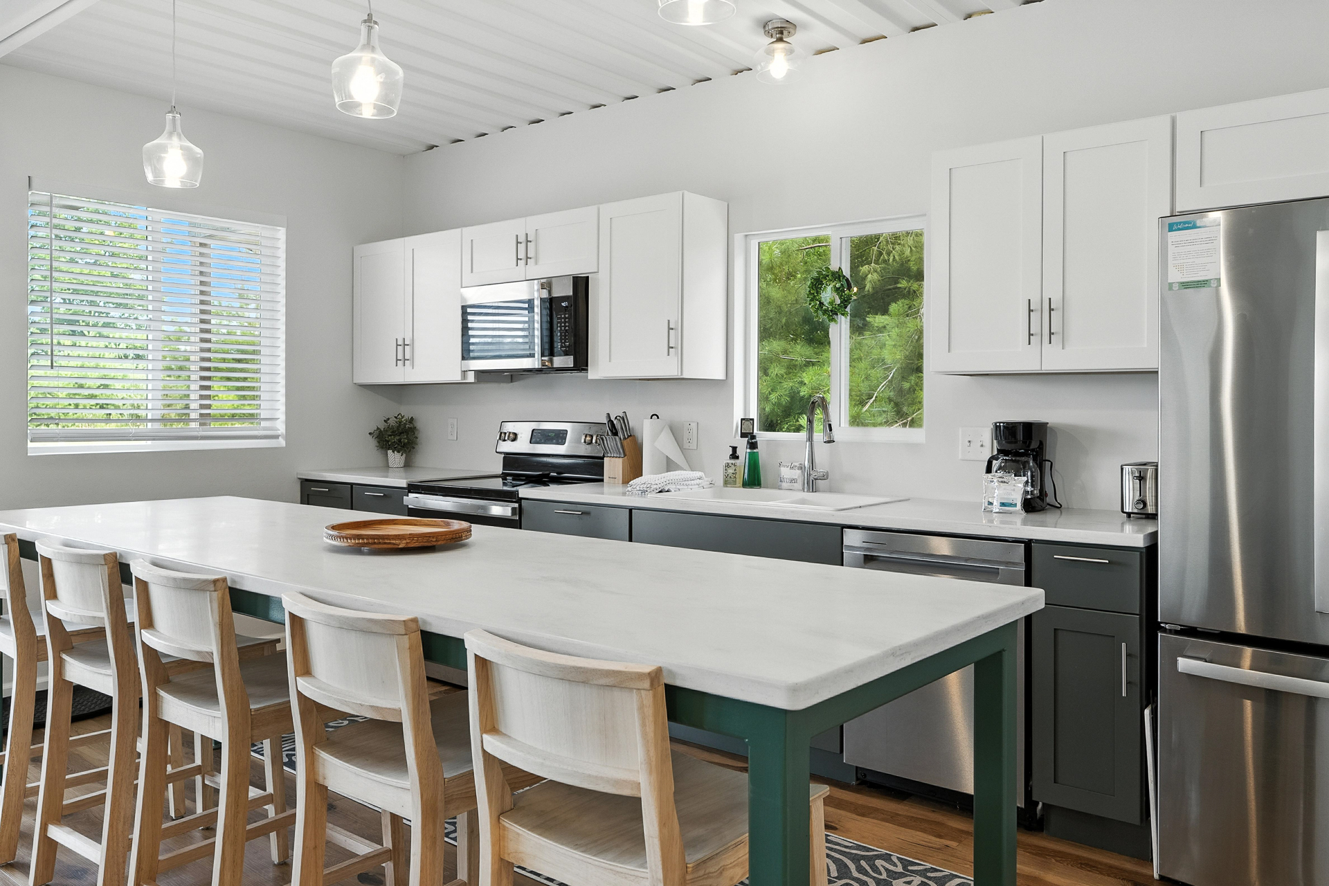 • A starter pack of essentials which includes toilet paper, paper towel, dish soap, dishwasher soap, hand soap, and garbage bags. Due to septic systems, we do not provide facial tissue. One each of travel size shampoo, conditioner, and body wash per full bathroom.