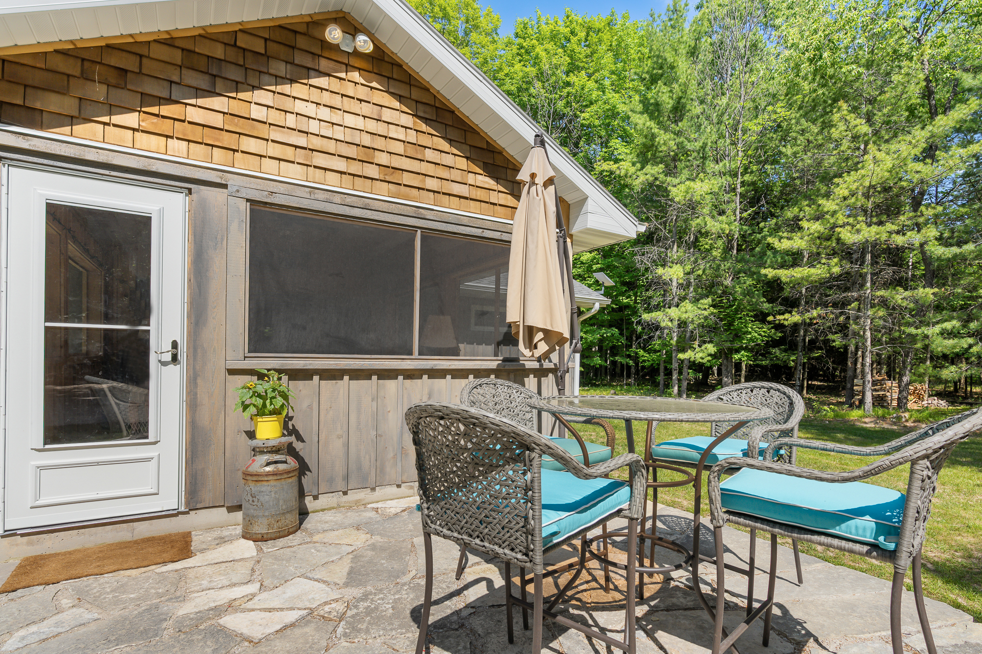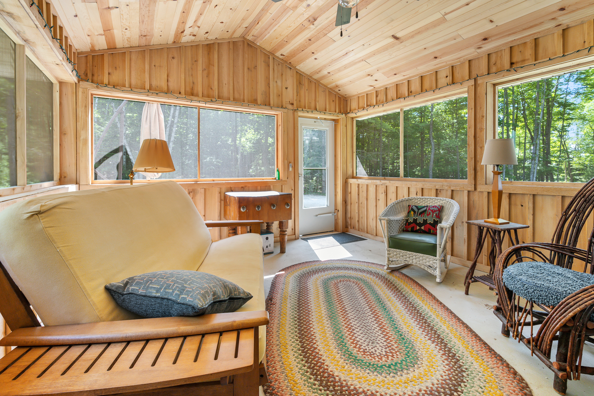 Screened porch includes plenty of seating
