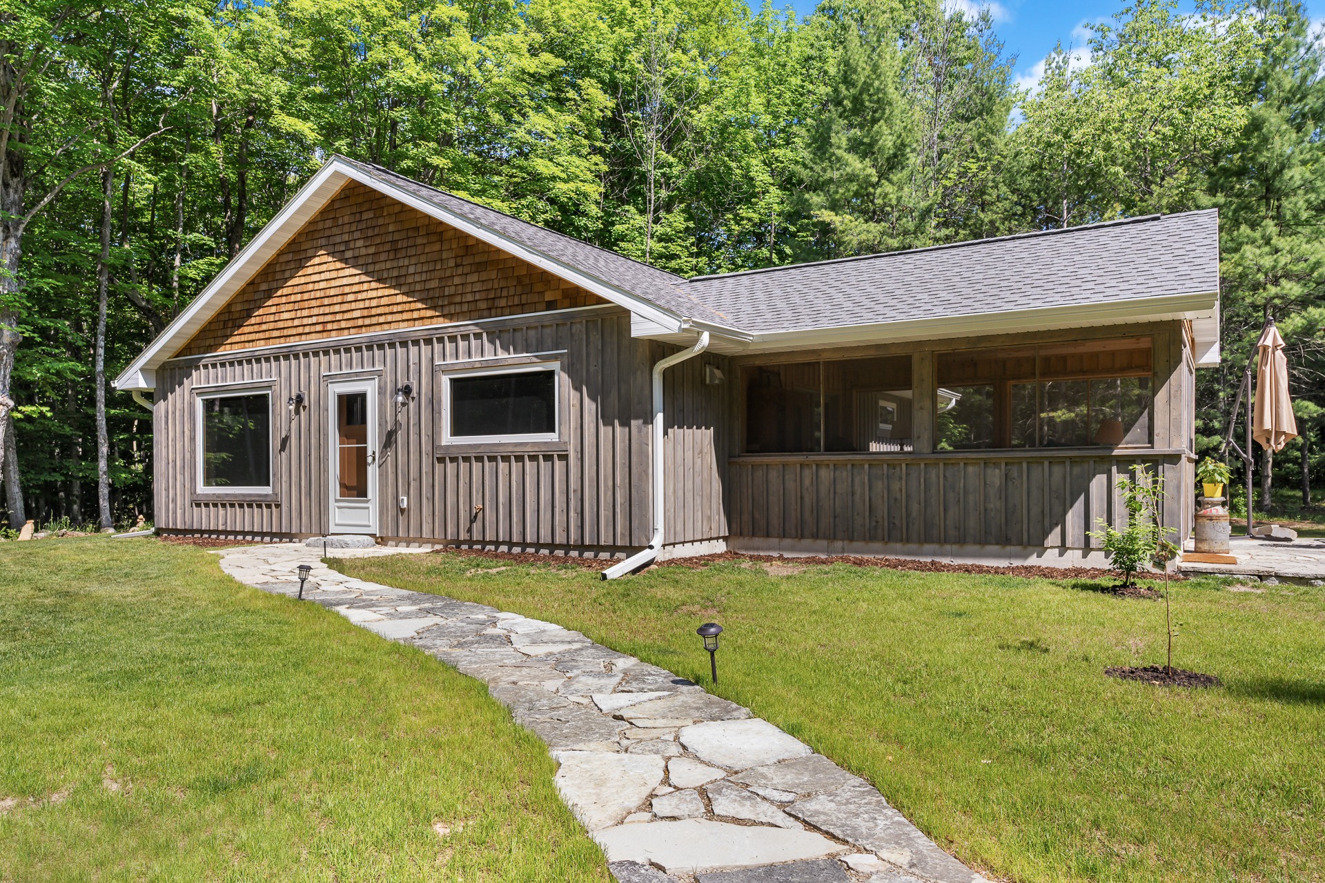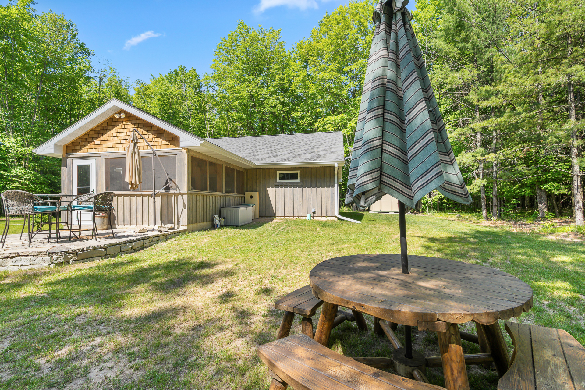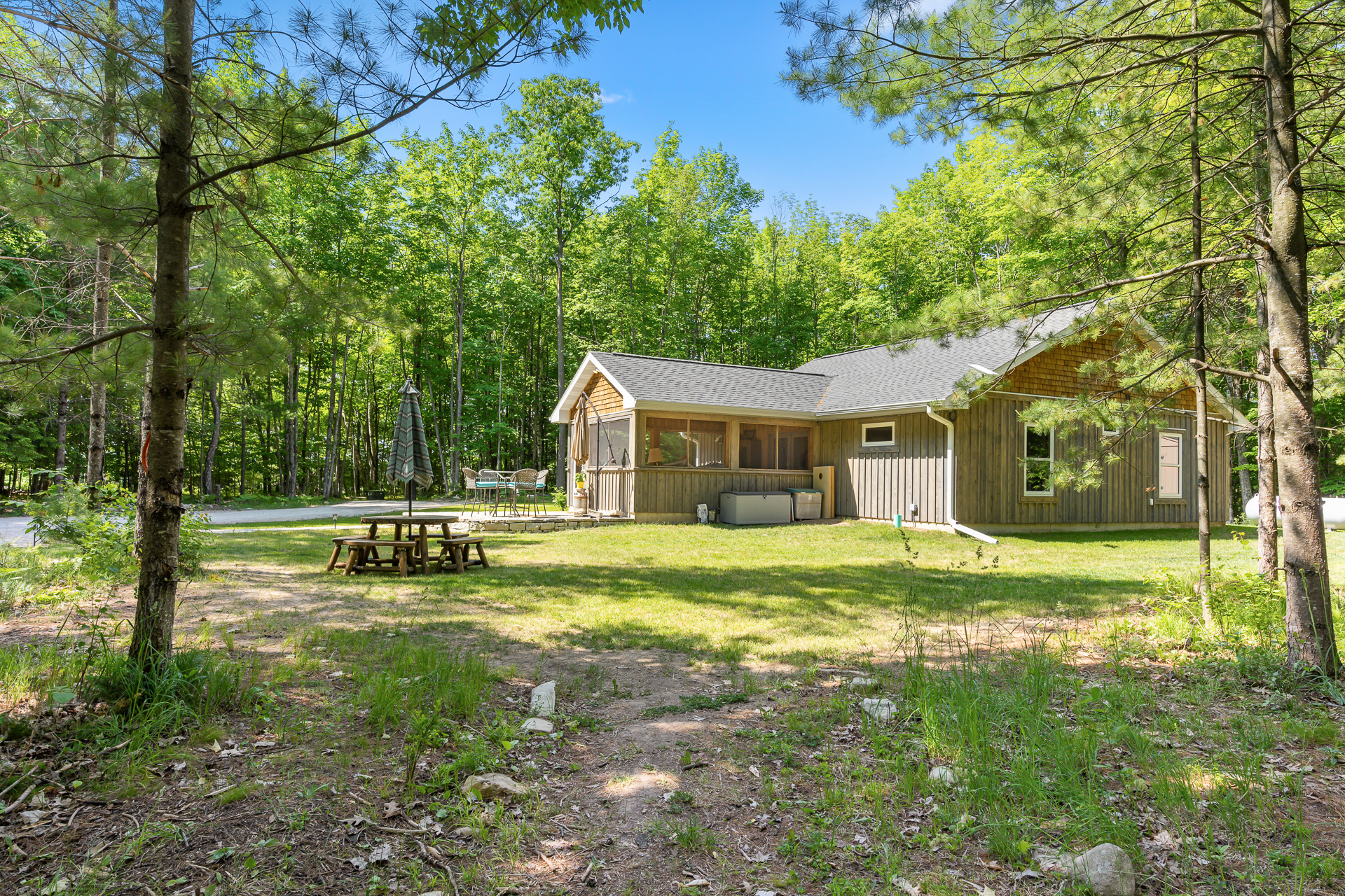 Welcome to Gibraltar Getaway, hosted by Simple Life Rentals! This newly constructed 2-bedroom, 1 full bath cabin is nestled in an old growth Door County woodland. This property has hand crafted logs that cover the walls that are over 150 years old and combine with the beauty of the stone fireplace. The stone fireplace creates a warm and inviting atmosphere for the guests. This one level cabin is located one mile from Peninsula State Park and is conveniently located on a quiet road between Ephraim and Fish Creek.
