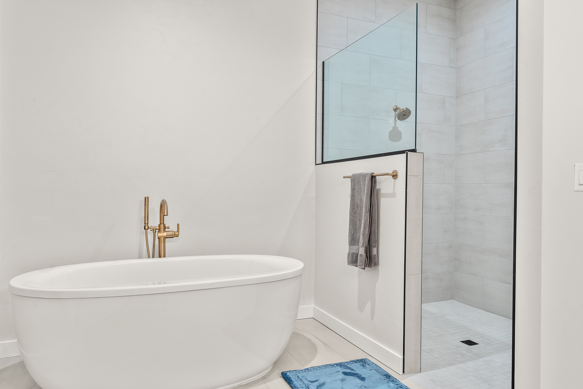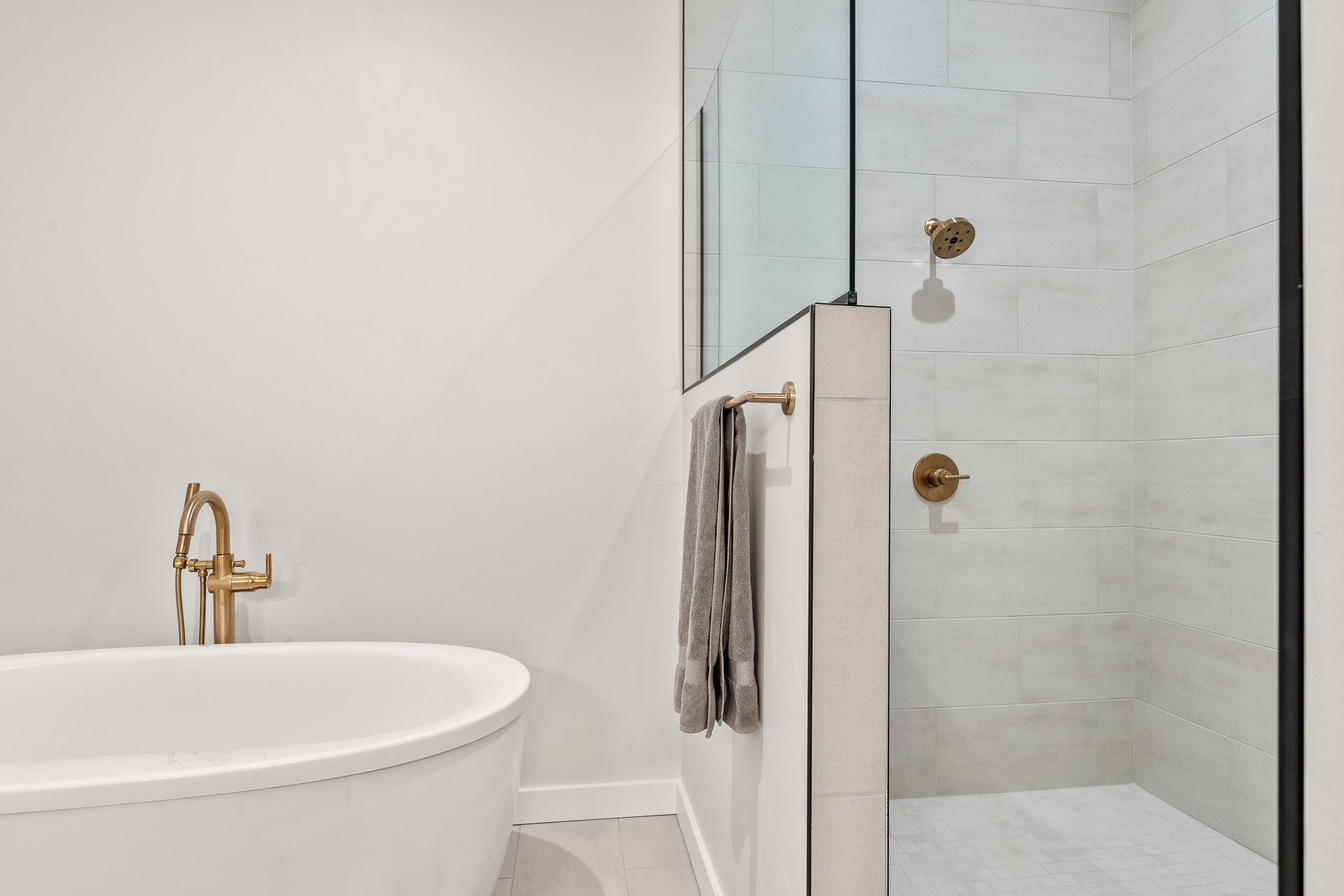 Bathroom 1: Full bathroom with walk-in shower and deep soak tub (attached to primary)