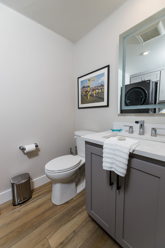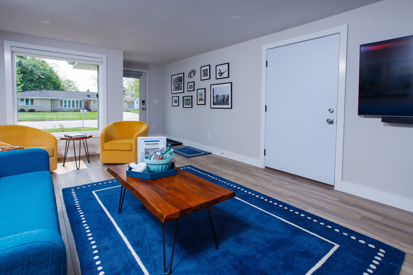 Welcome to Gold Getaway — a newly renovated, architect-designed duplex offering modern style, unbeatable views of Lambeau Field, and prime access to the exciting Titletown District. Perfect for short-term and mid-term stays, this 3-bedroom, 2.5-bath ranch home blends sophisticated design with game-day energy, creating the ultimate Green Bay retreat.