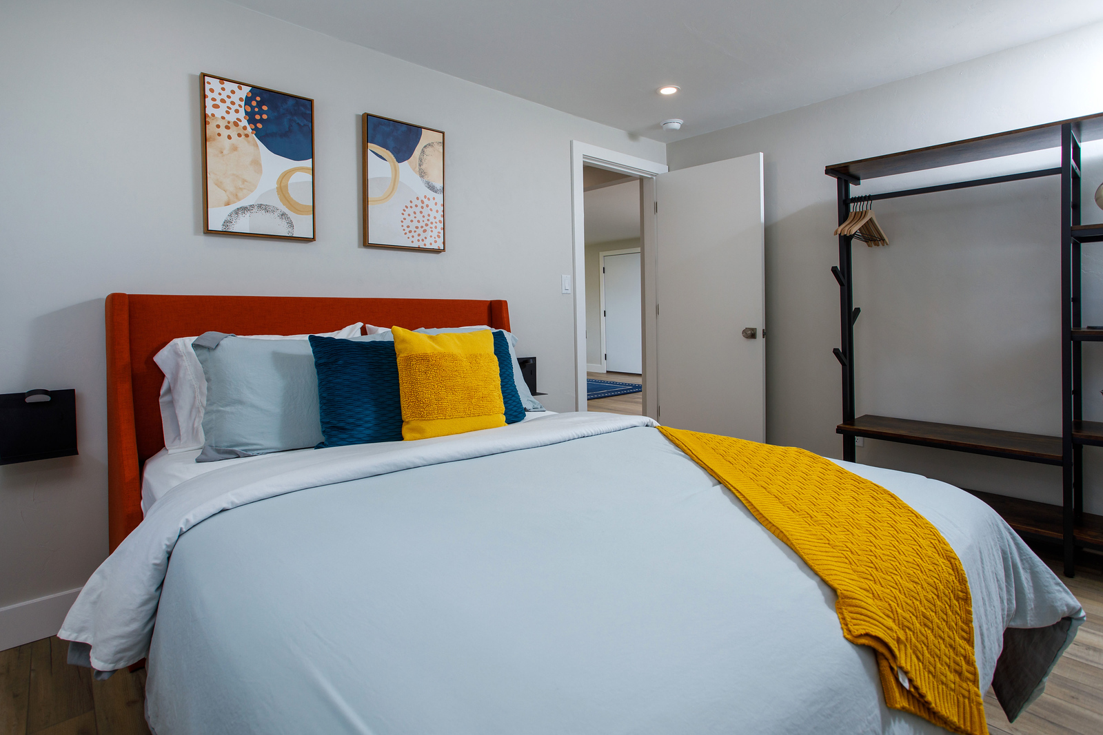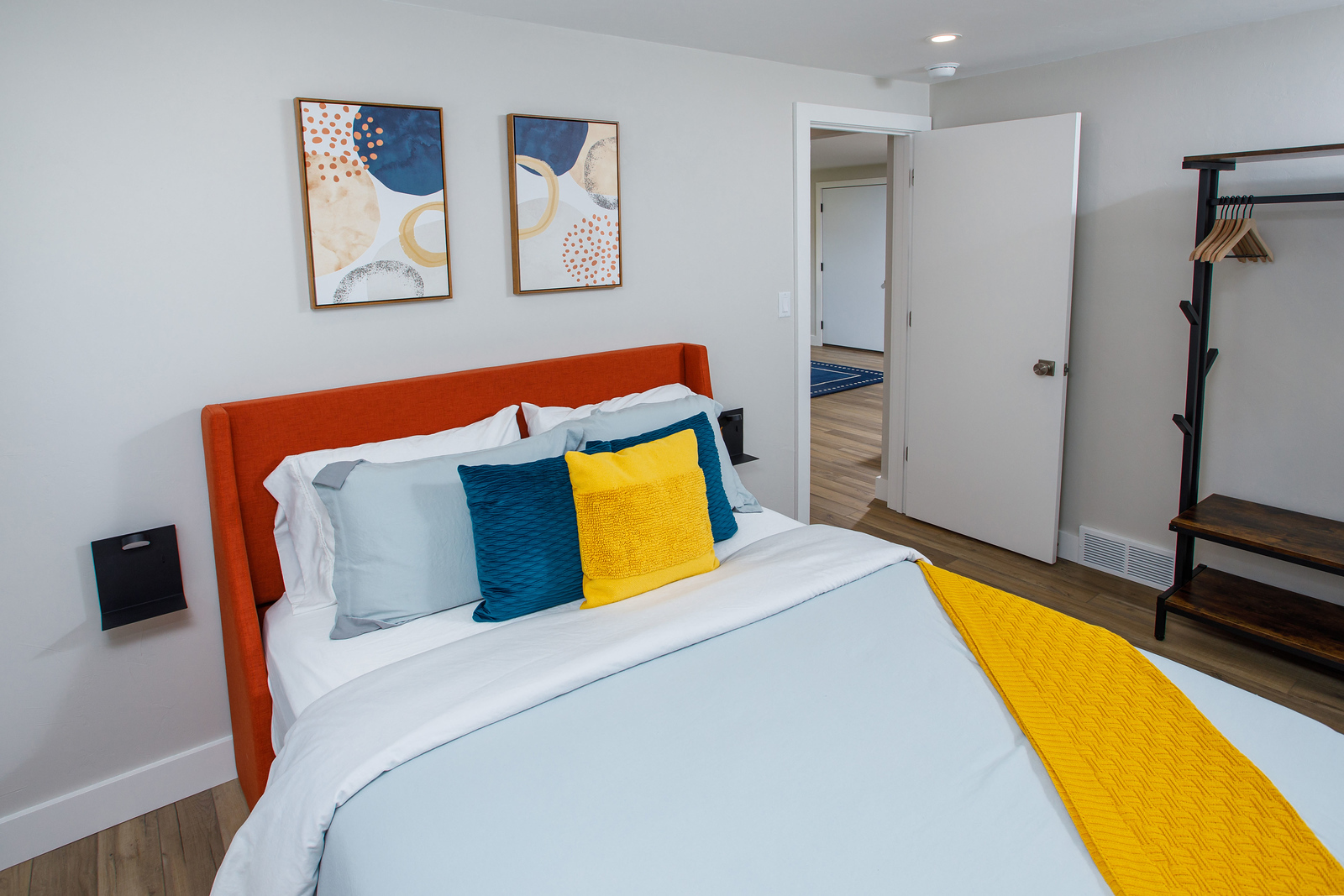 Bedroom 2 (main level): Queen size bed, room darkening shades, hangers, extra blankets and pillows