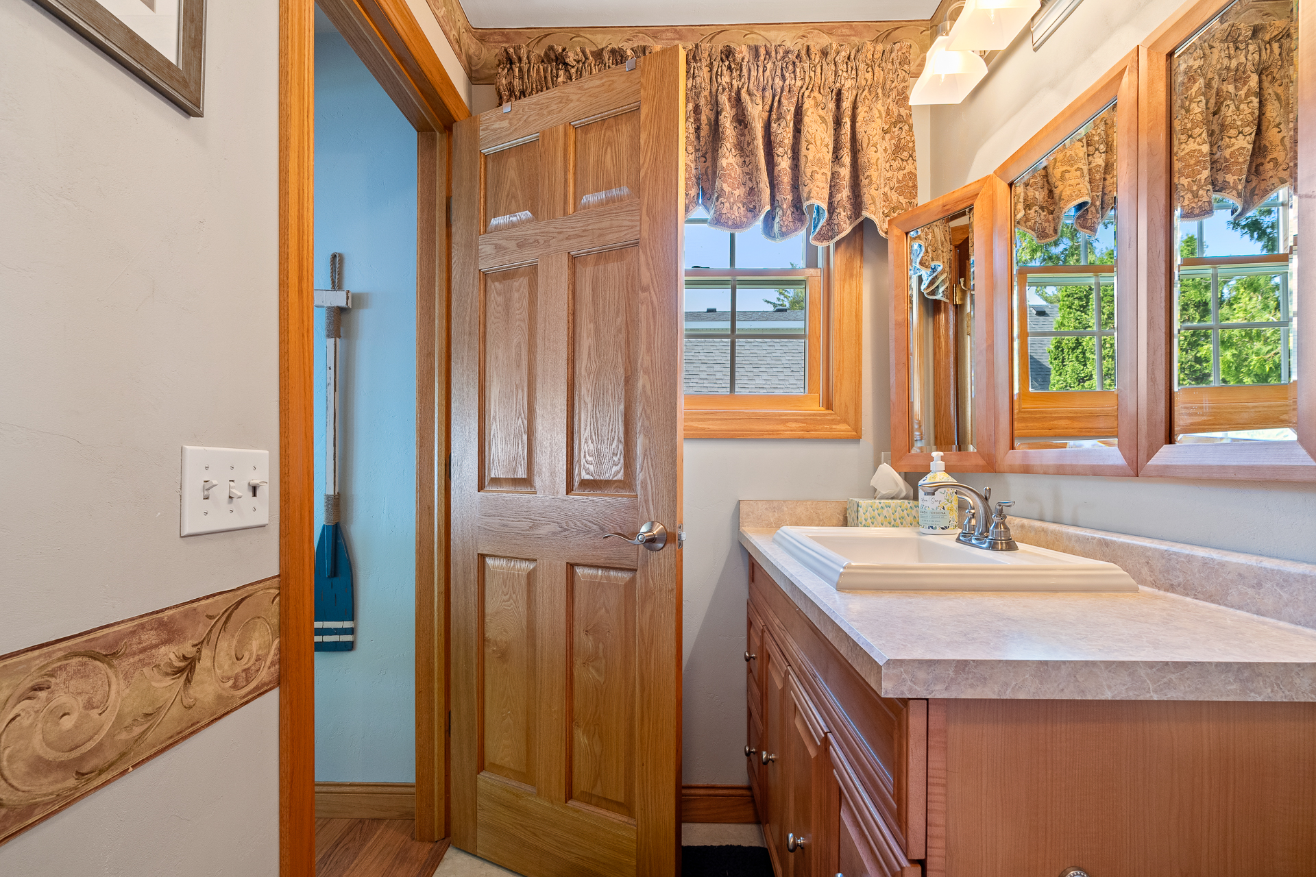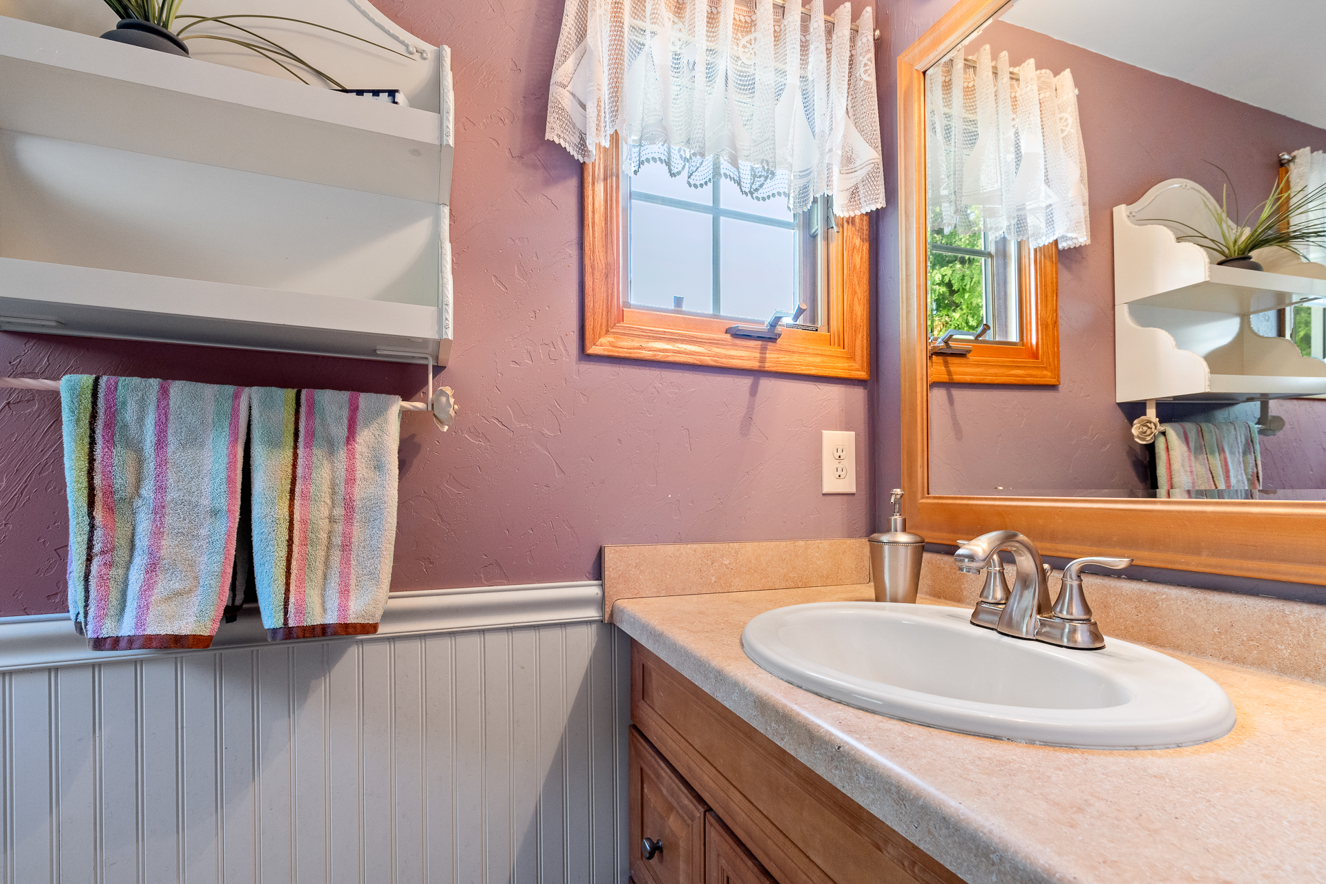 Bathroom 1 (main level): Full bathroom includes a walk in shower, toilet and sink