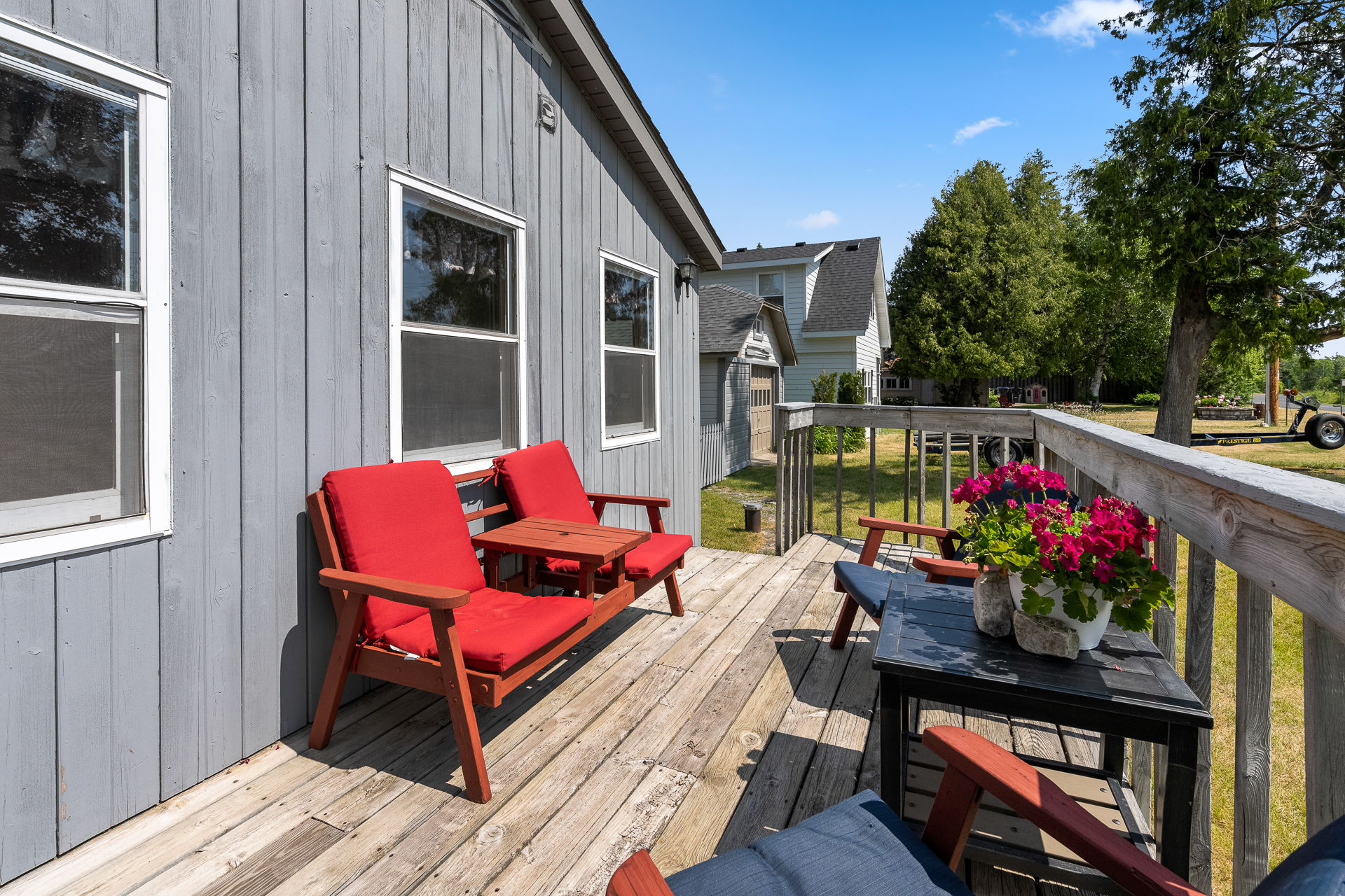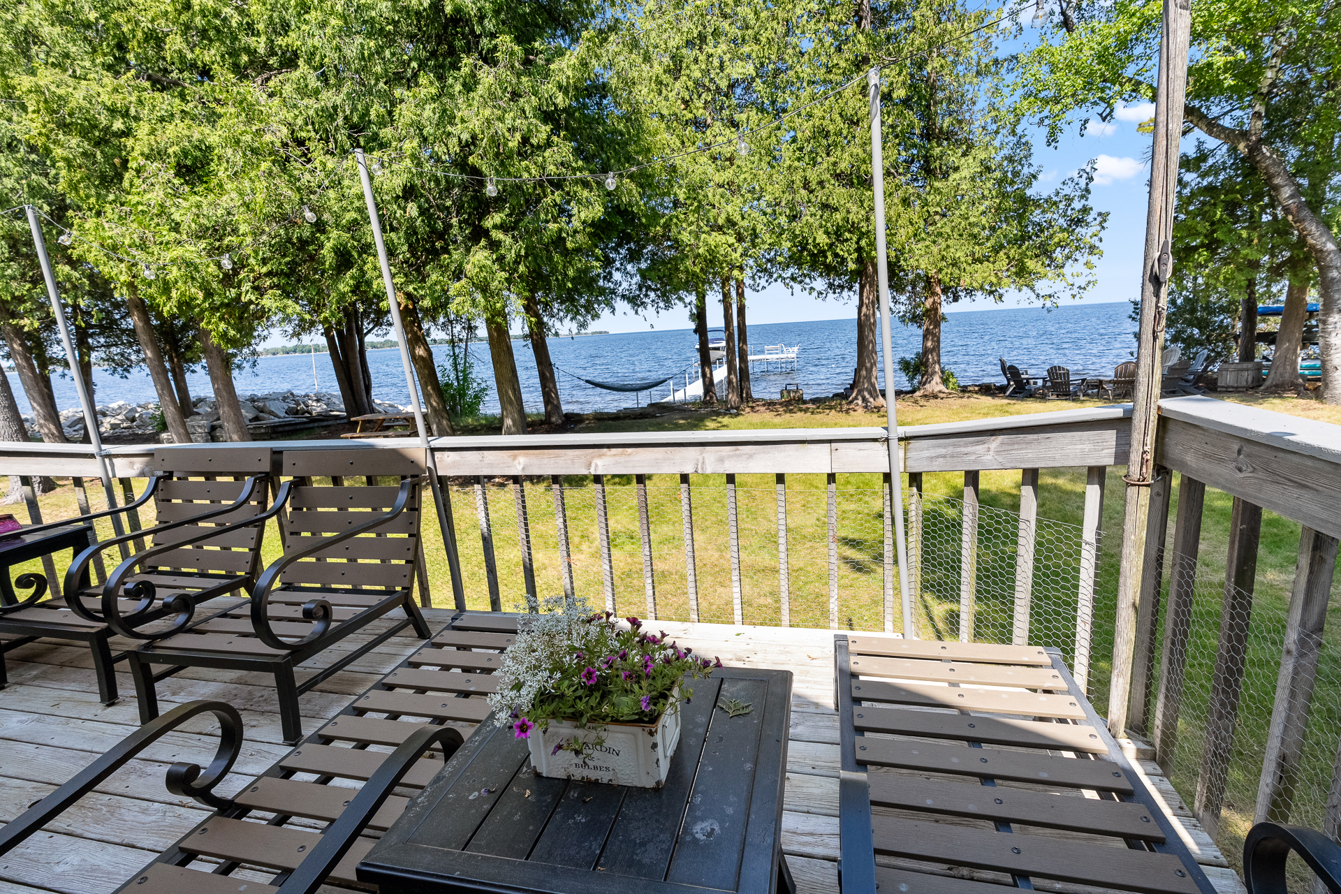 - 1 outdoor deck overlooks bay on lakeside plus a deck in front of the house