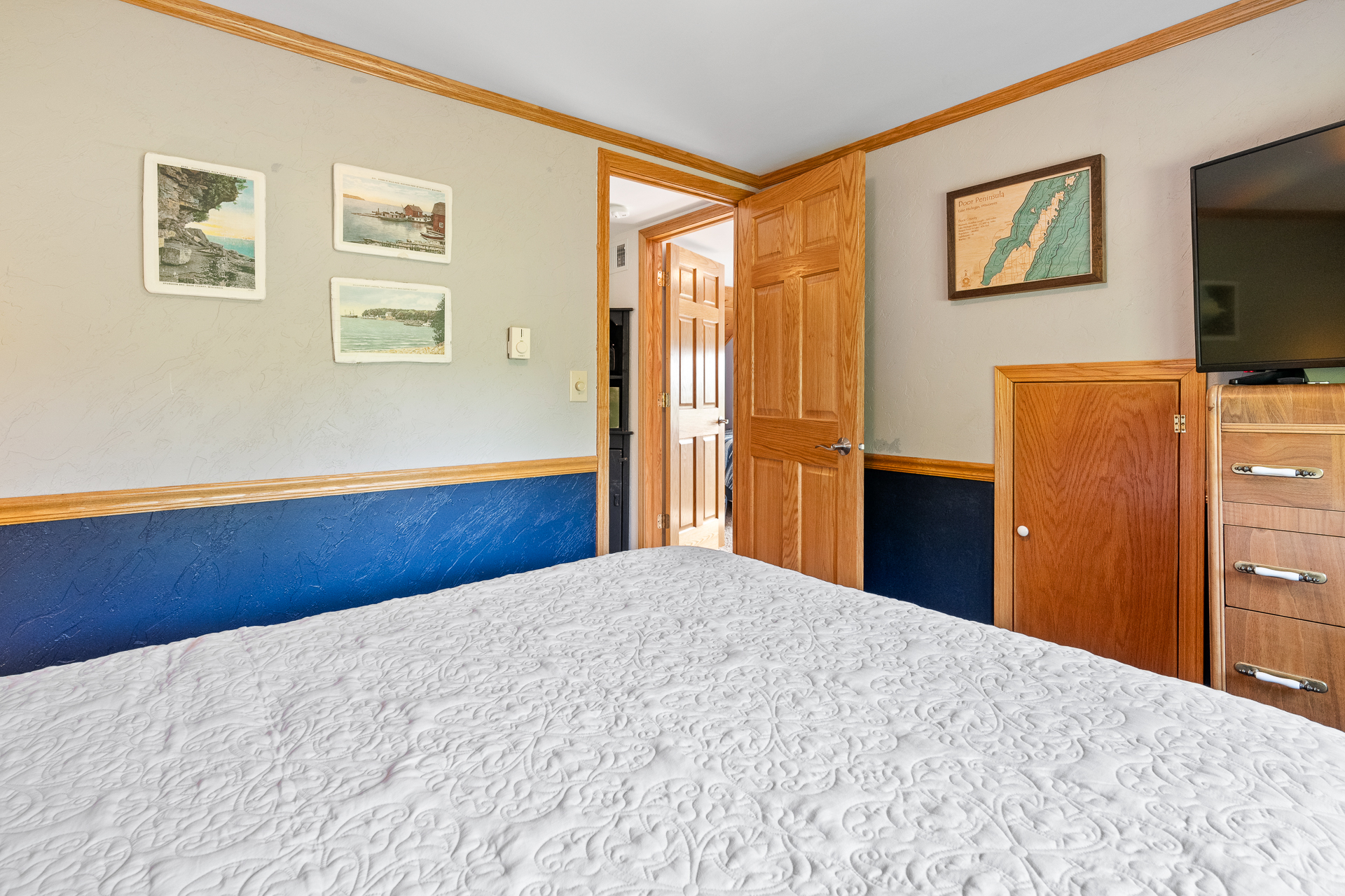 Whether you are enjoying the views from the pier, a cozy bonfire at night, water fun with the paddle boards, kayaks or floating water pad, or the views from the deck, you will enjoy the serenity of the bay. Added fun features include a ping pong table, outdoor speakers and bikes. Enjoy the private, quiet surroundings with vacant land across the street and only 3 houses from the end of the road. The cottage is only a 5 minute drive to Idlewild Golf Course, 10 minute drive to Haines Beach and a quick 12 minute drive to downtown Sturgeon Bay.