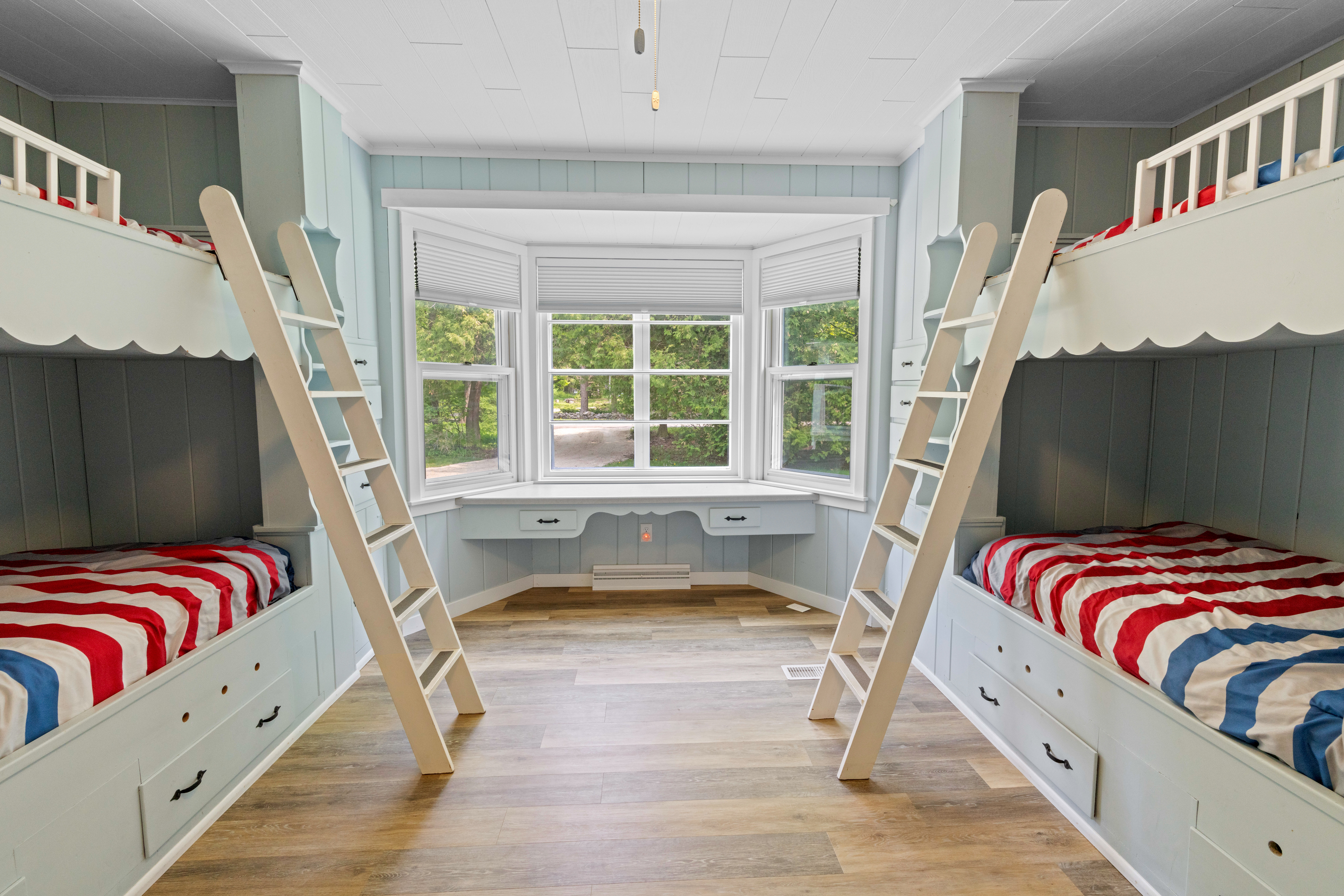 Bedroom 2 (main level): Four twin beds (2 bunks), ceiling fan