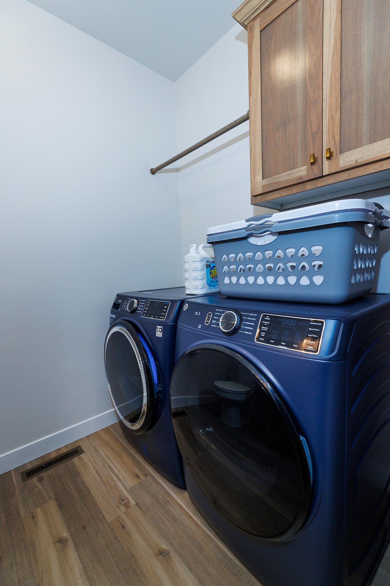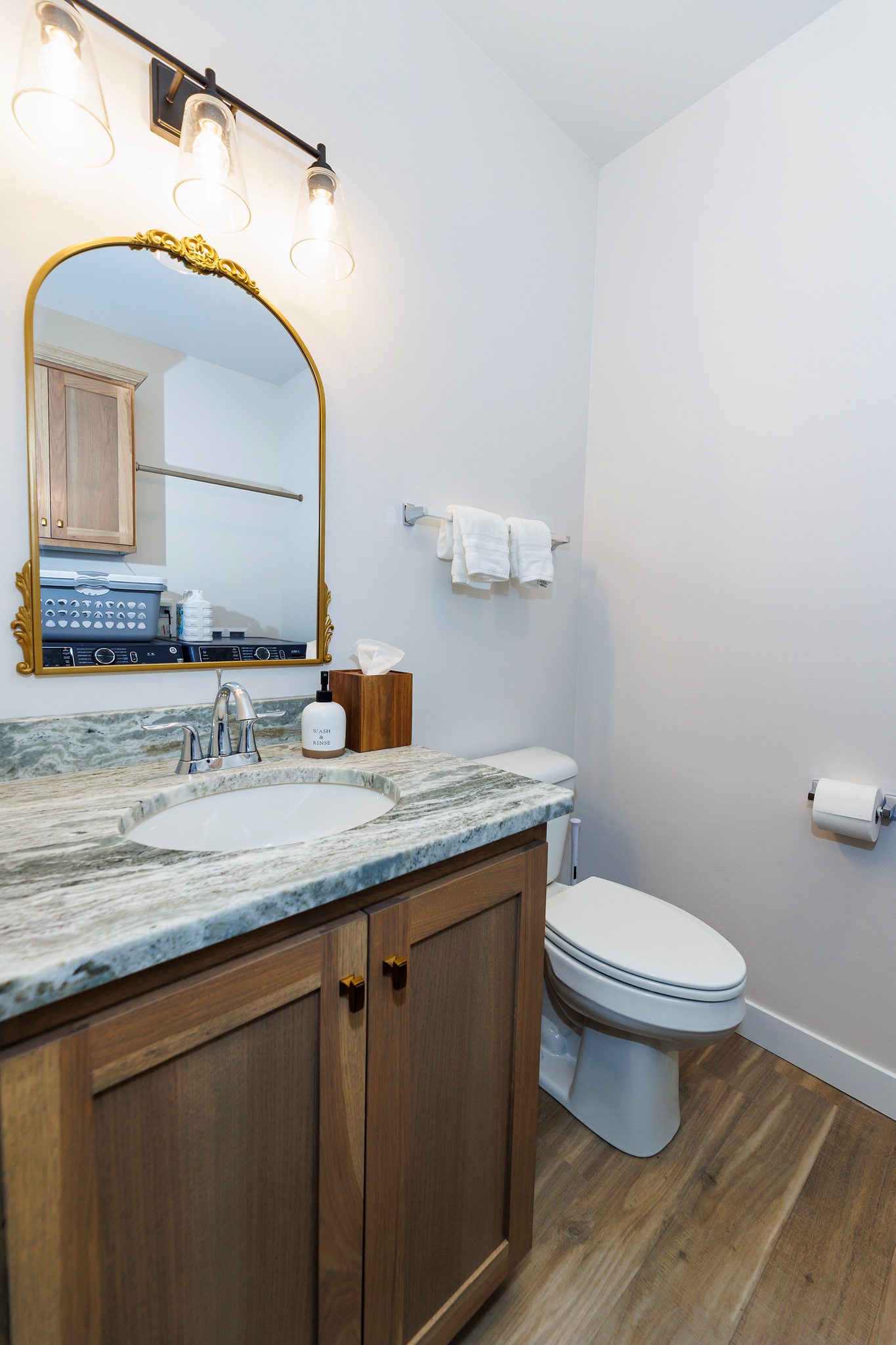 Bathroom 1 (main level): Half bathroom with sink and toilet, also includes washer/dryer