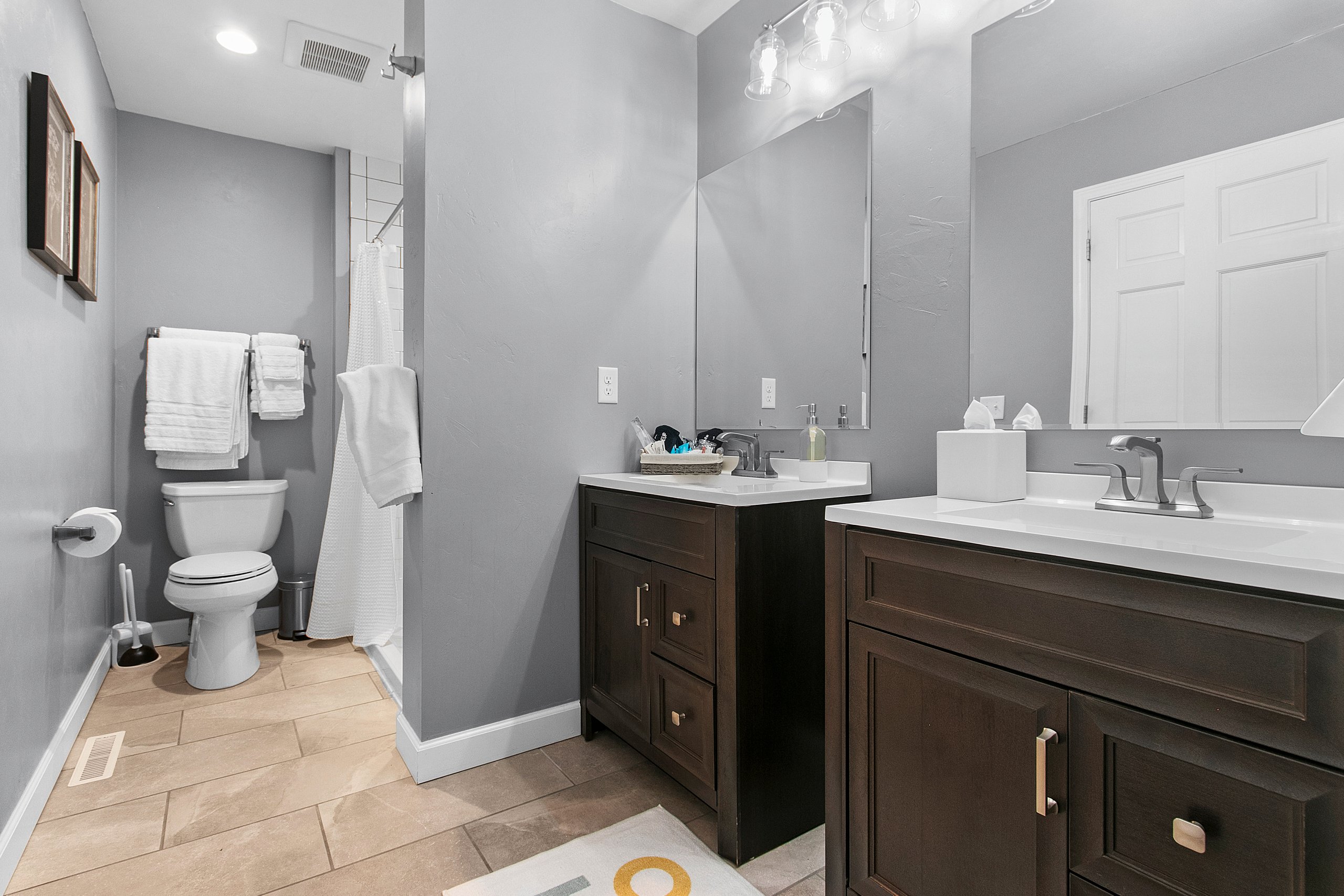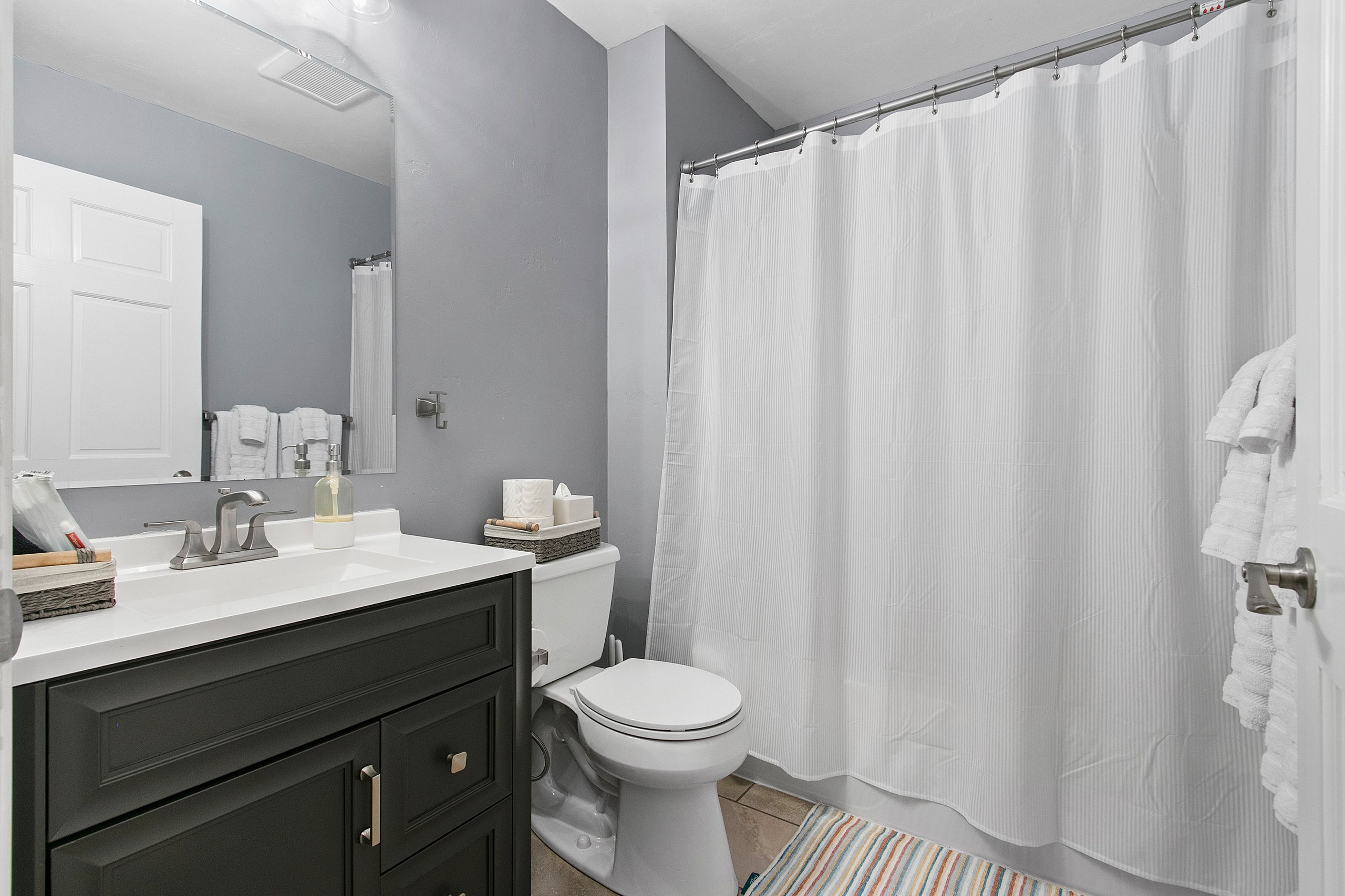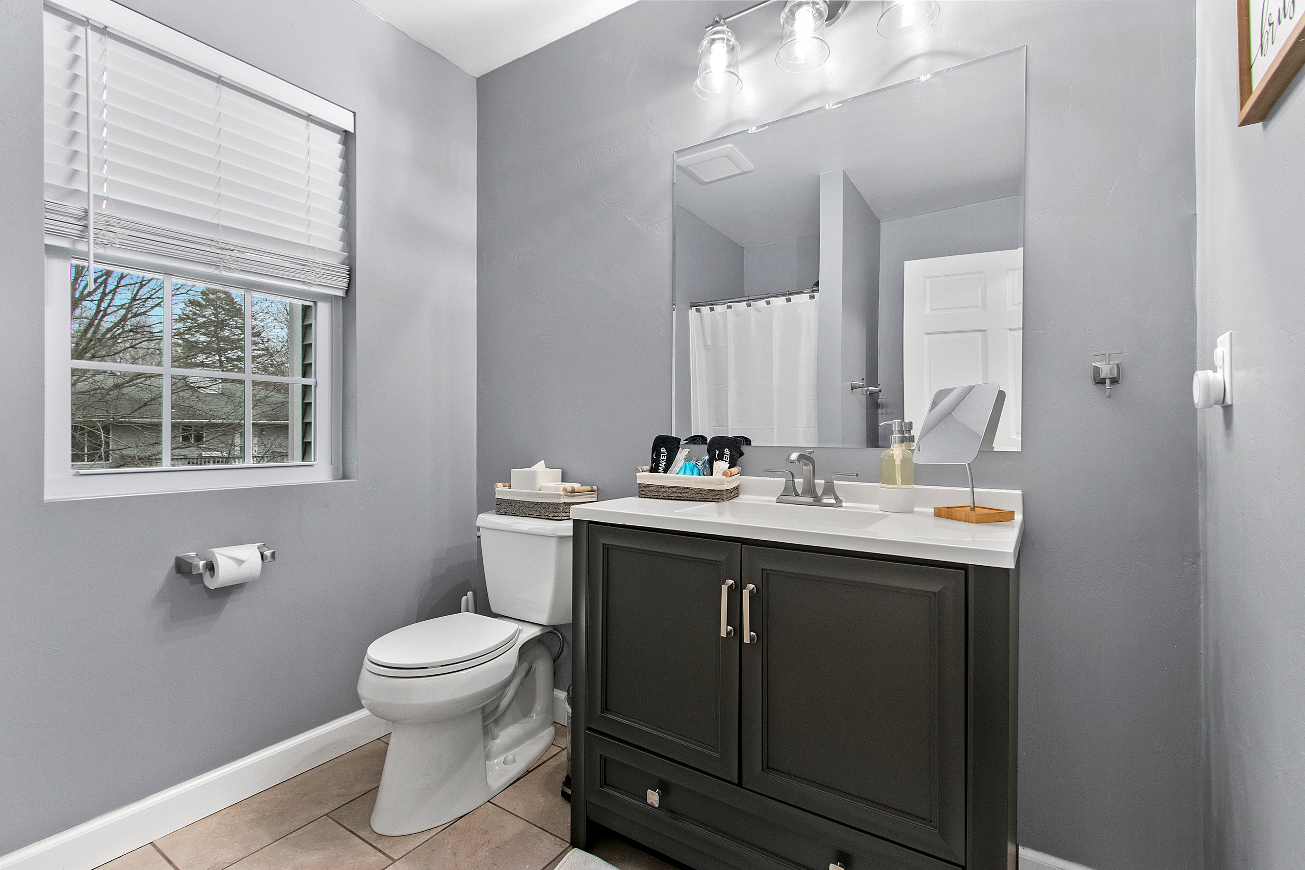 Bathroom 5 (lower level): Full bathroom with tub shower combo, hair dryer