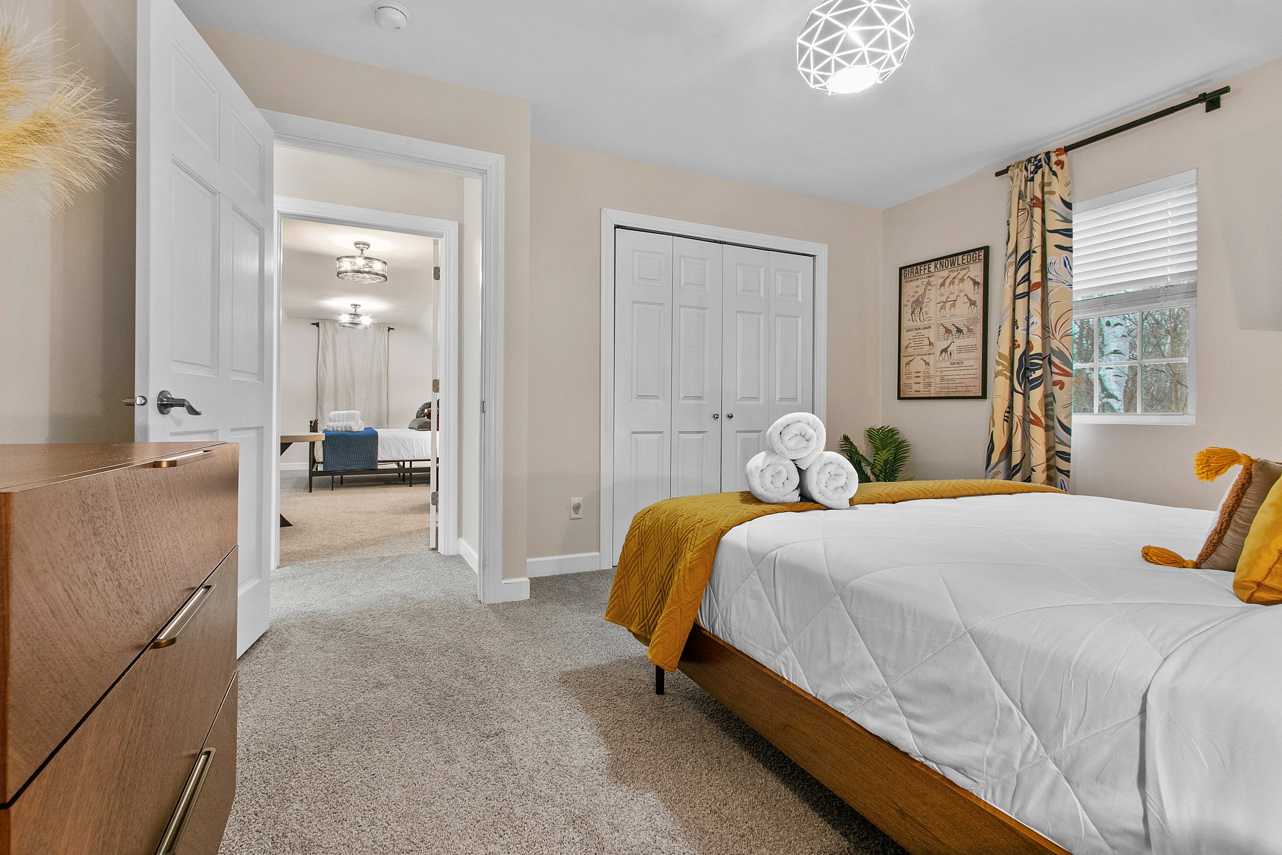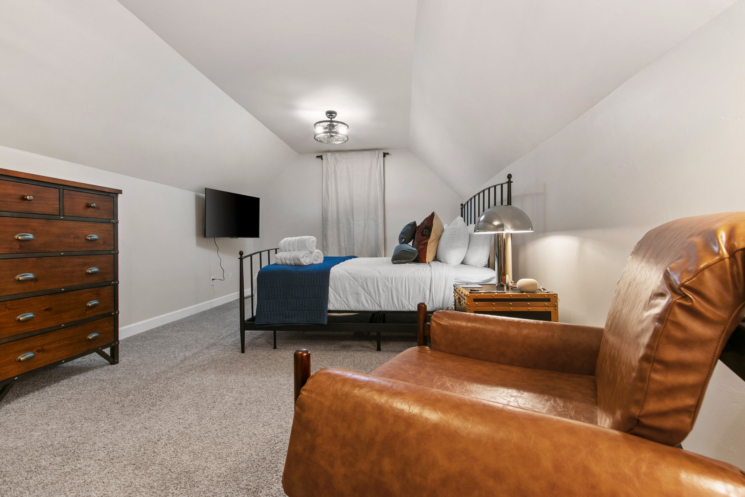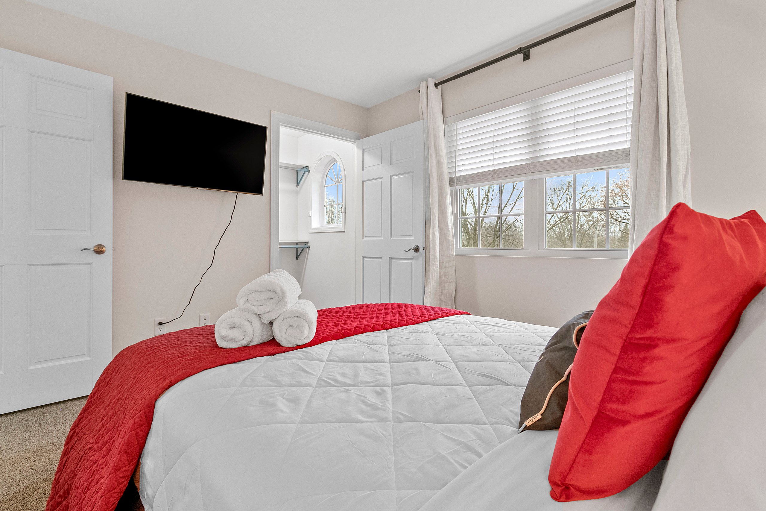 Bedroom 3 (second level): Queen size bed, TV, hangers, extra pillows and blankets