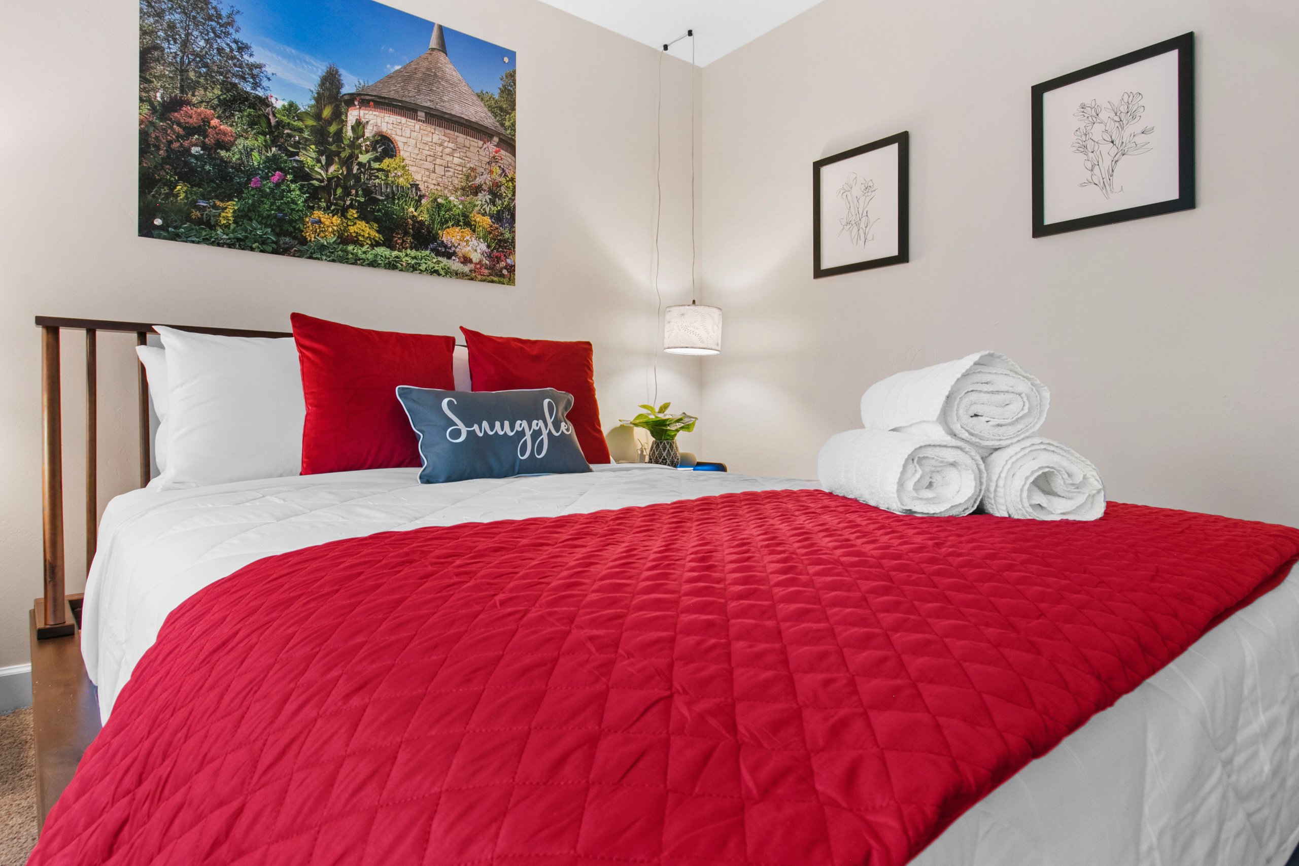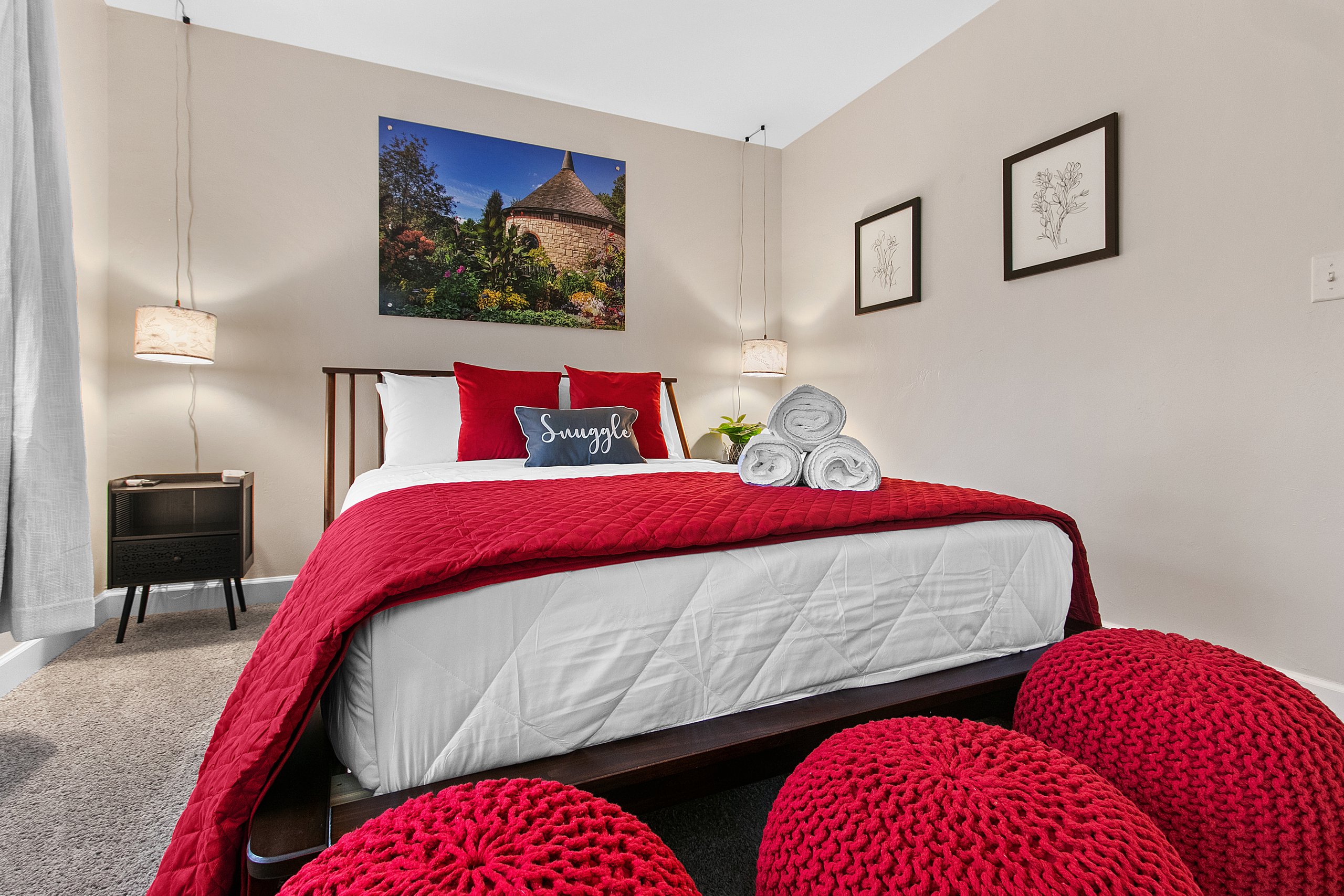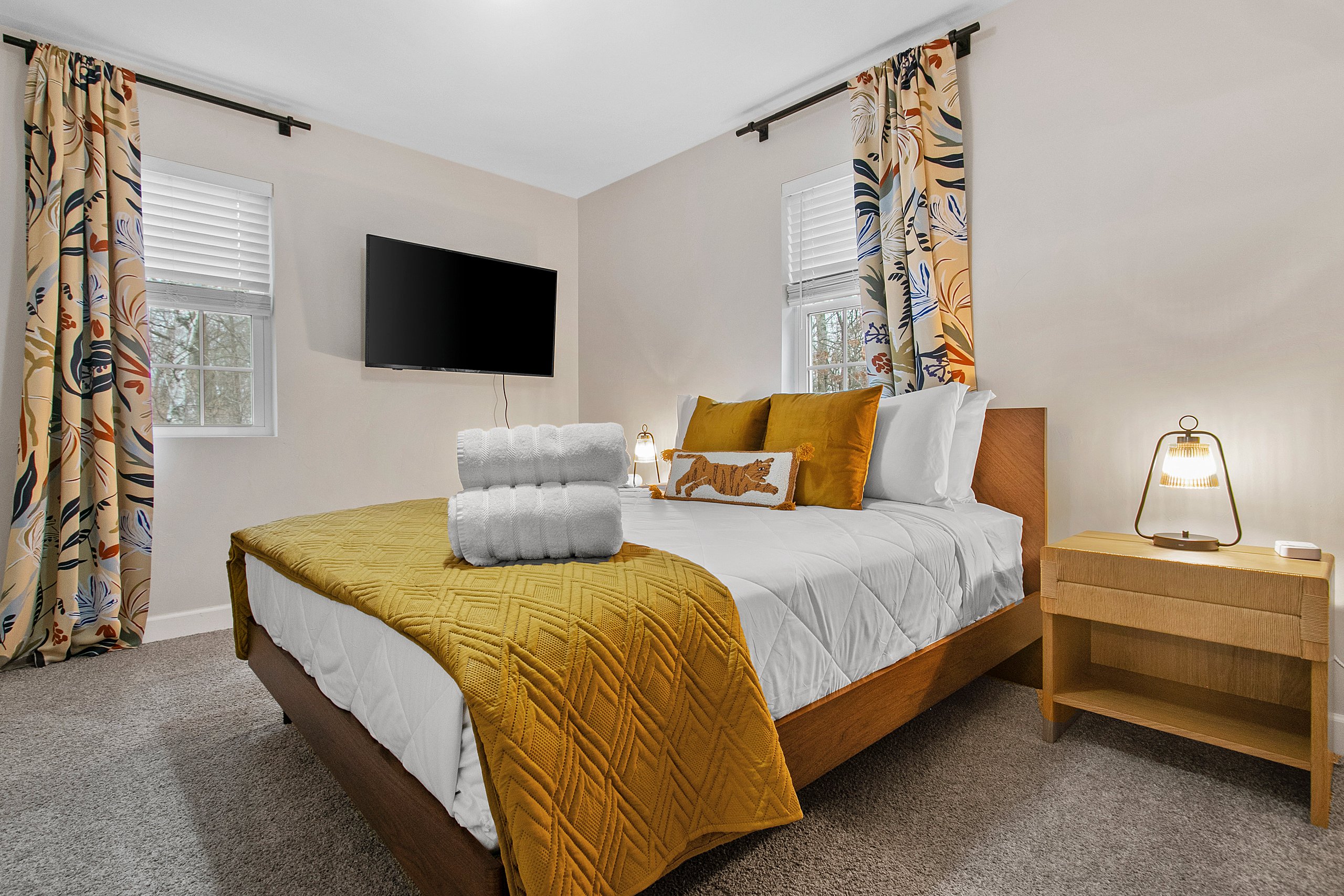 Bedroom 3 (second level): Queen size bed, TV, hangers, extra pillows and blankets