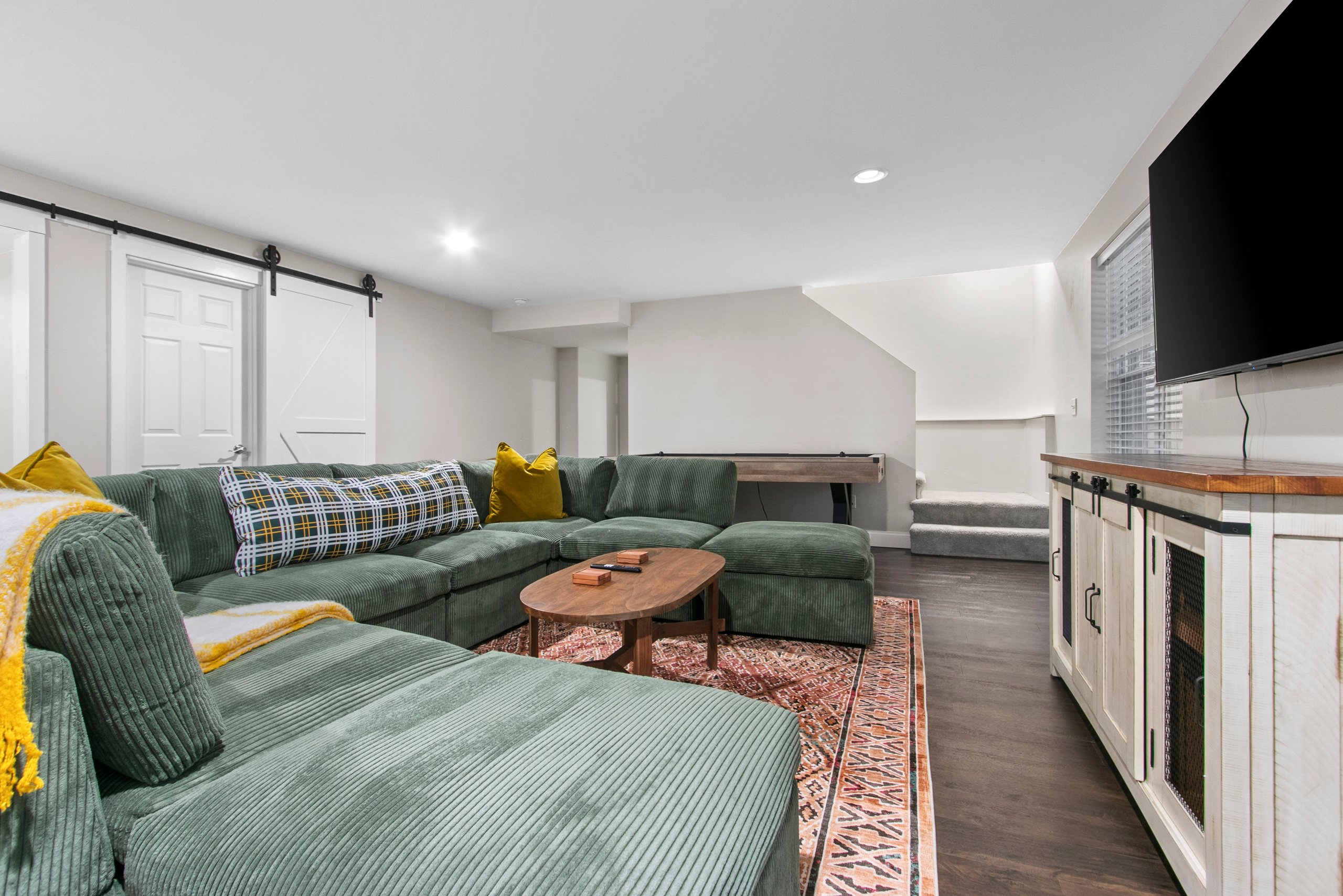 + 7 Smart TV's (Living room, basement, and all bedrooms) Guests may log into streaming services using their own accounts