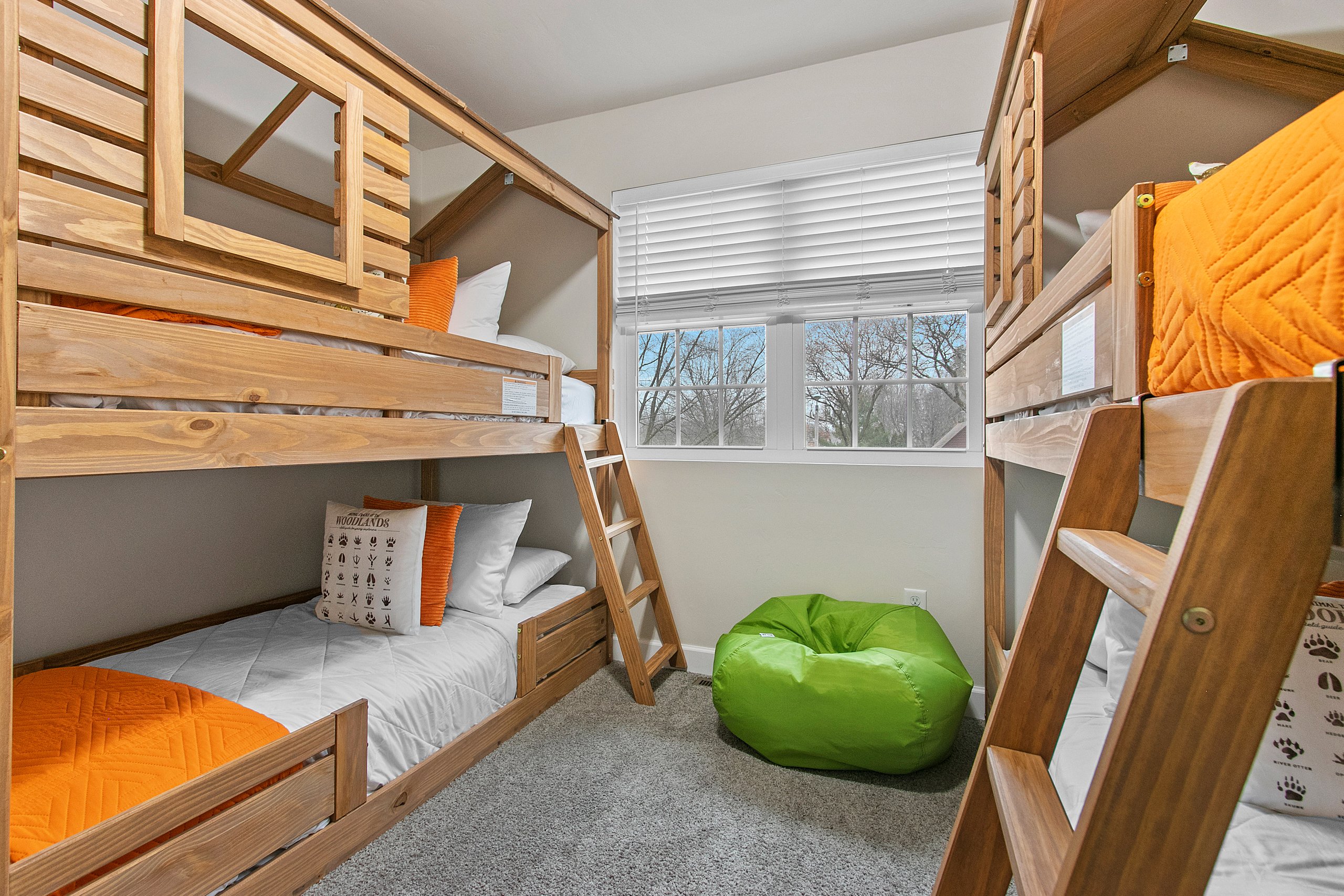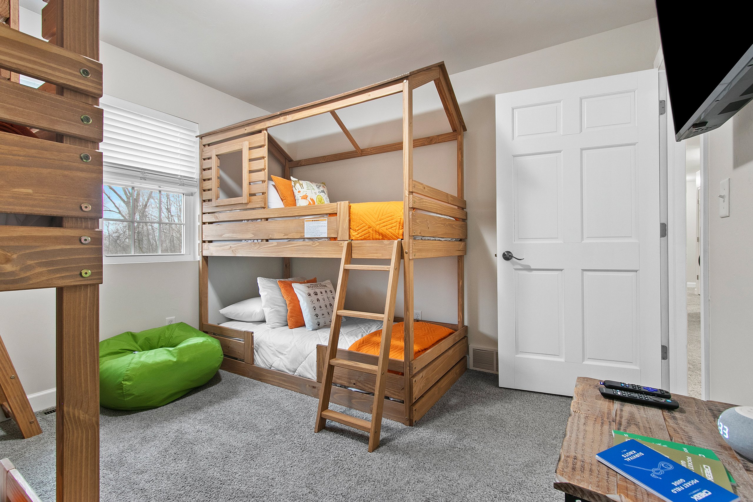 Bedroom 5 (second level): Two sets of twin bunk beds, TV, hangers, extra pillows and blankets