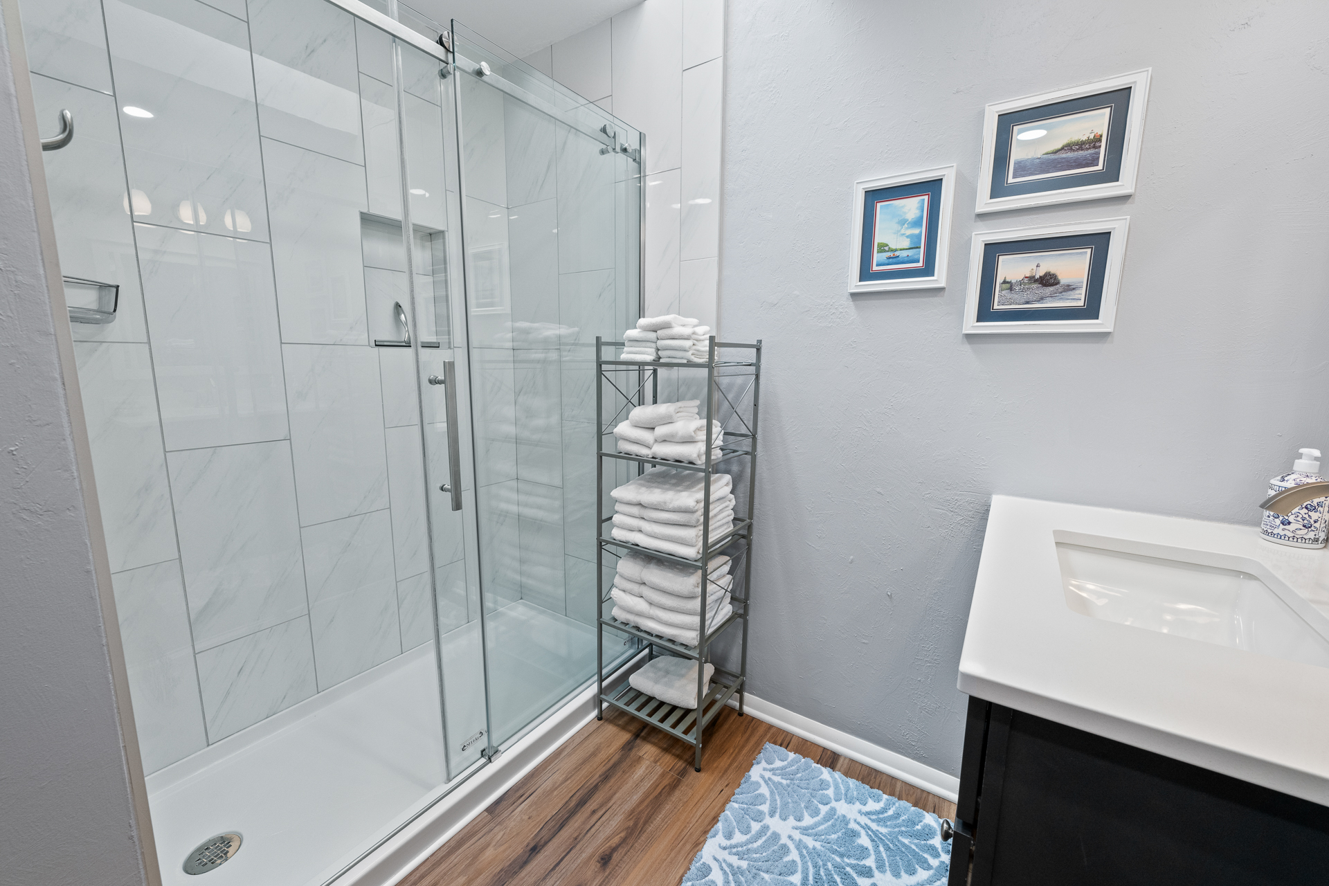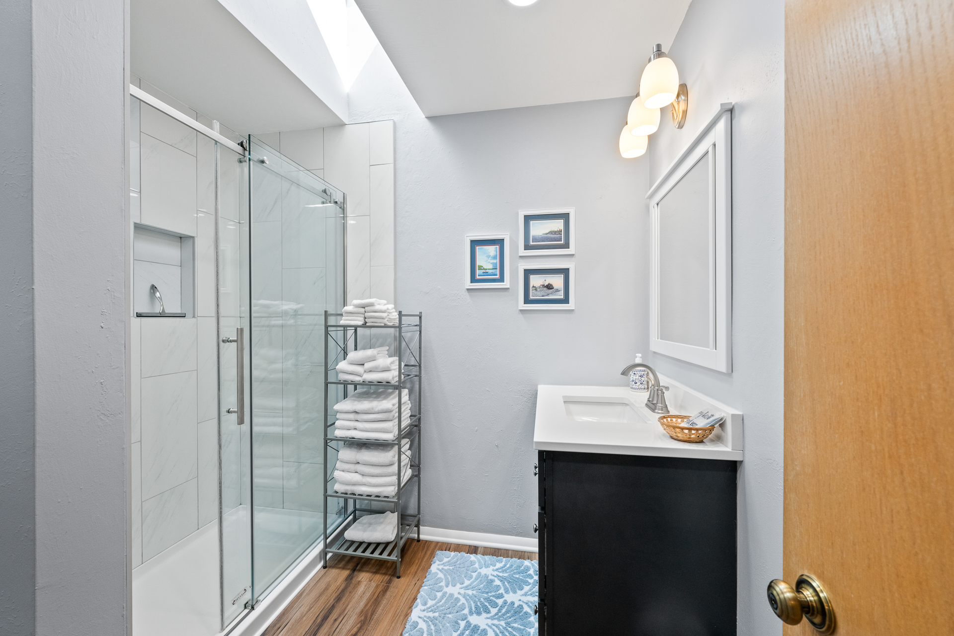 + Updated full bathroom with a walk-in shower, new fixtures, lighting, flooring and vanity!