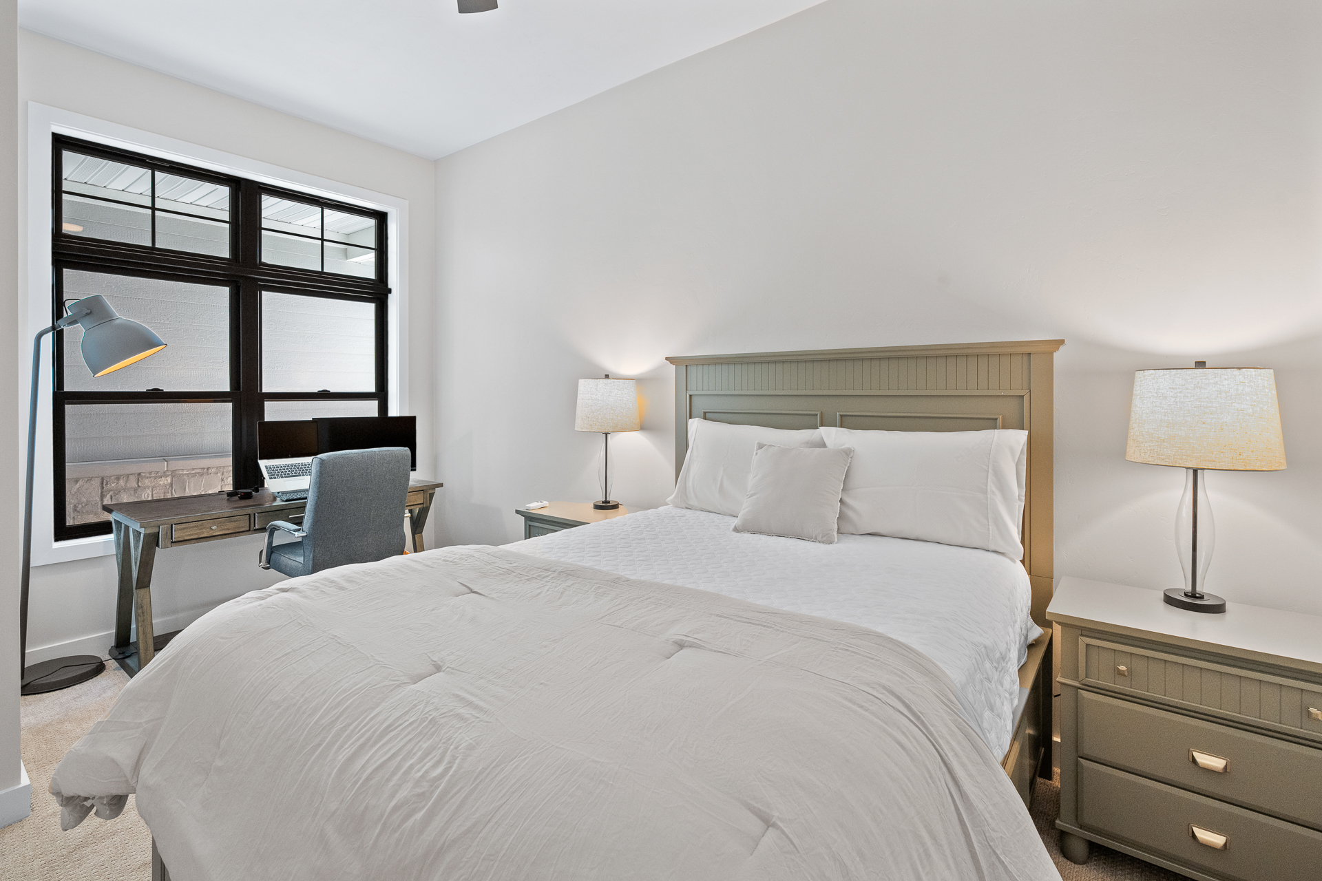 + Workspace (located within bedroom 2) includes a desk, chair, computer monitor, lamp and basic office supplies