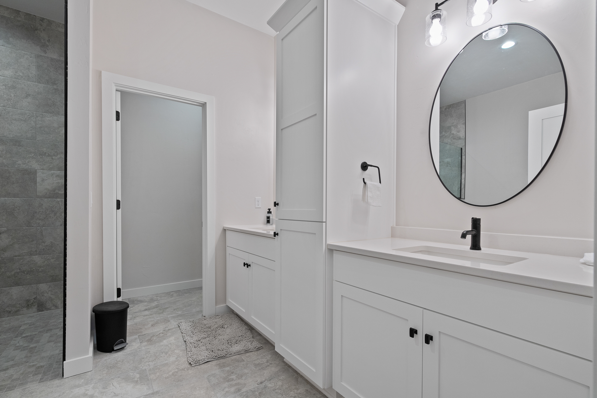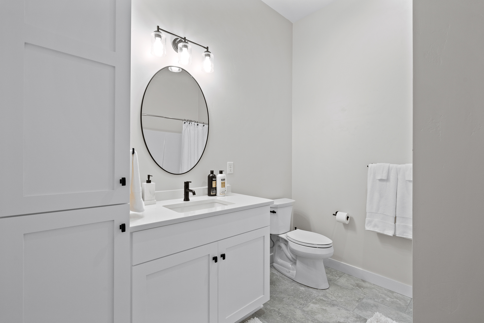 Bathroom 3 (main level): Full bathroom with a walk-in shower