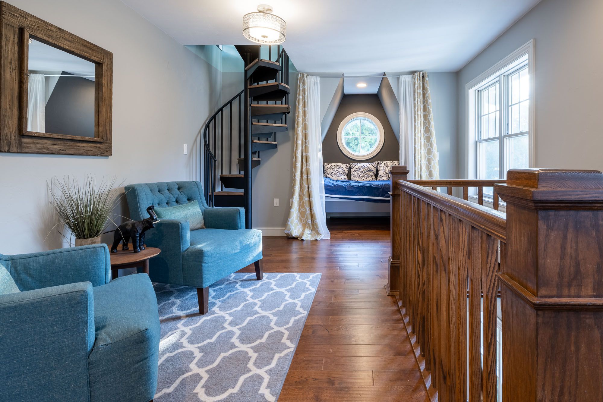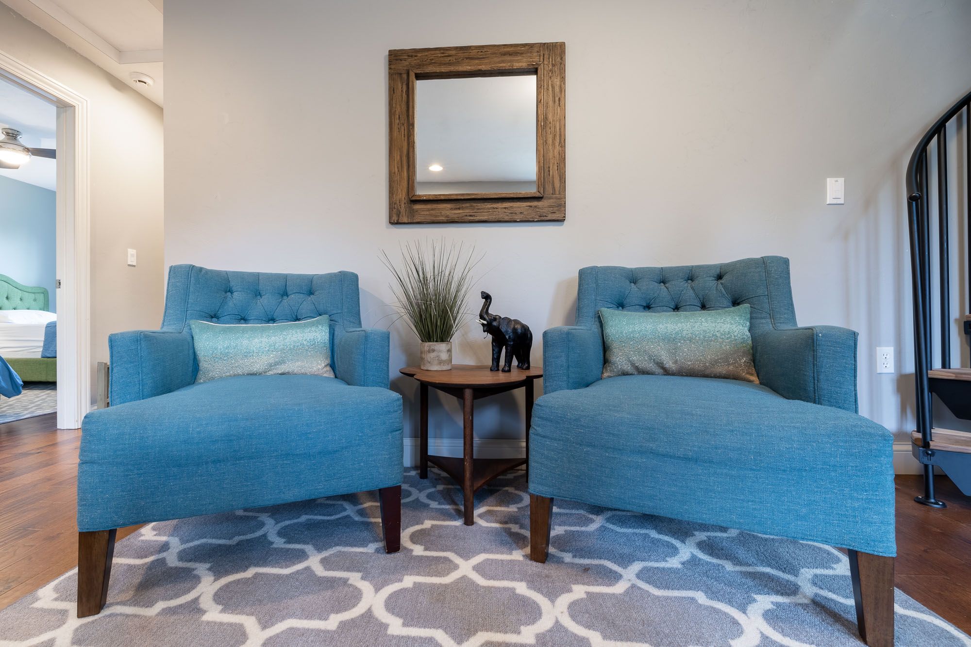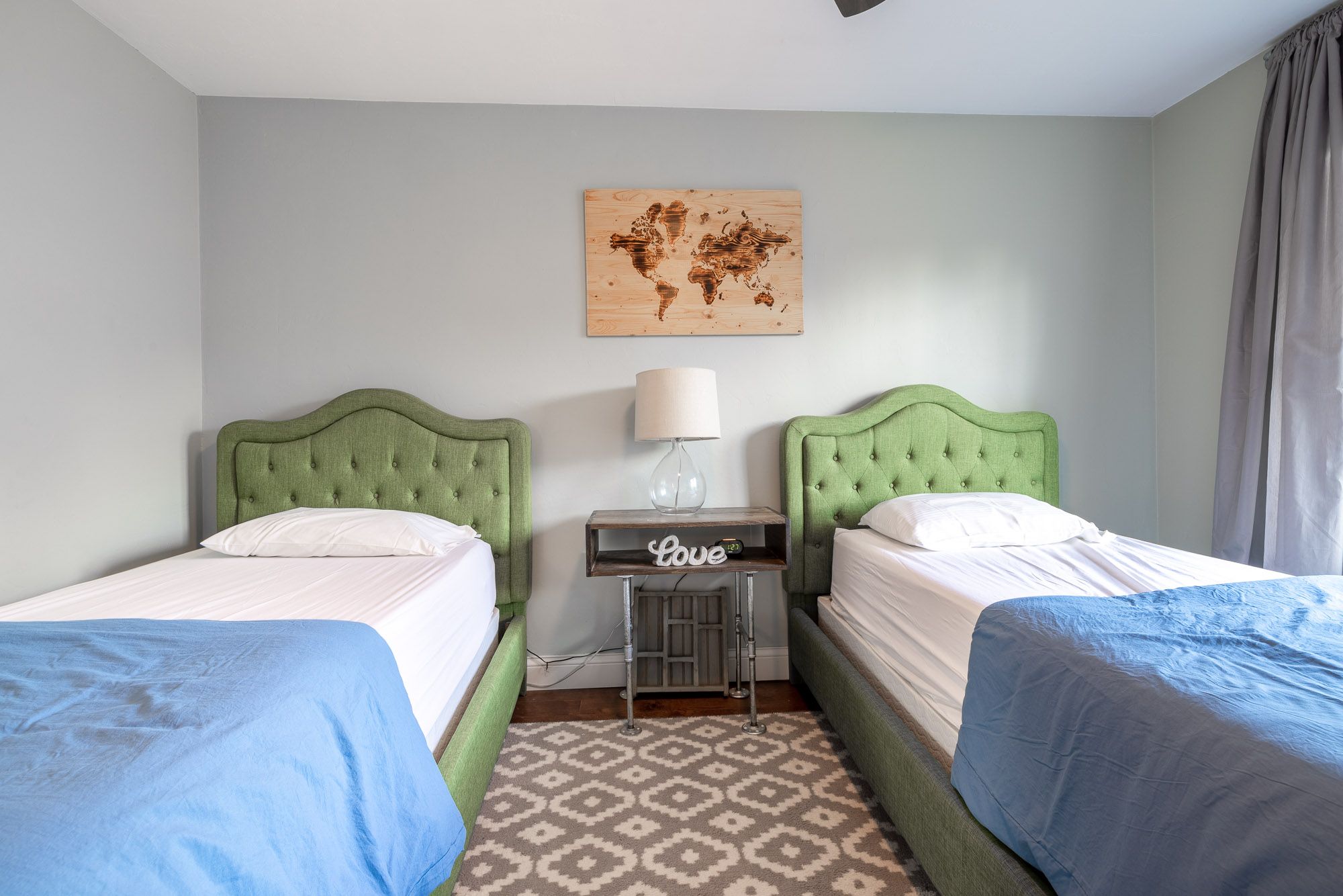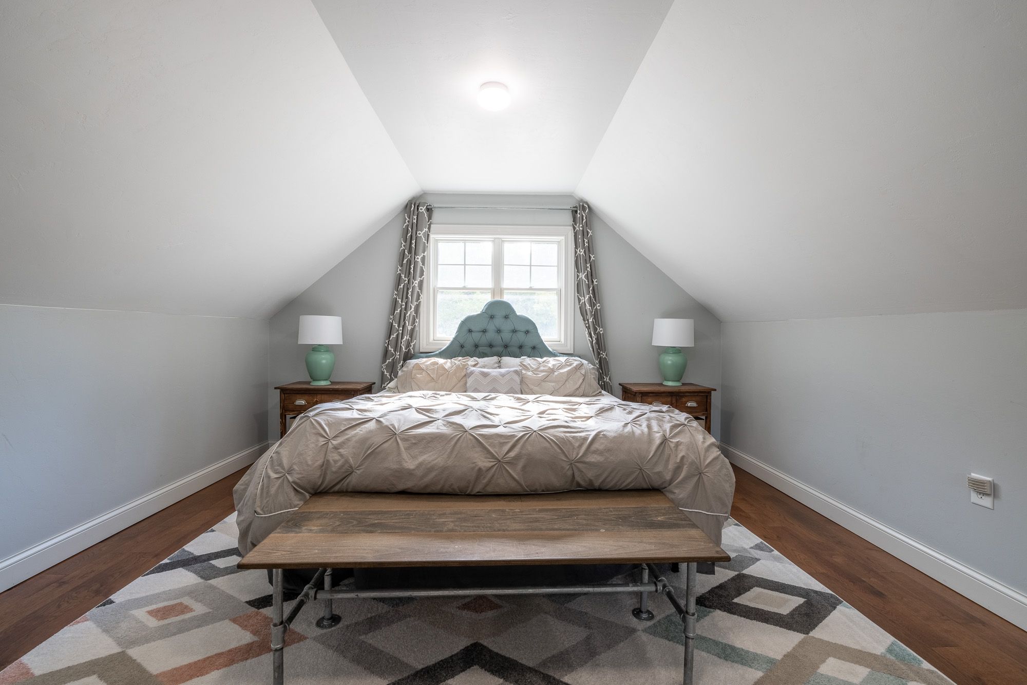 Bedroom 2 (second floor): Queen bed, ceiling fan and room darkening shades