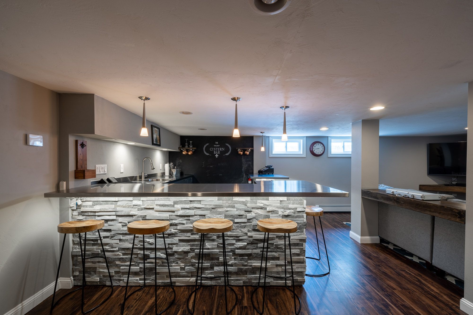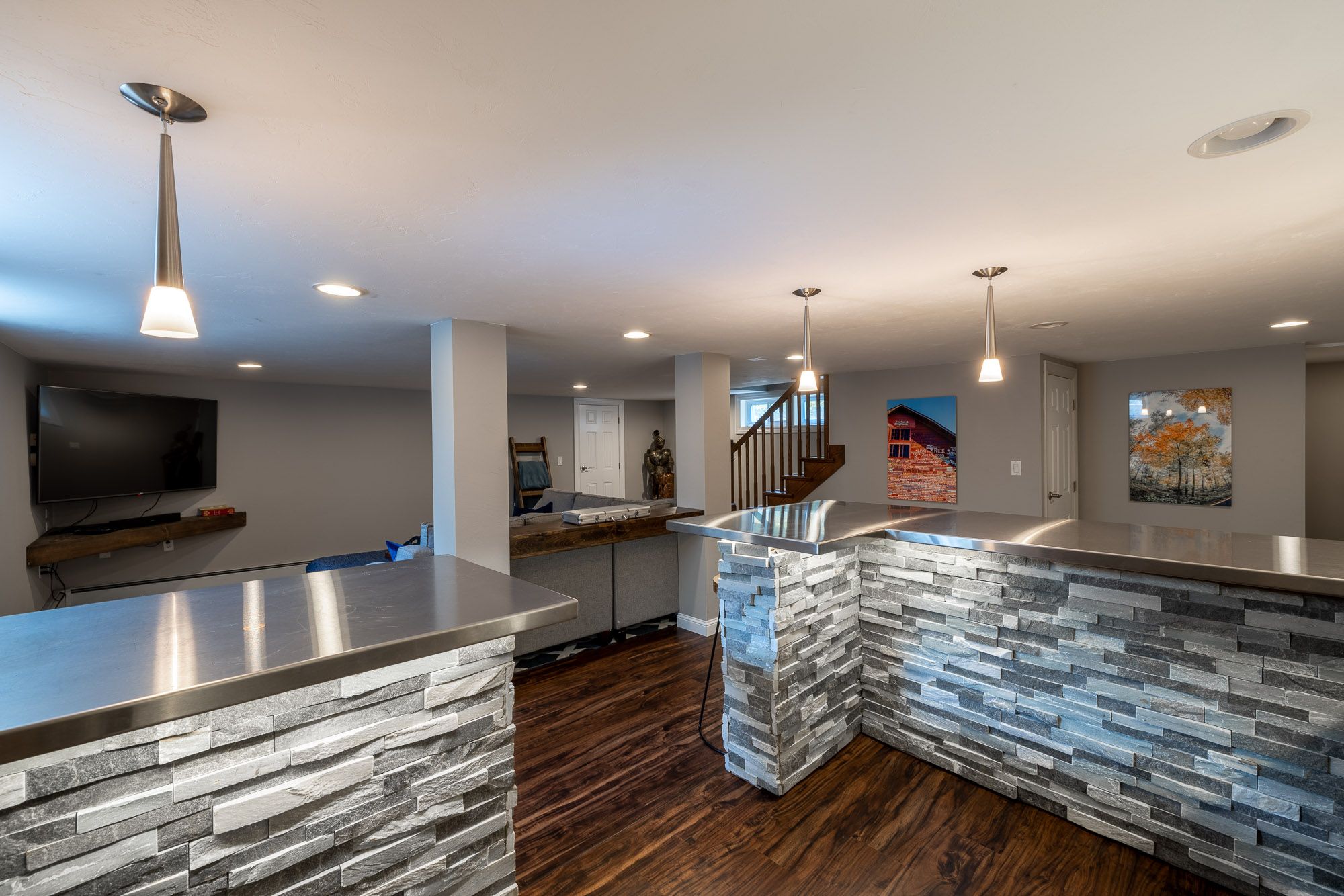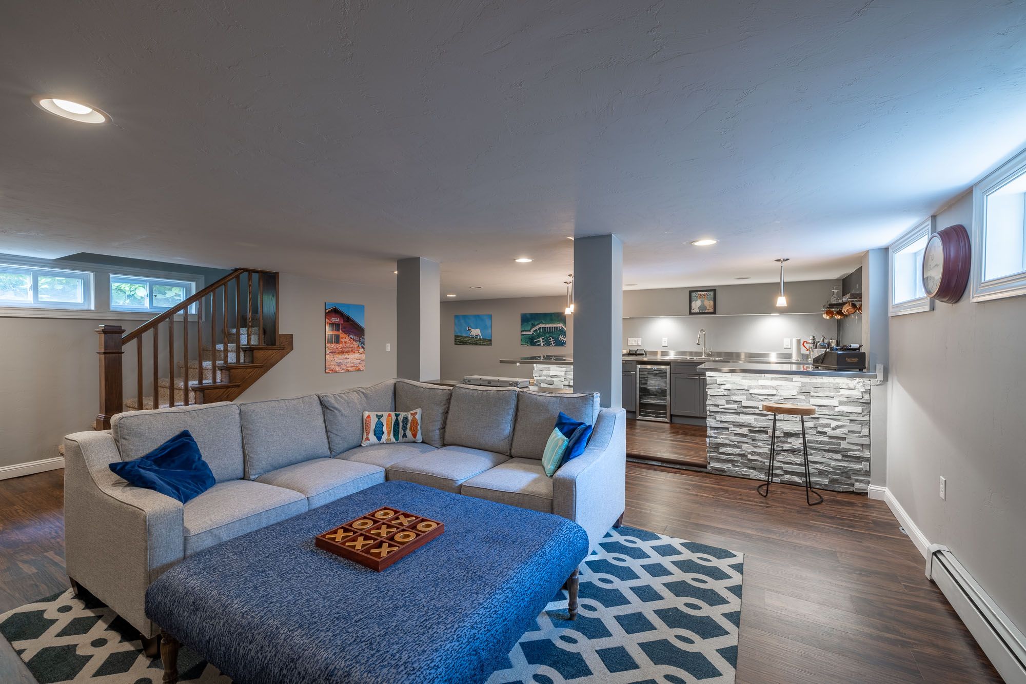 + Basement includes a second living space, large wet bar, mini-fridge and seating for 6