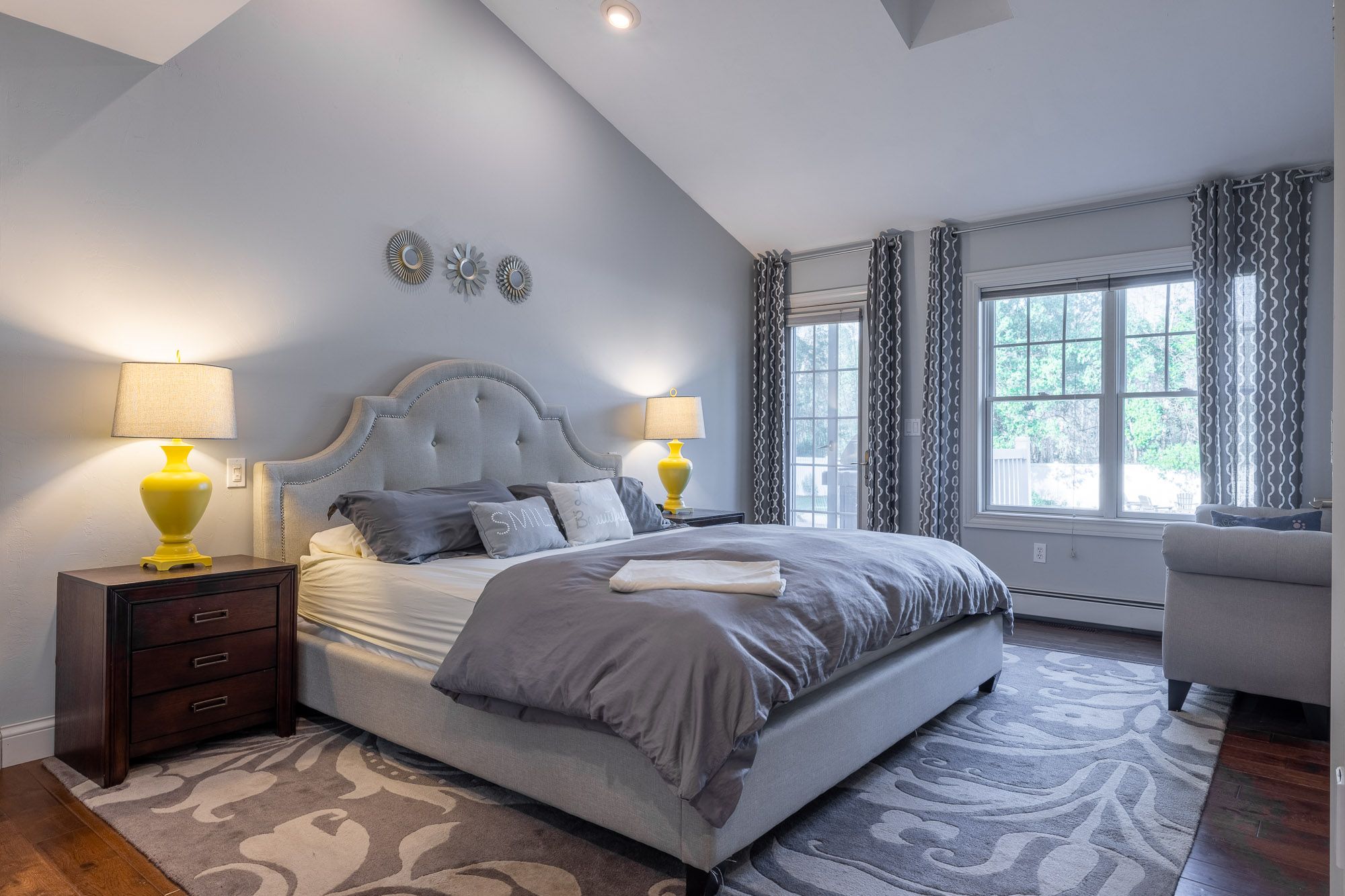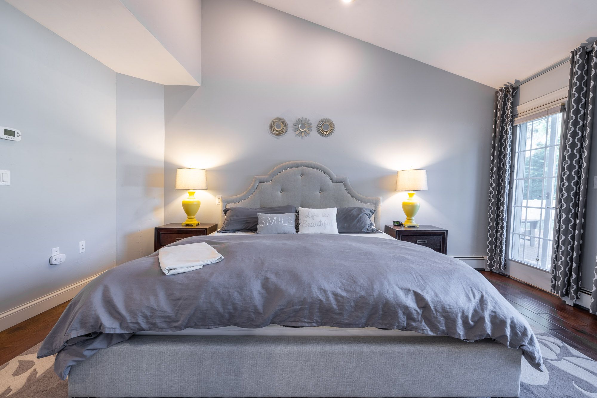 Bedroom 1 (main level): King bed and room darkening shades