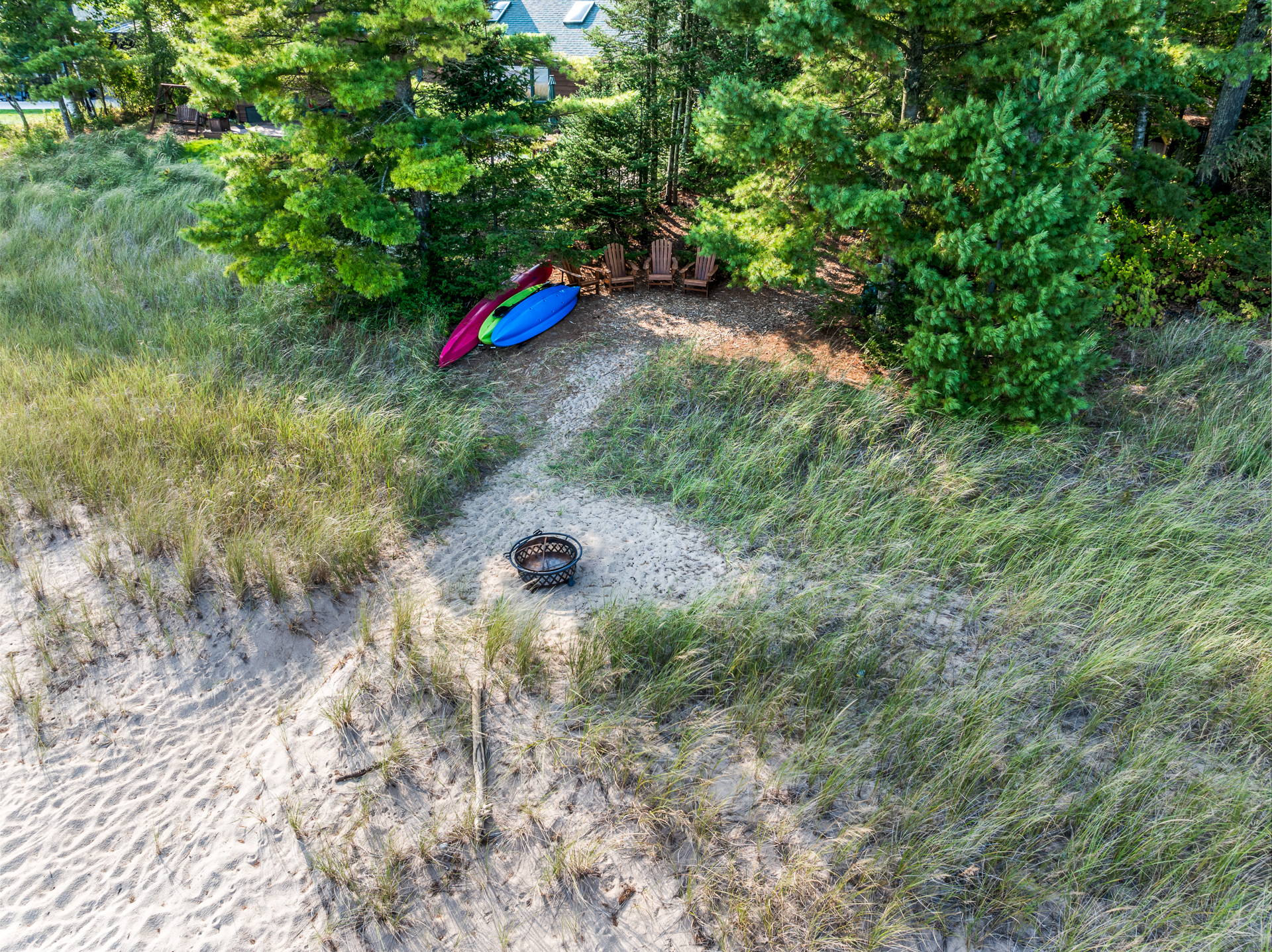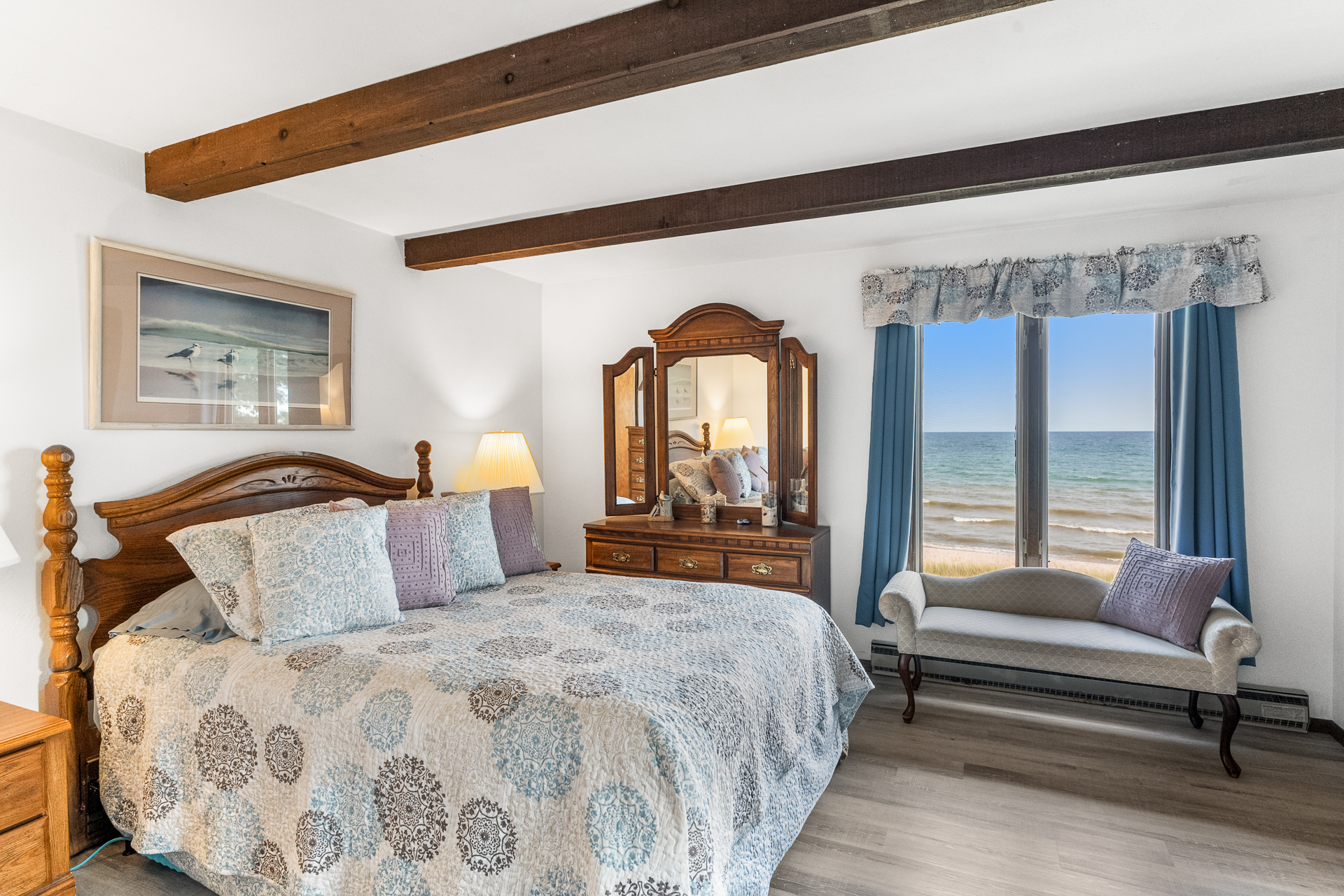 + Swimming Conditions: 200 feet of sand beach, water temps are cool: 50-60 degrees. Beach stretches for miles offering a great opportunity to walk the beach to enjoy nature, watch the sunrise, or try fishing.