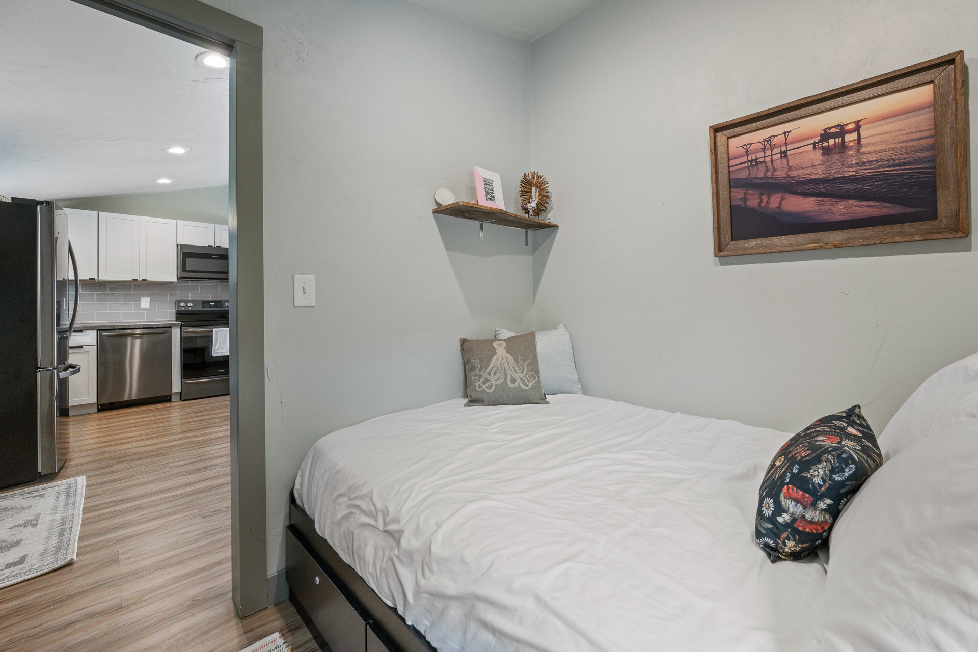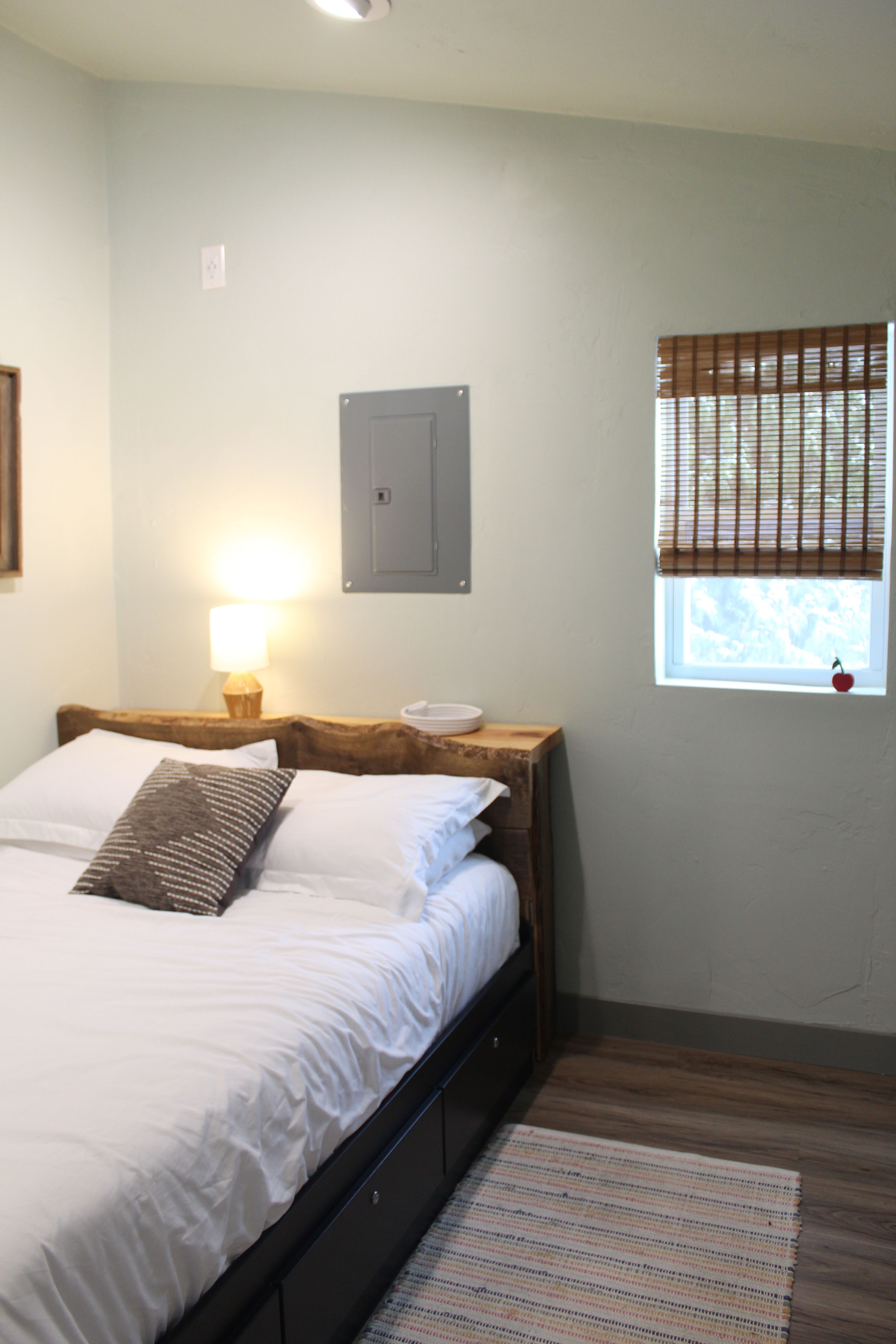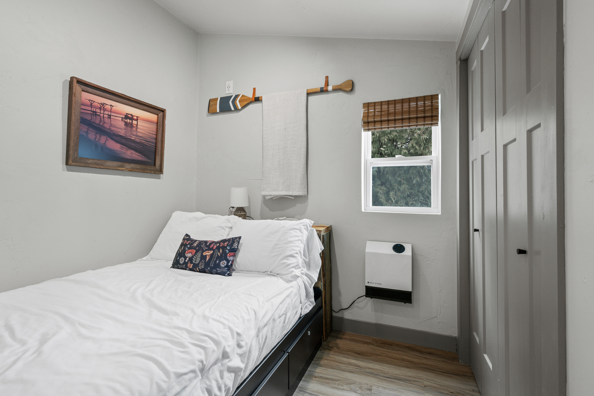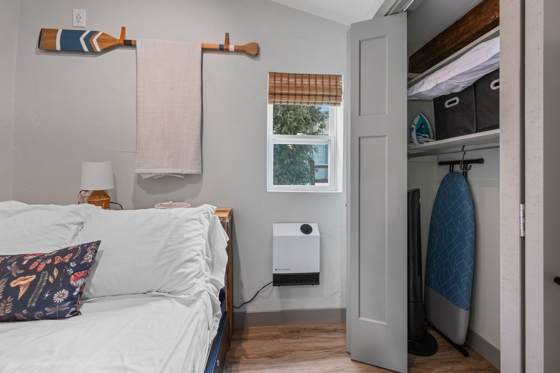 Bedroom 2: Full size bed, hangers, extra pillows and blankets
