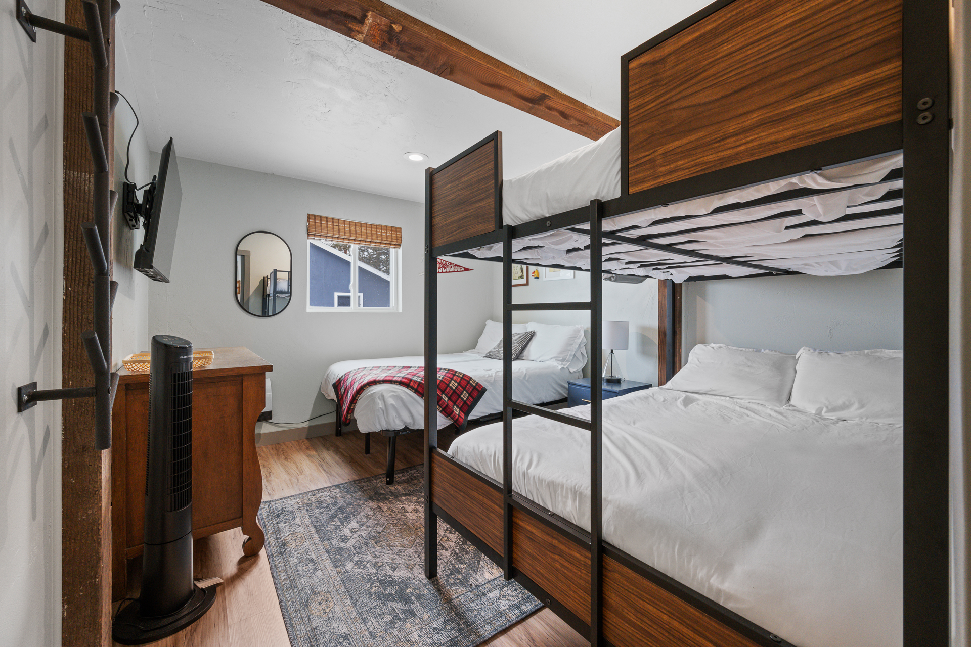 Bedroom 1: Full size bed and bunk bed (2 full size beds), TV, extra pillows and blankets