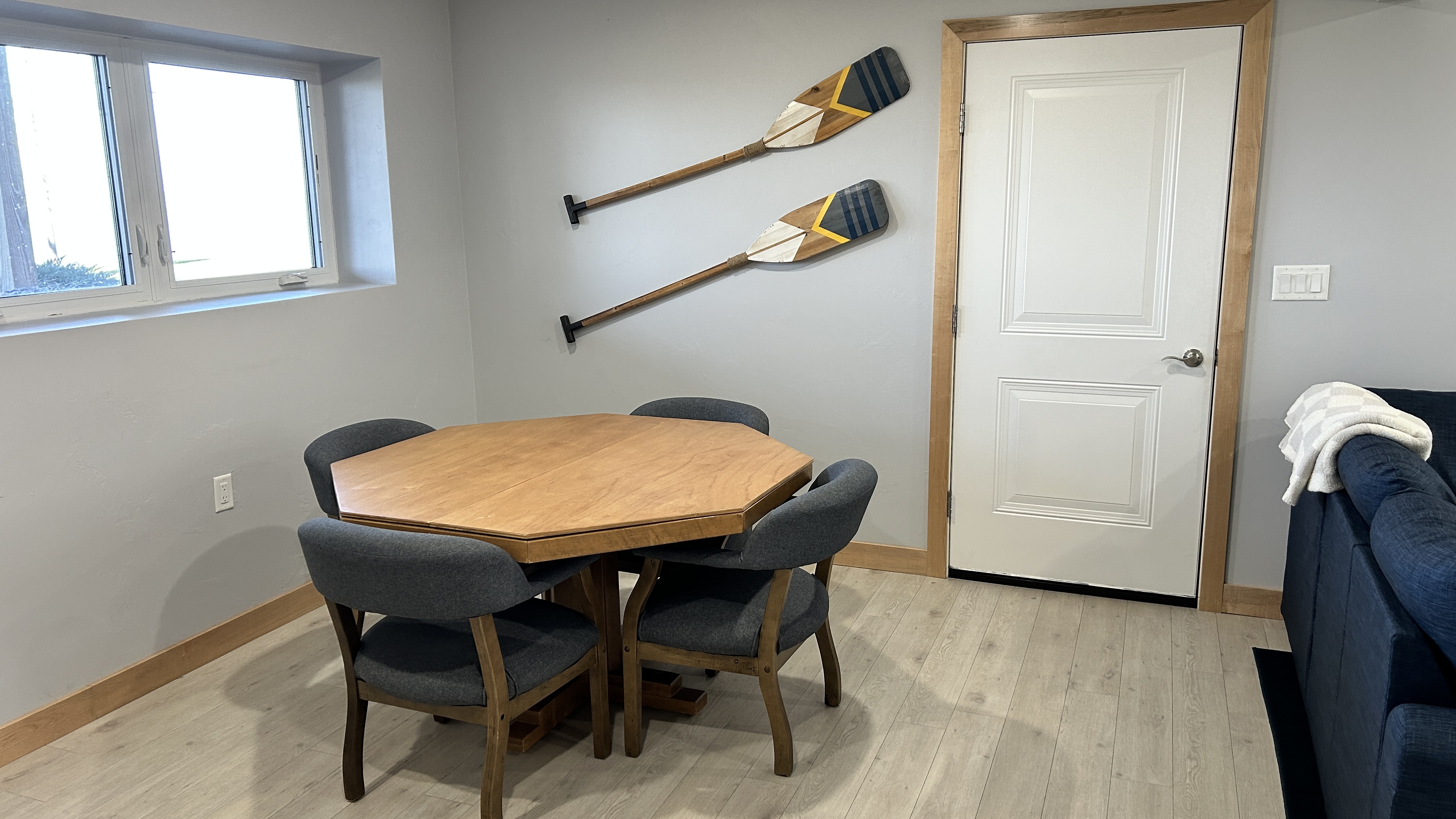 The lake view and access is amazing! Fire pit, deck and sun room were awesome. 3 kayaks available which was not listed was a nice plus. The kids wanted to swim in the lake however rocks filled the entryway which made it difficult to walk on, plus the algae never helps. Great view for the sunset.