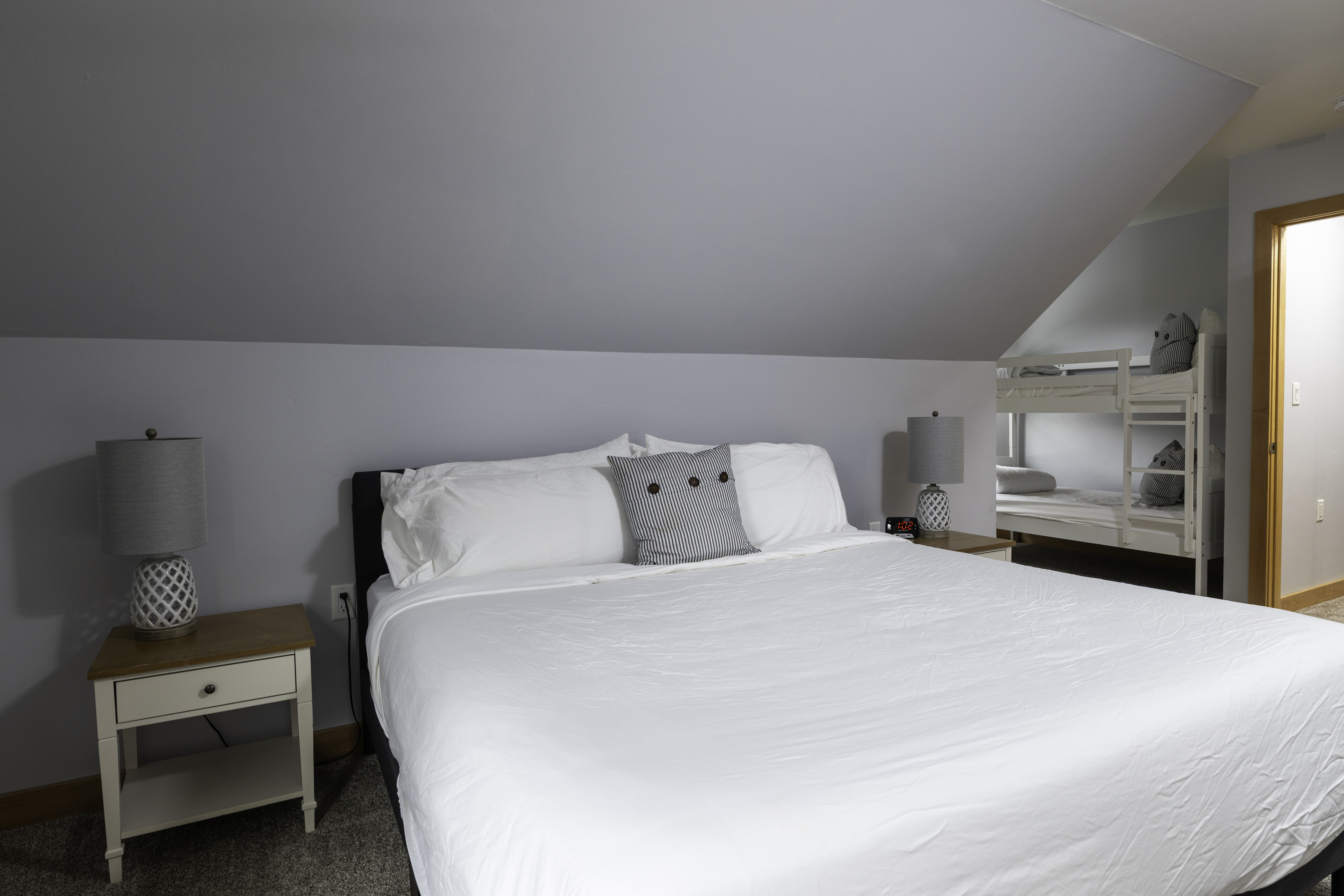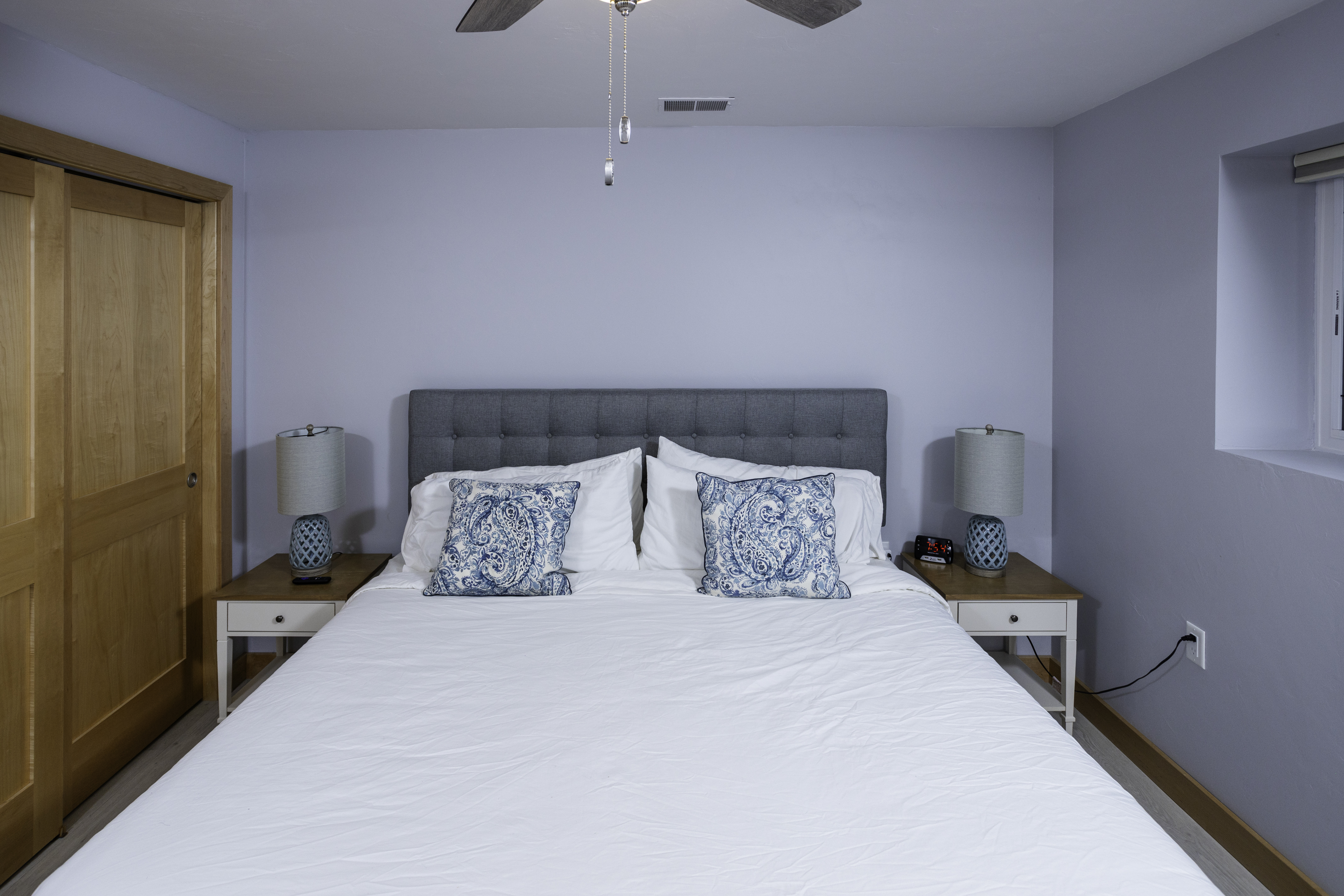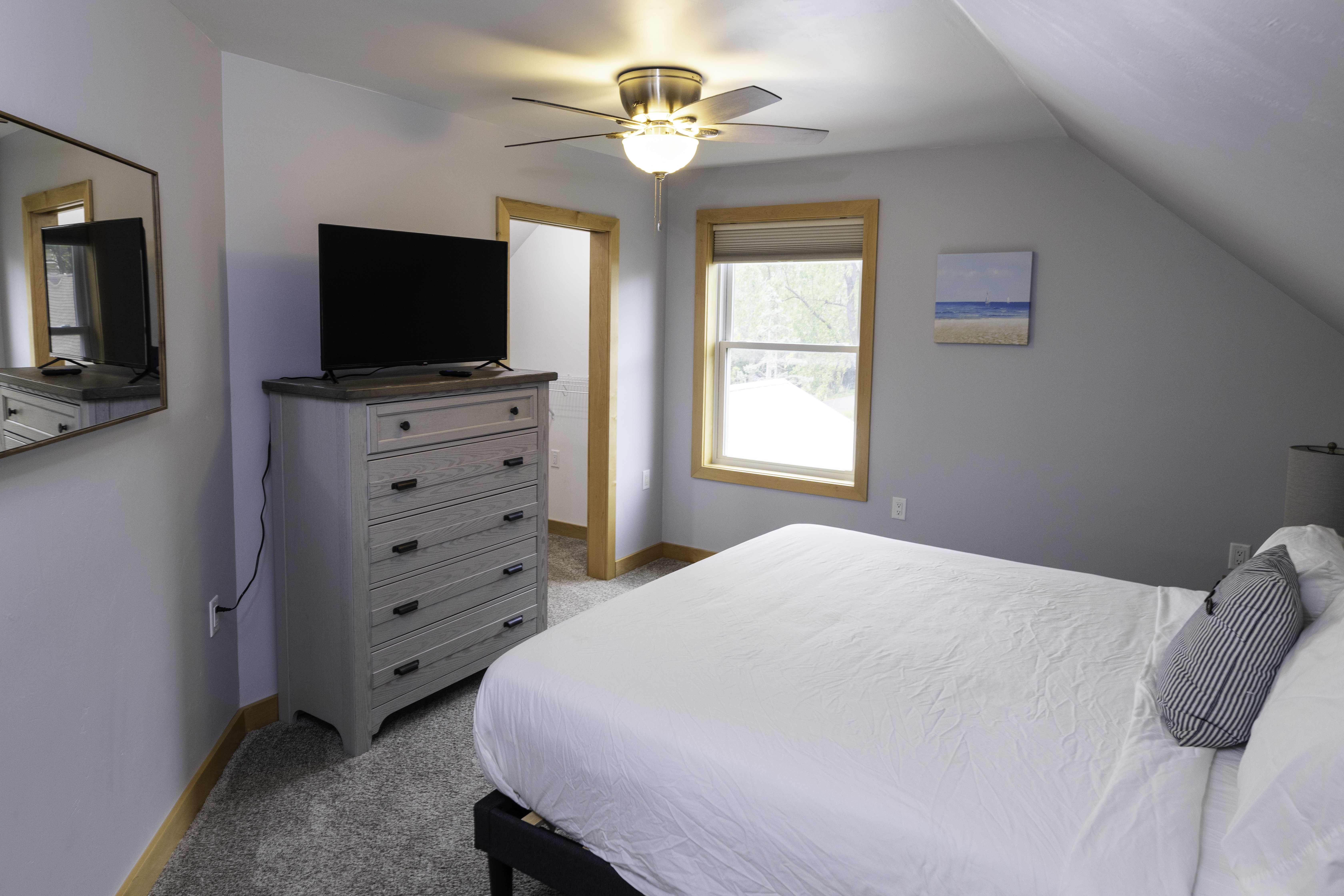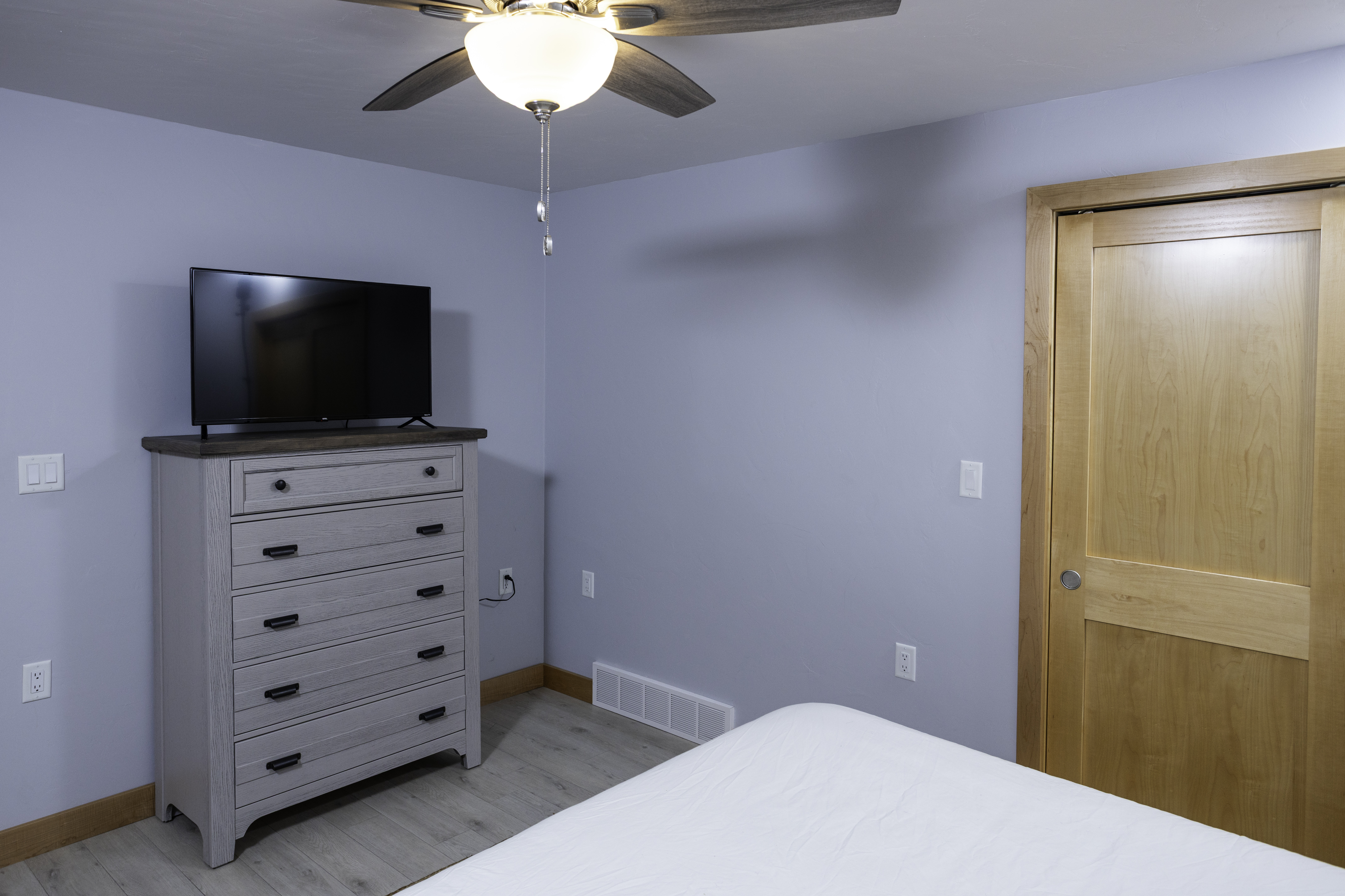 Bedroom 4 (lower level): King size bed, Smart TV, ceiling fan