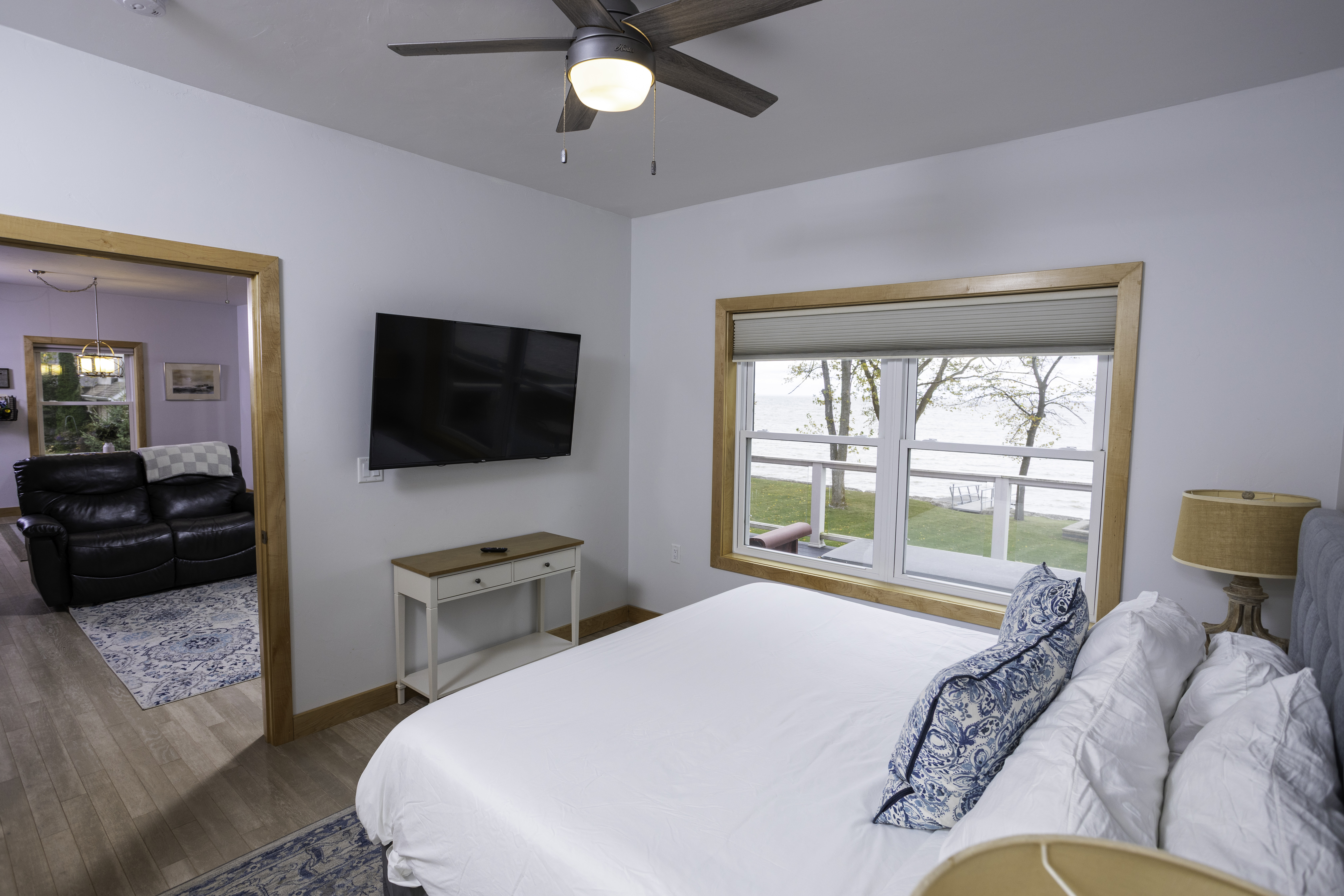 Bedroom 1 (main level): King size bed, Smart TV, ceiling fan