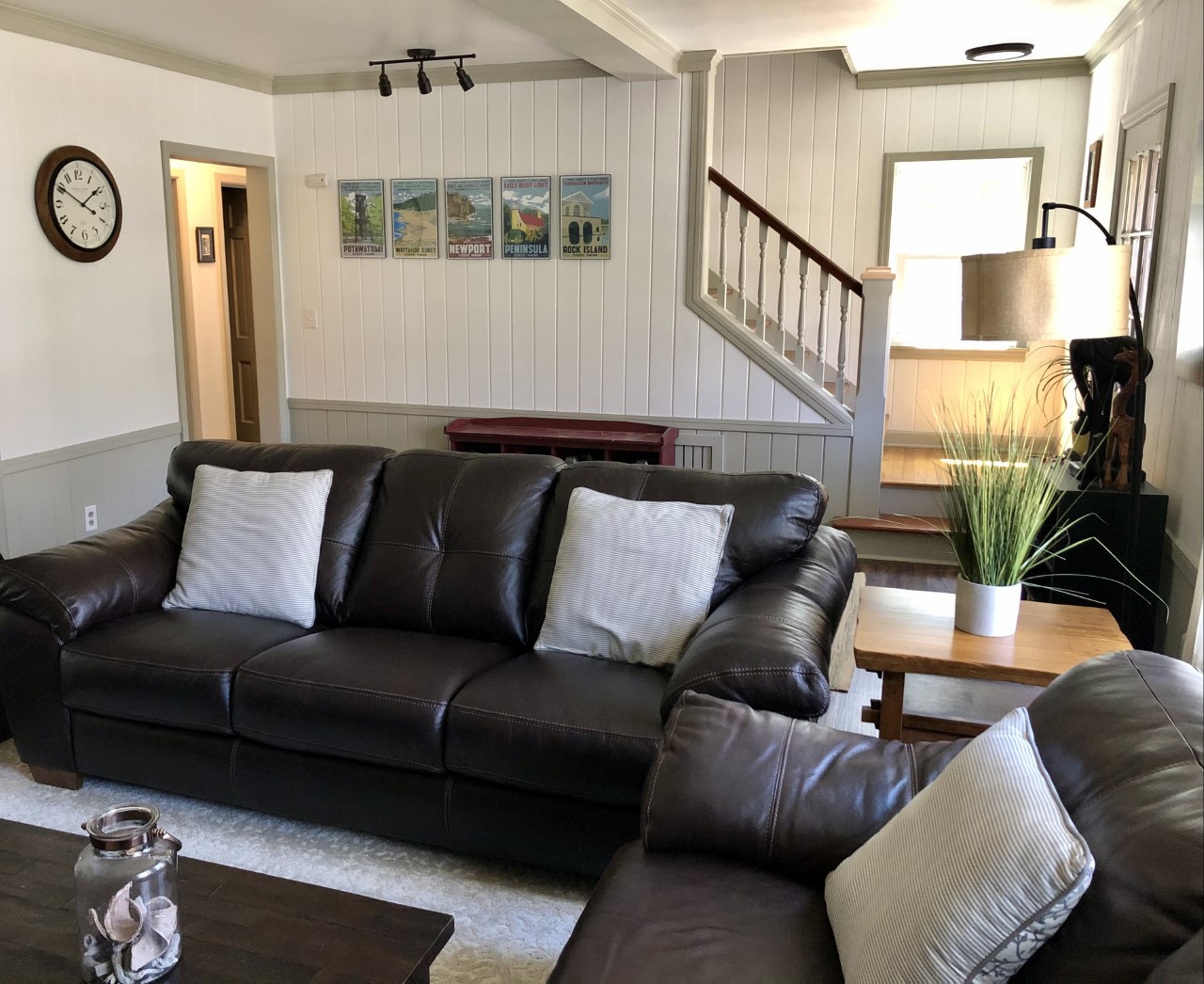 The cottage features a large living room, formal dining room, and a screen porch. The property sleeps 14 in beds with 3 queen beds, and two twin over full bunk beds and 1 twin bunk bed. Enjoy the large country yard with a fire pit and plenty of parking. Spend all day enjoying the peninsula and then head back to the cottage to enjoy a relaxing evening with family and friends!