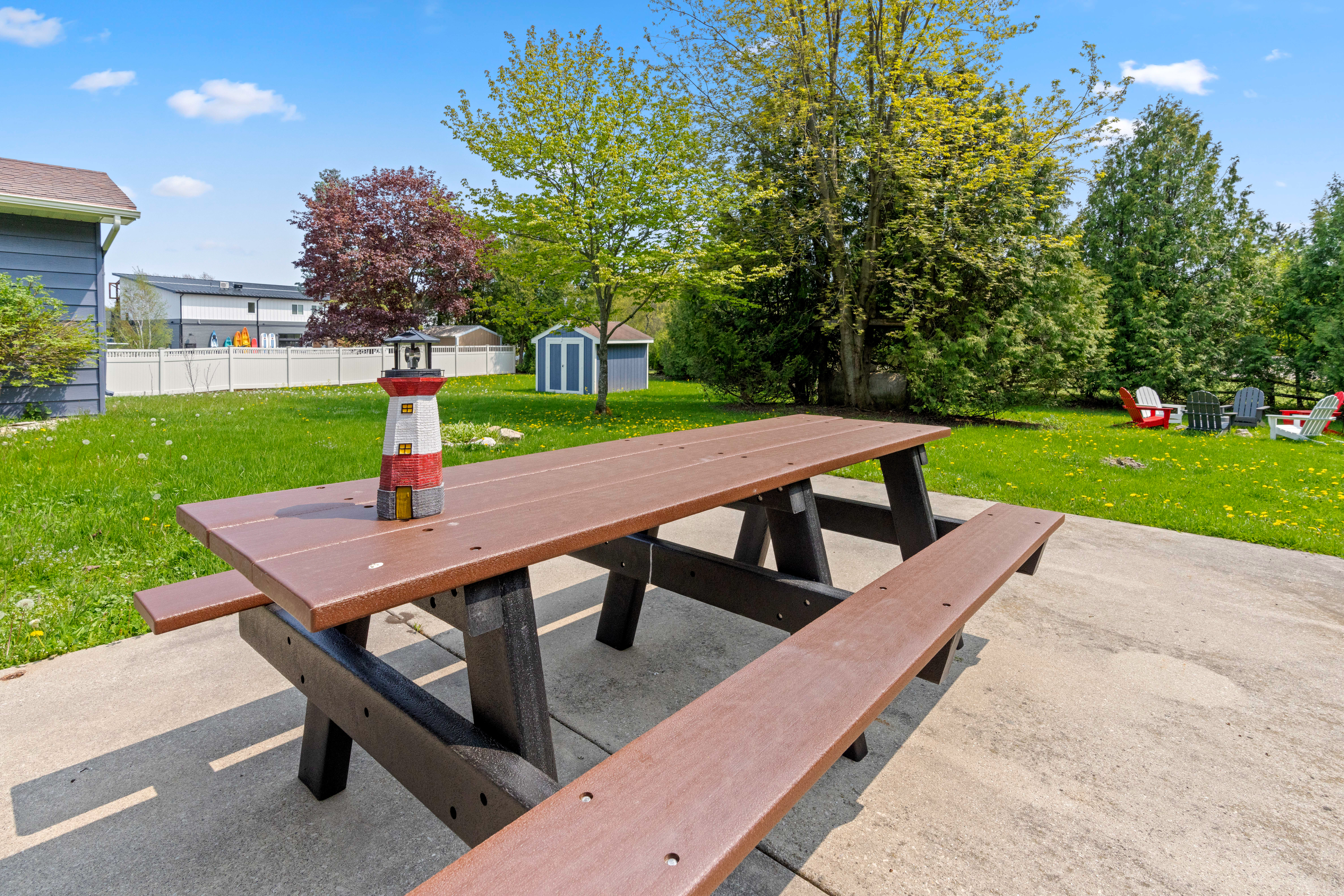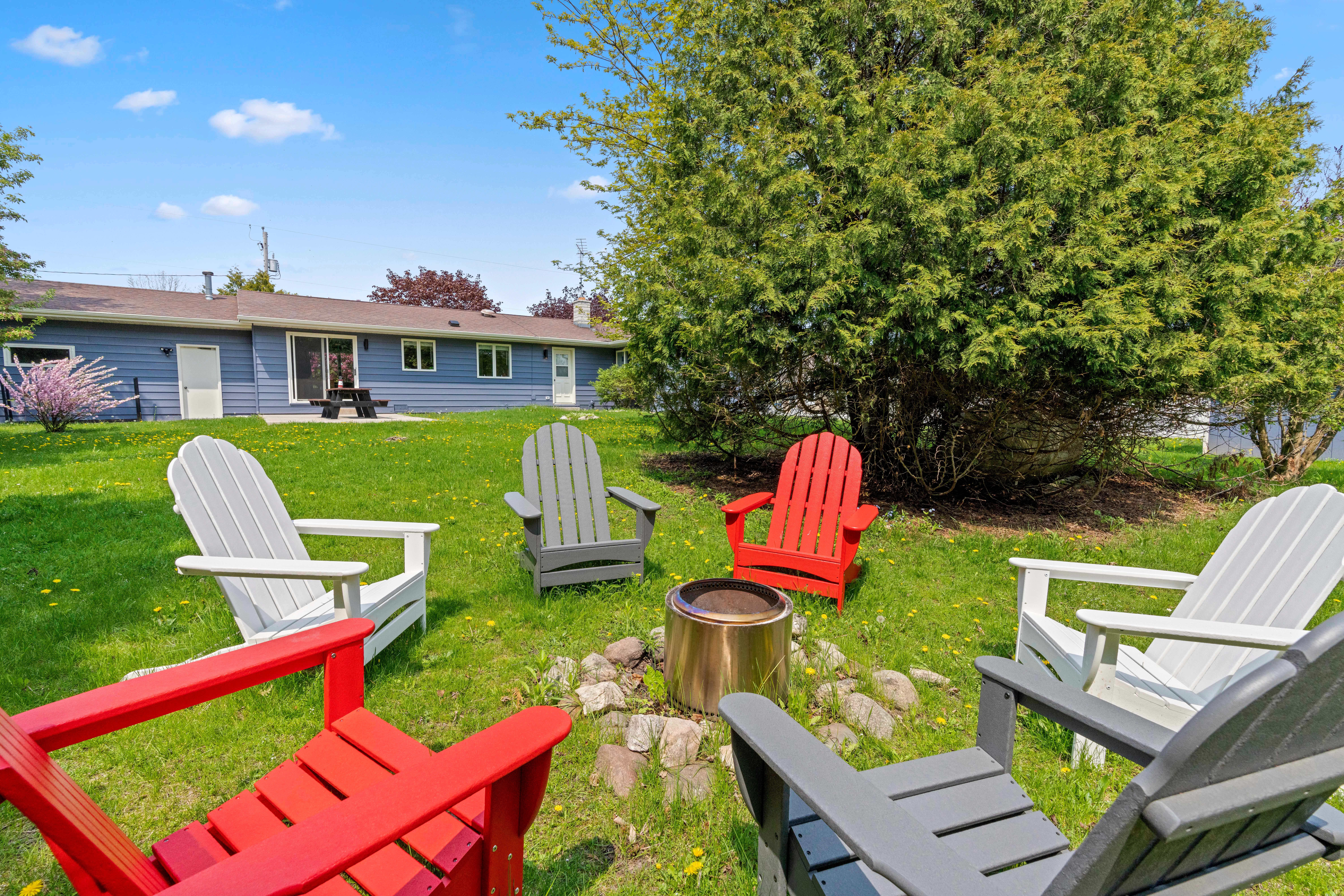Welcome to Marina Cottage, a beautifully renovated home in downtown Baileys Harbor, hosted by Simple Life Rentals! This spacious, one-story ranch is situated on a beautiful, semi-private lot surrounded by trees. It includes three bedrooms, two full bathrooms, a fully equipped kitchen, stylish living spaces and ample parking. Marina Cottage has a large attached garage with 48A Tesla wall charger and additional parking for two vehicles inside. The 1/2 acre outdoor space includes a patio for entertaining, a propane grill, an 8-foot picnic bench, large lawn for games or relaxing, and a fire pit area with seating for six. Across the street is a brand new playground area, perfect for families to enjoy but far enough that it's not noisy.
