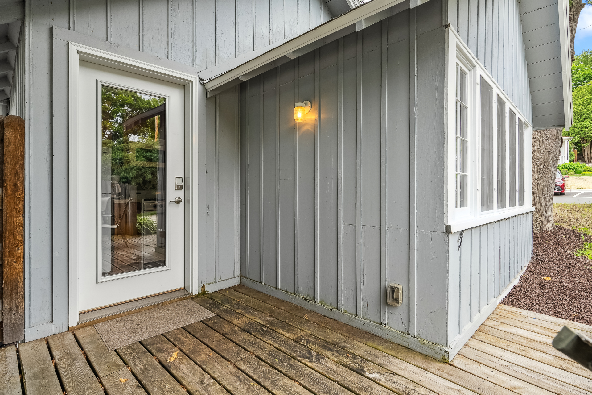 You will find the kitchenette fully equipped with refrigerator, freezer, four-burner stove, and oven to prepare meals. The updated, comfortable living space provides multiple seating options and a Smart TV, as well as a queen size pull-out couch. Enjoy the outdoor deck and patio set, with a privacy fence. On the porch, find a propane grill ready for shish-kabobs and local fresh caught fish! Walk over to the local Fish Creek Market and stock up on your favorite wines, late night snacks, and last-minute supplies. The well-appointed little cottage is set back from main street behind a building offering the perfect mix of quiet and close to it all.